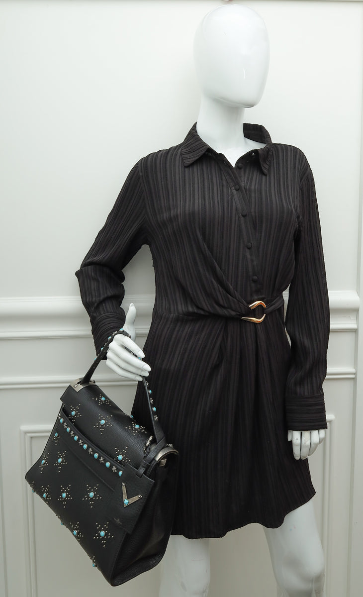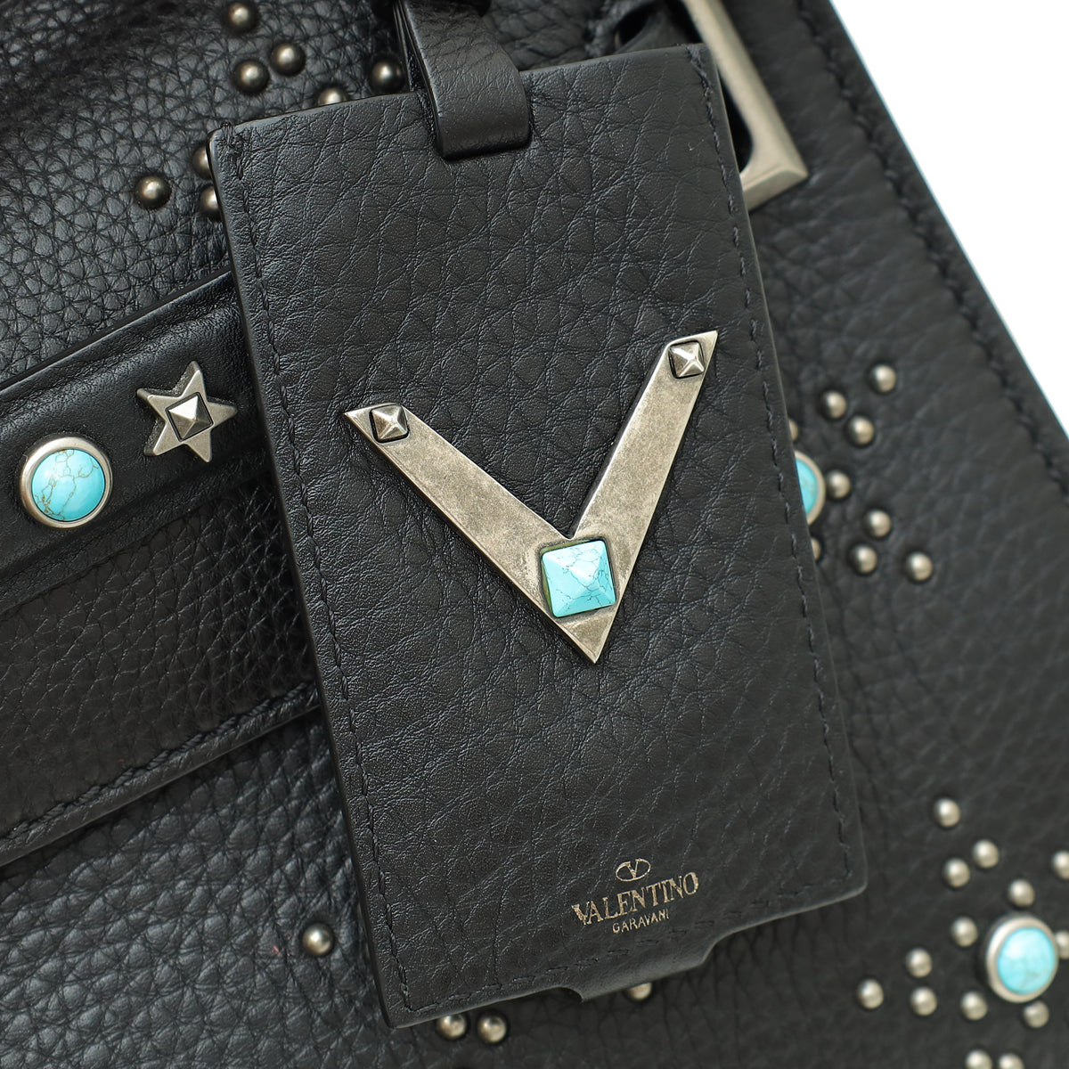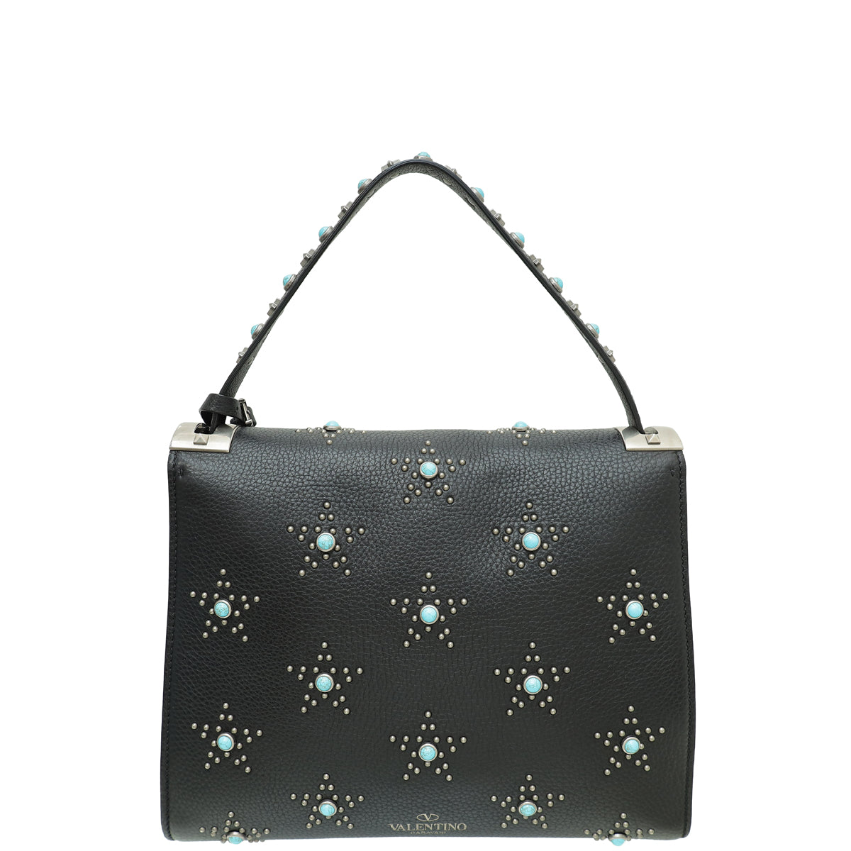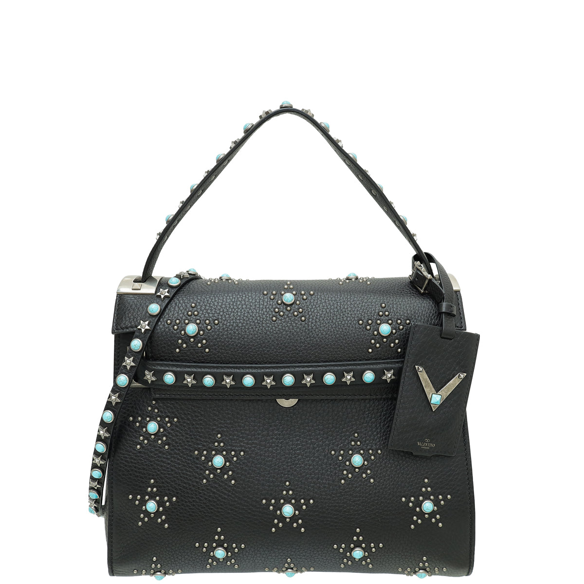 Material: Black Grained Calfskin Leather with Studs and Cabochons