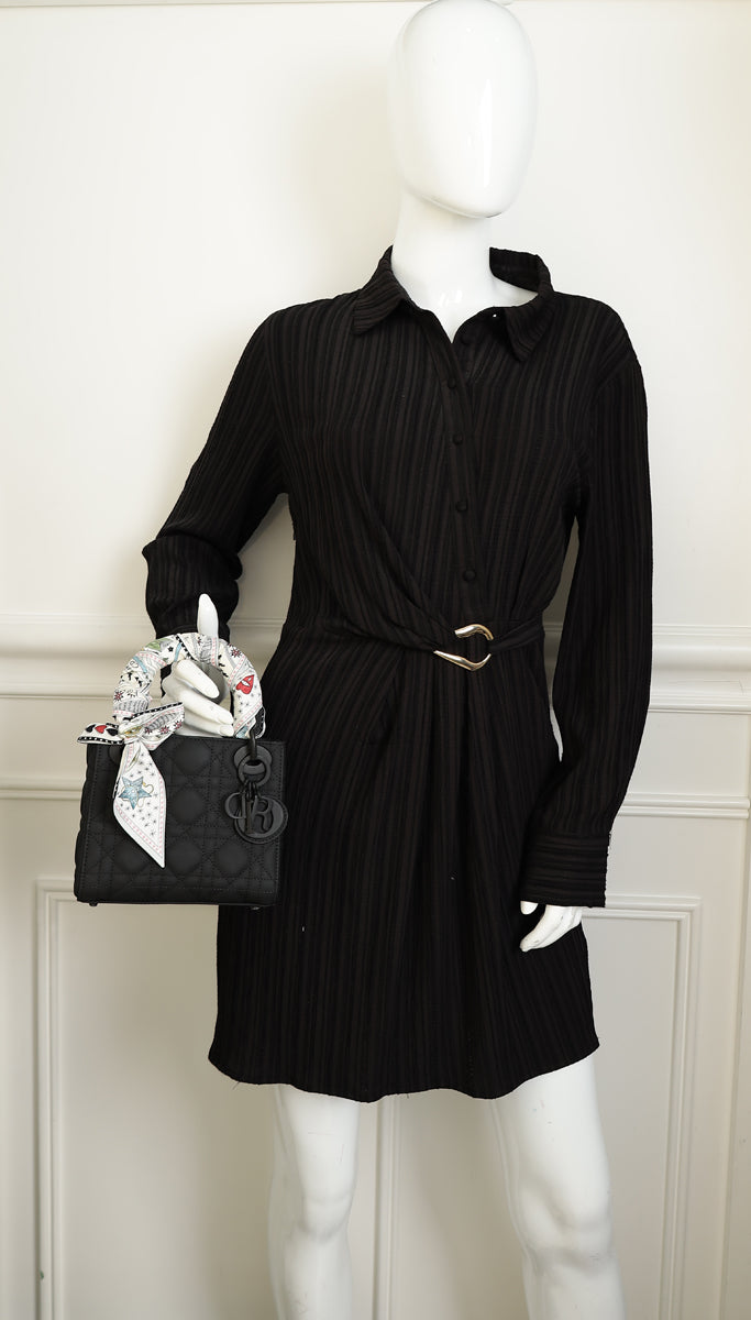 Christian Dior Black Ultramatte Lady Dior Mini Chain Bag w/ Twilly