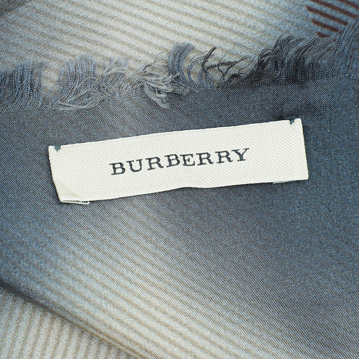 Burberry Gray Ombre Smoke Check Fringe Silk Scarf
