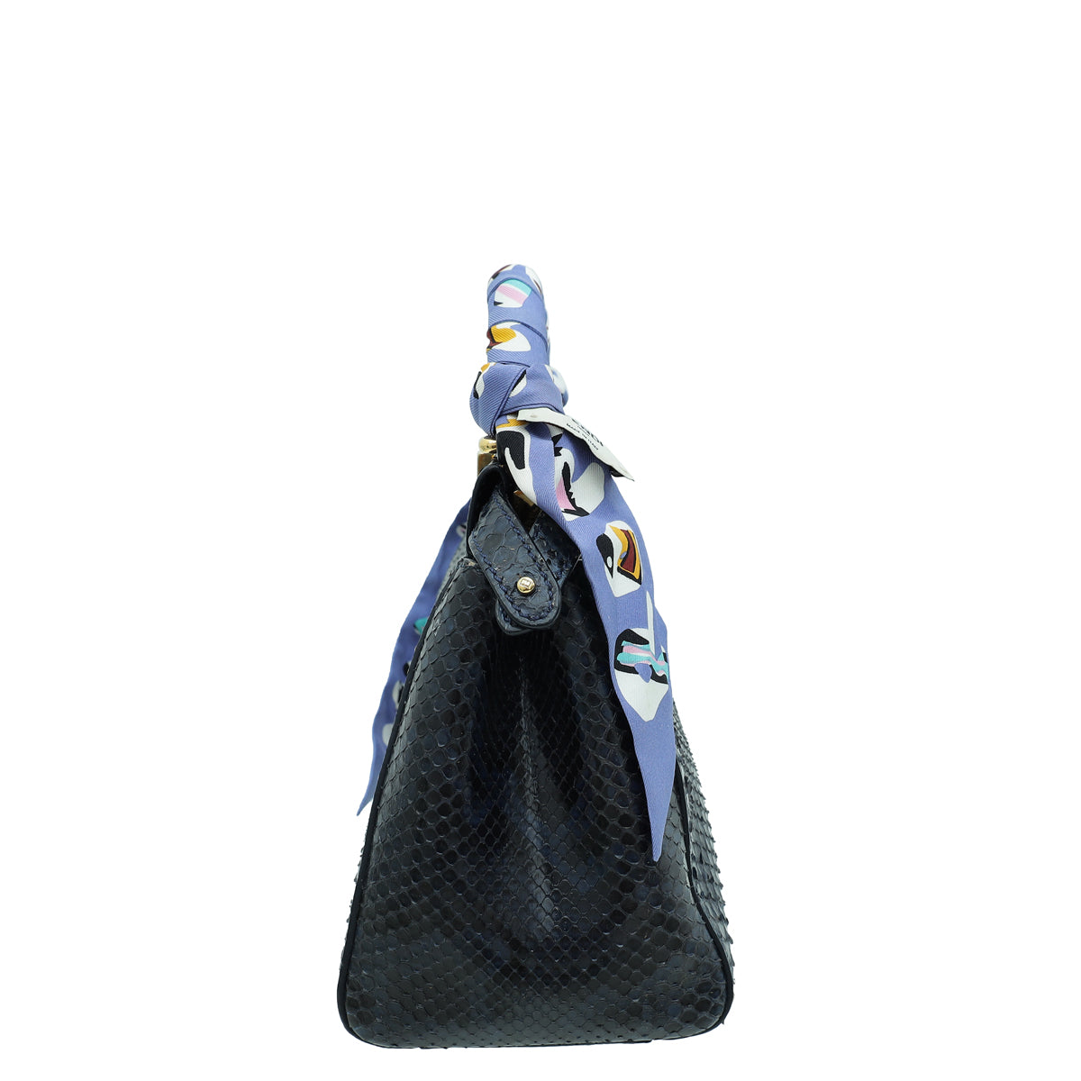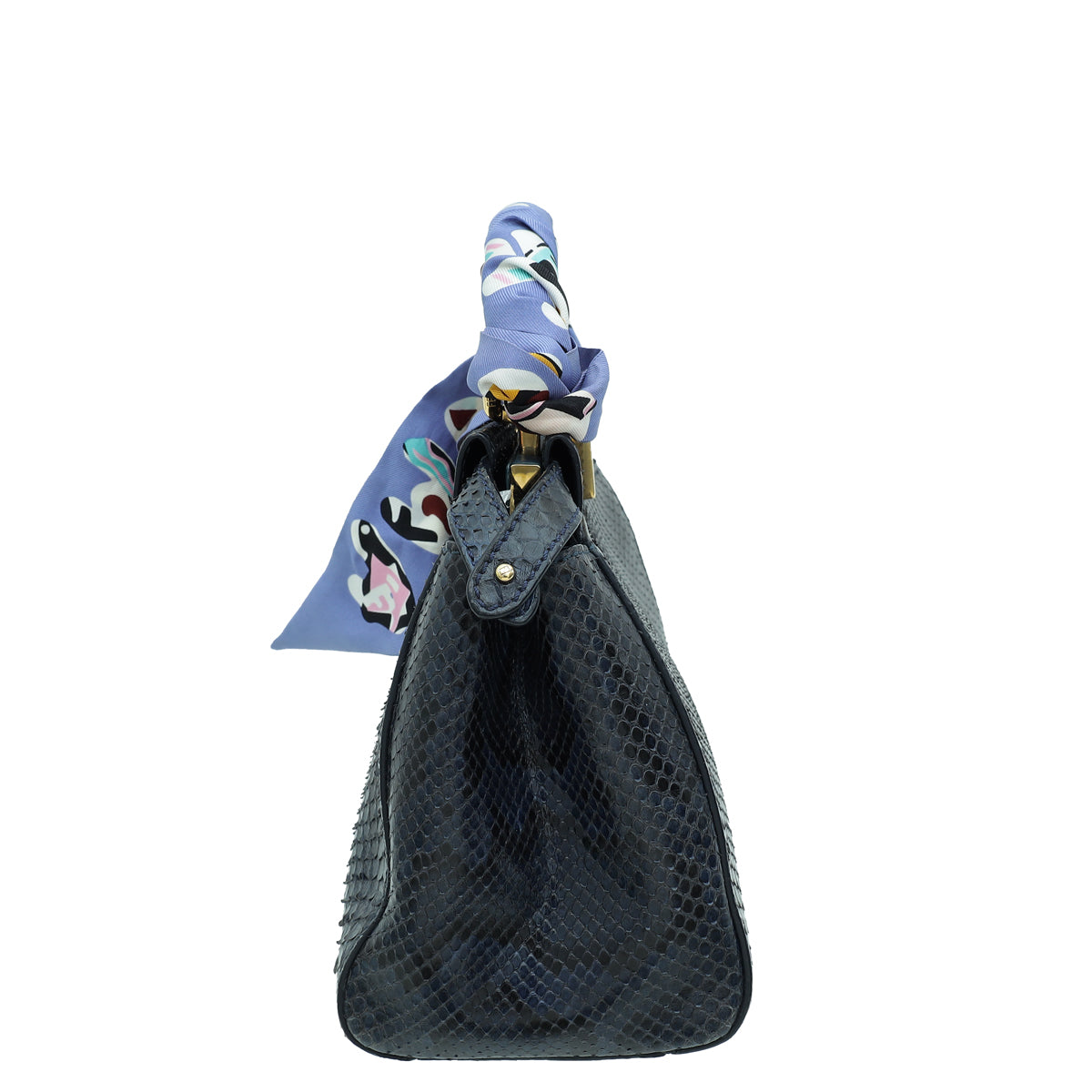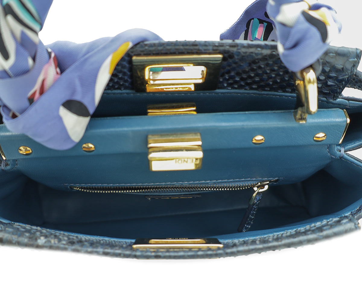 Fendi Dark Teal Python Peekaboo Mini Bag W/ Twilly