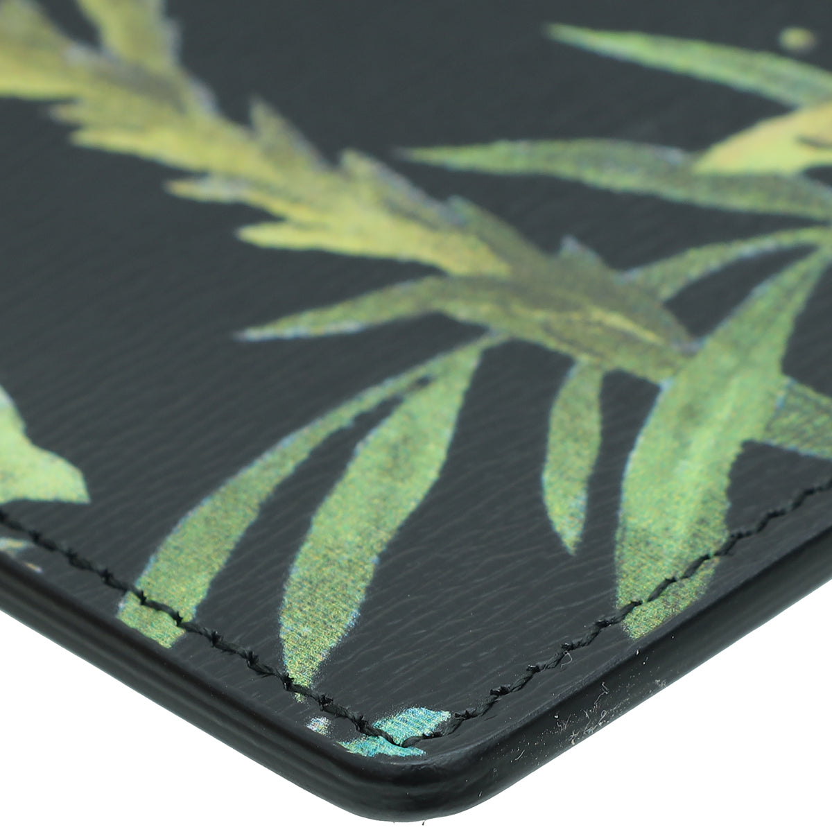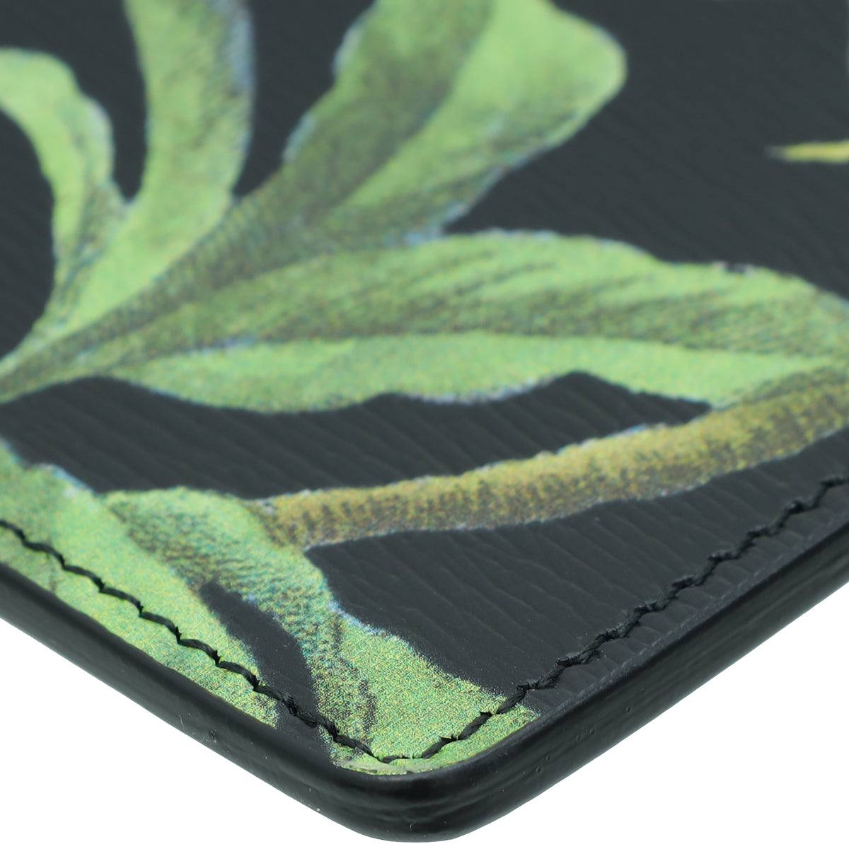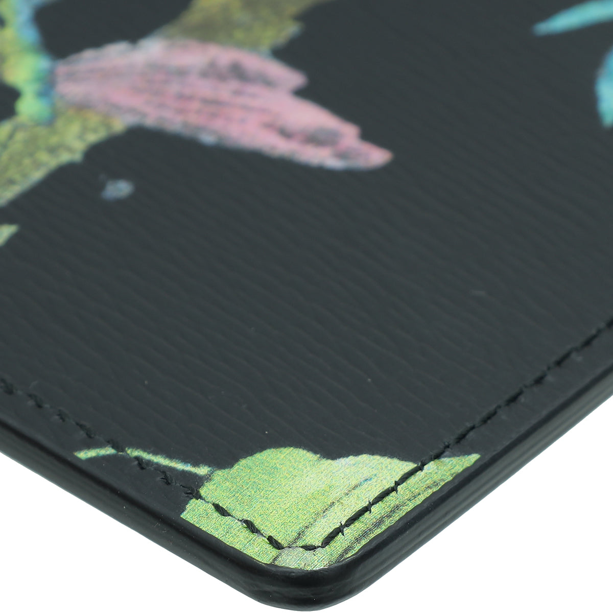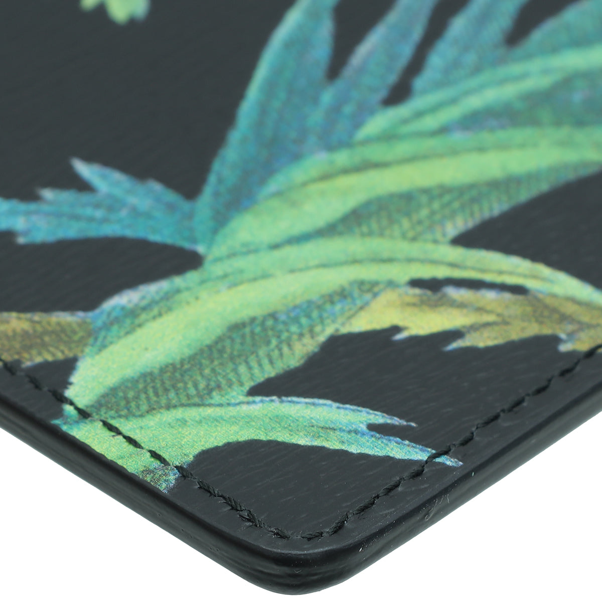 - Material: Black Leather with Multicolor Tropical Print Birds and Plants
