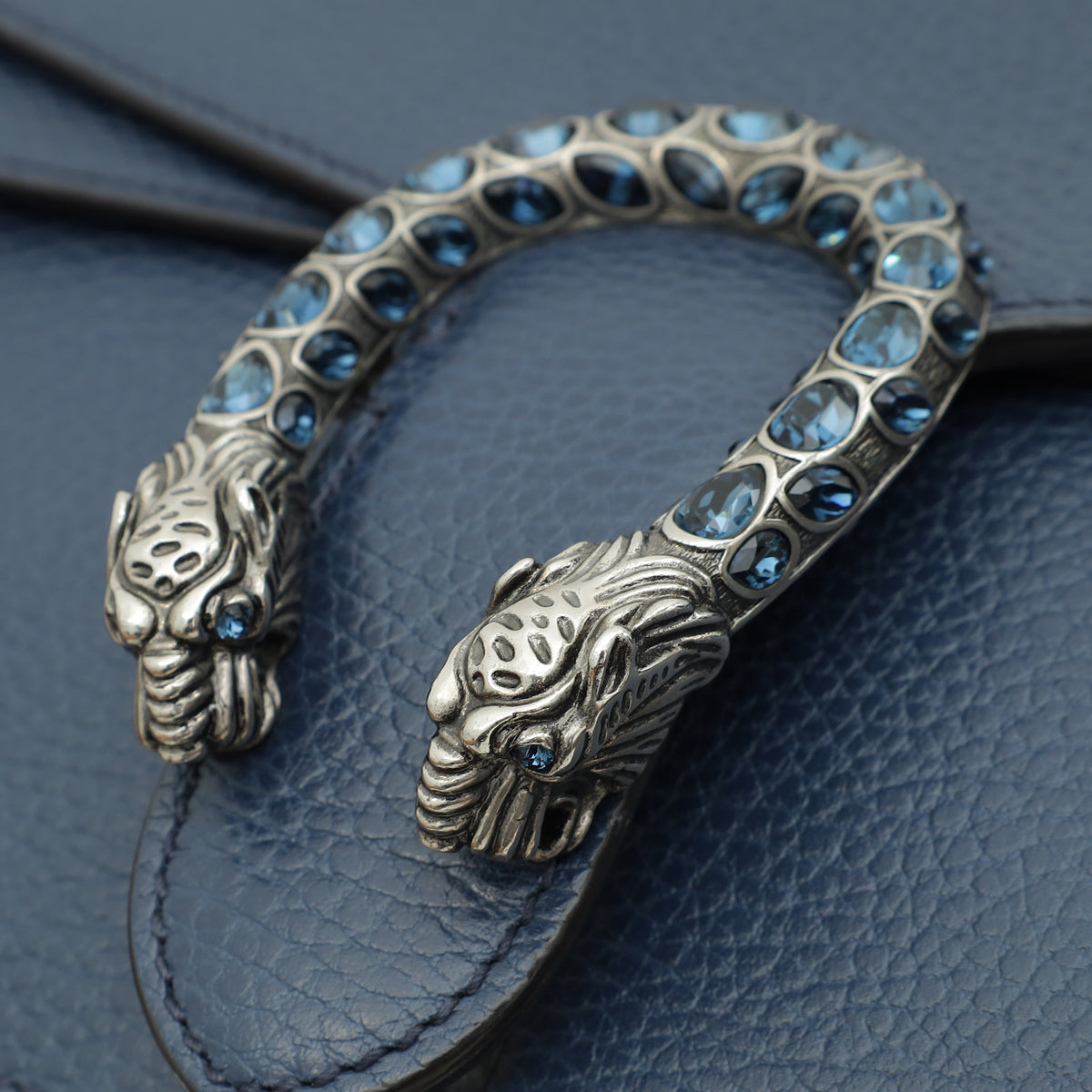 Material: Navy Blue Leather and Tiger Heads Closure with Crystals