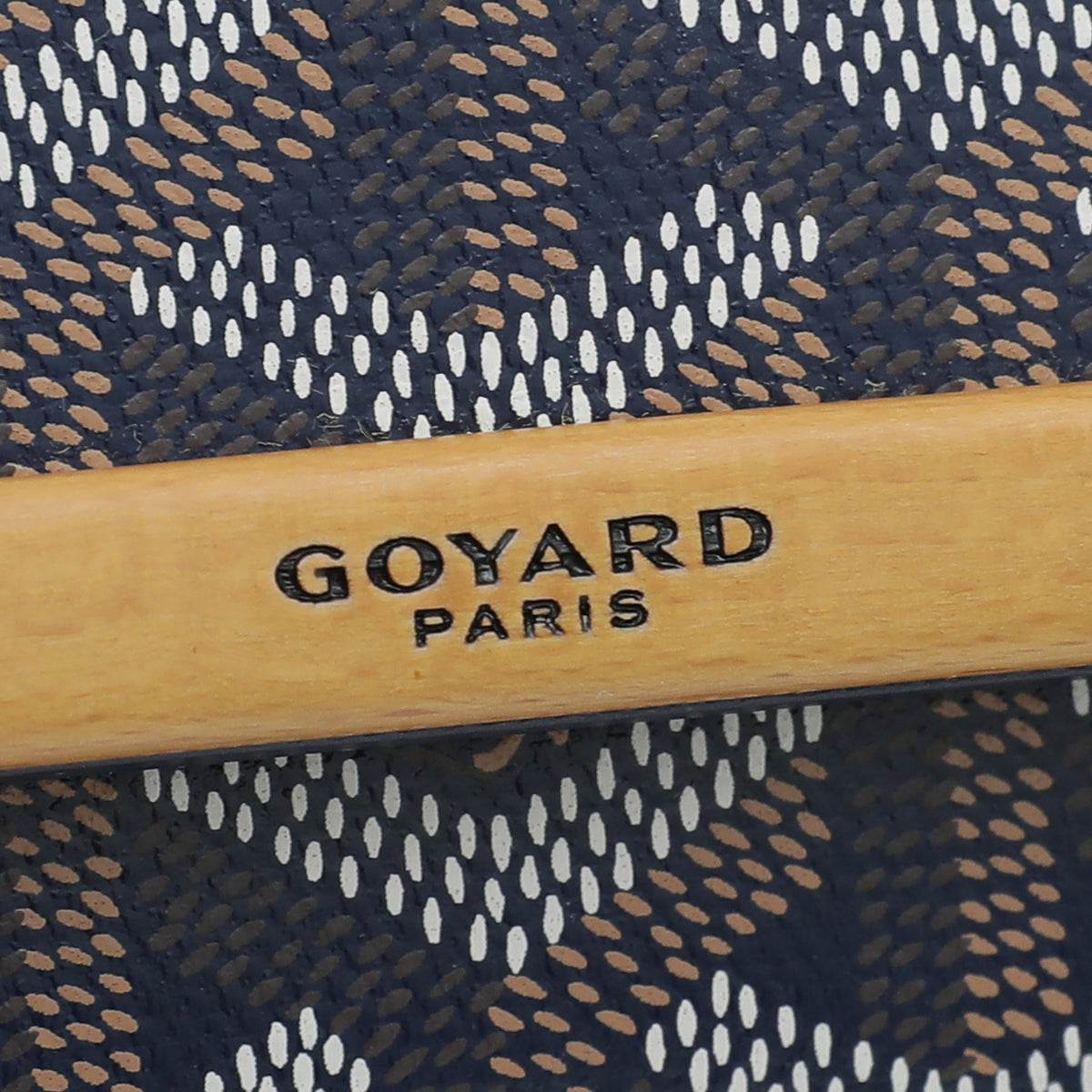 Material: Blue Goyardine Chevron Coated Canvas with Leather and Wood Trim