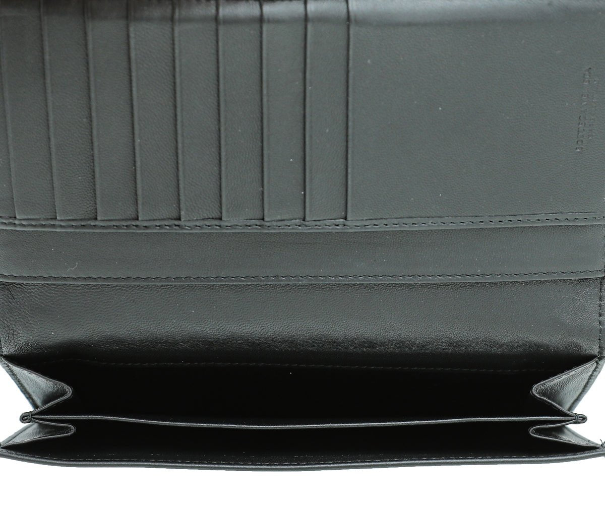 Bottega Veneta Black Intrecciato Long French Wallet
