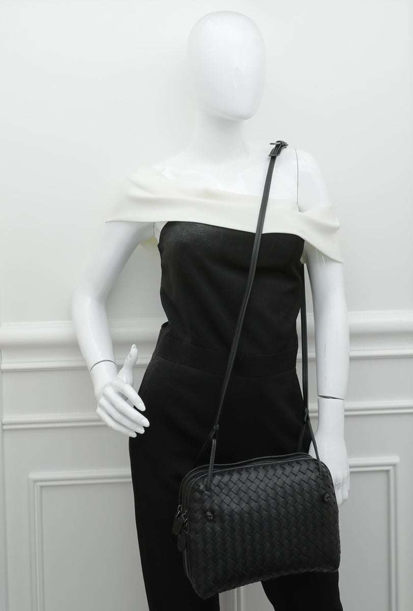 Bottega Veneta Black Intrecciato Nodini Crossbody Bag