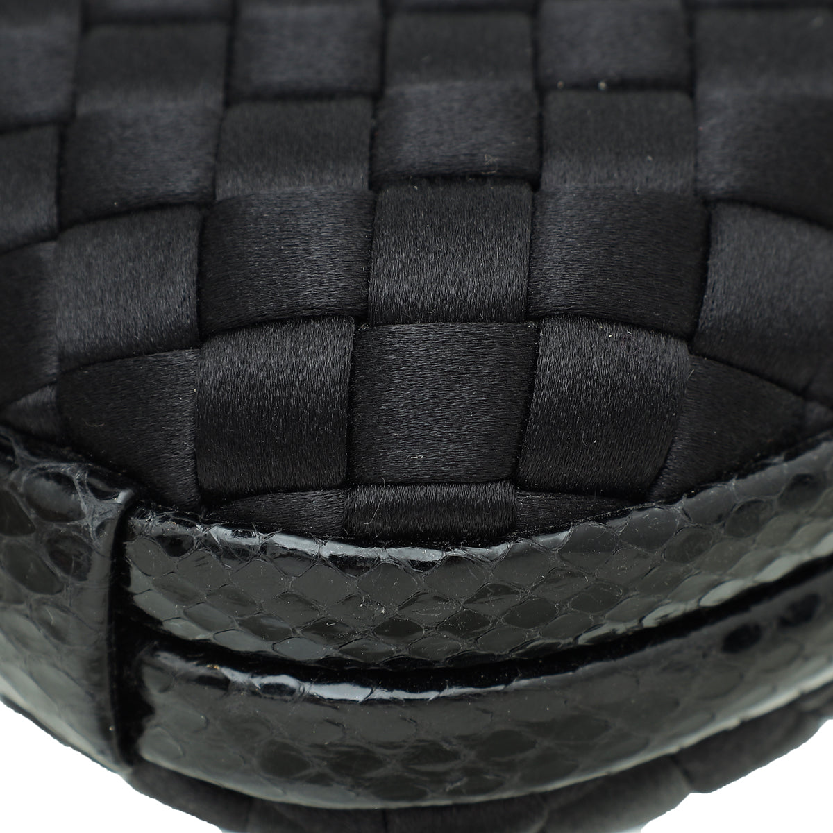 Bottega Veneta Black Satin Ayers Stretch Knot Clutch