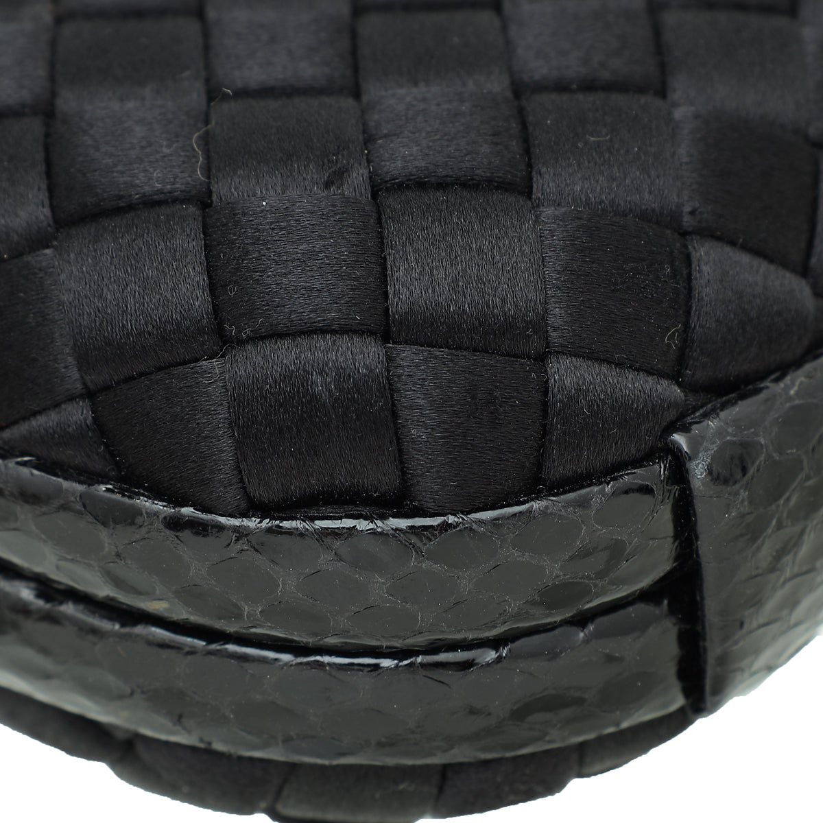 Bottega Veneta Black Satin Ayers Stretch Knot Clutch-Bottega Veneta-THE CLOSET