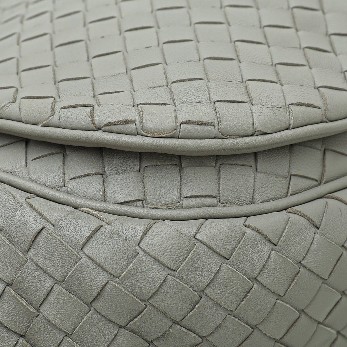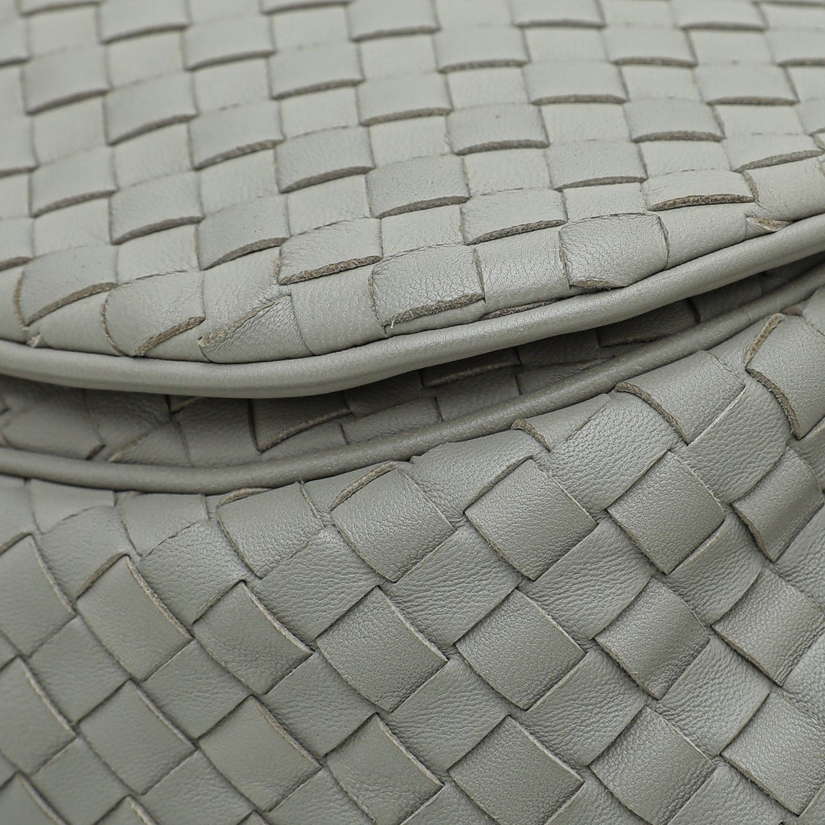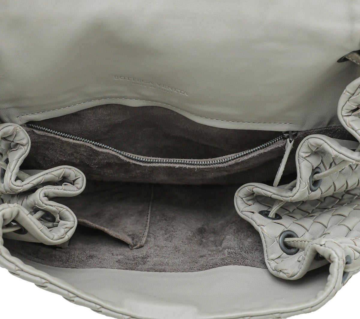Bottega Veneta Gray Intrecciato Drawstring Flap Crossbody Bag