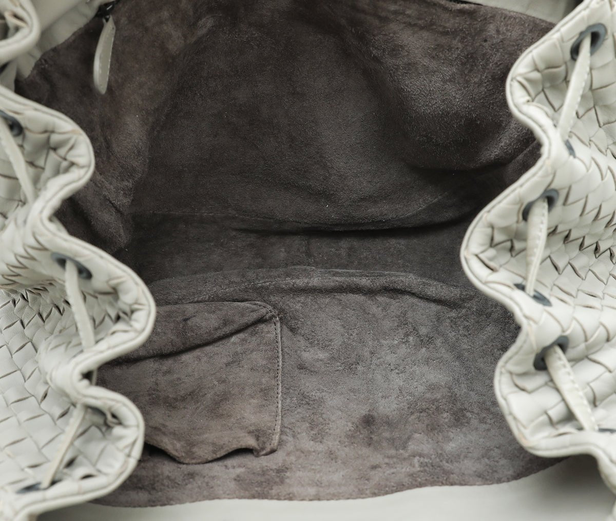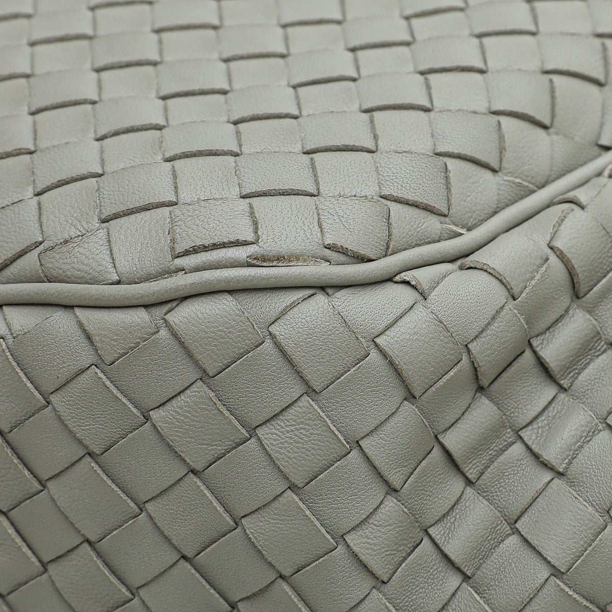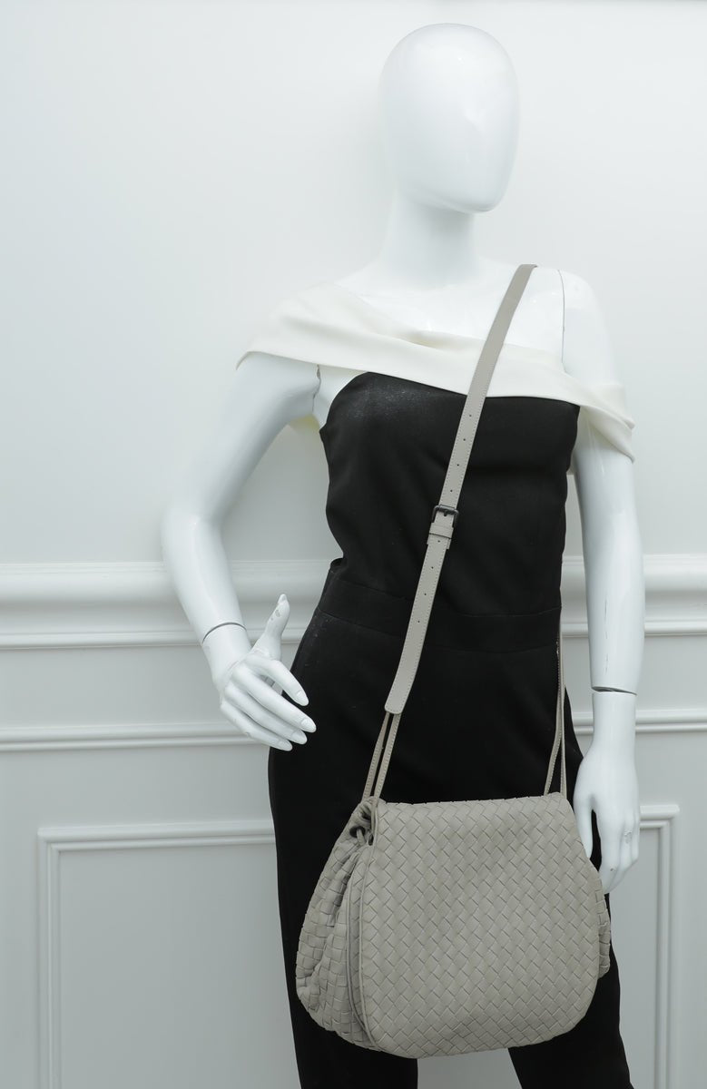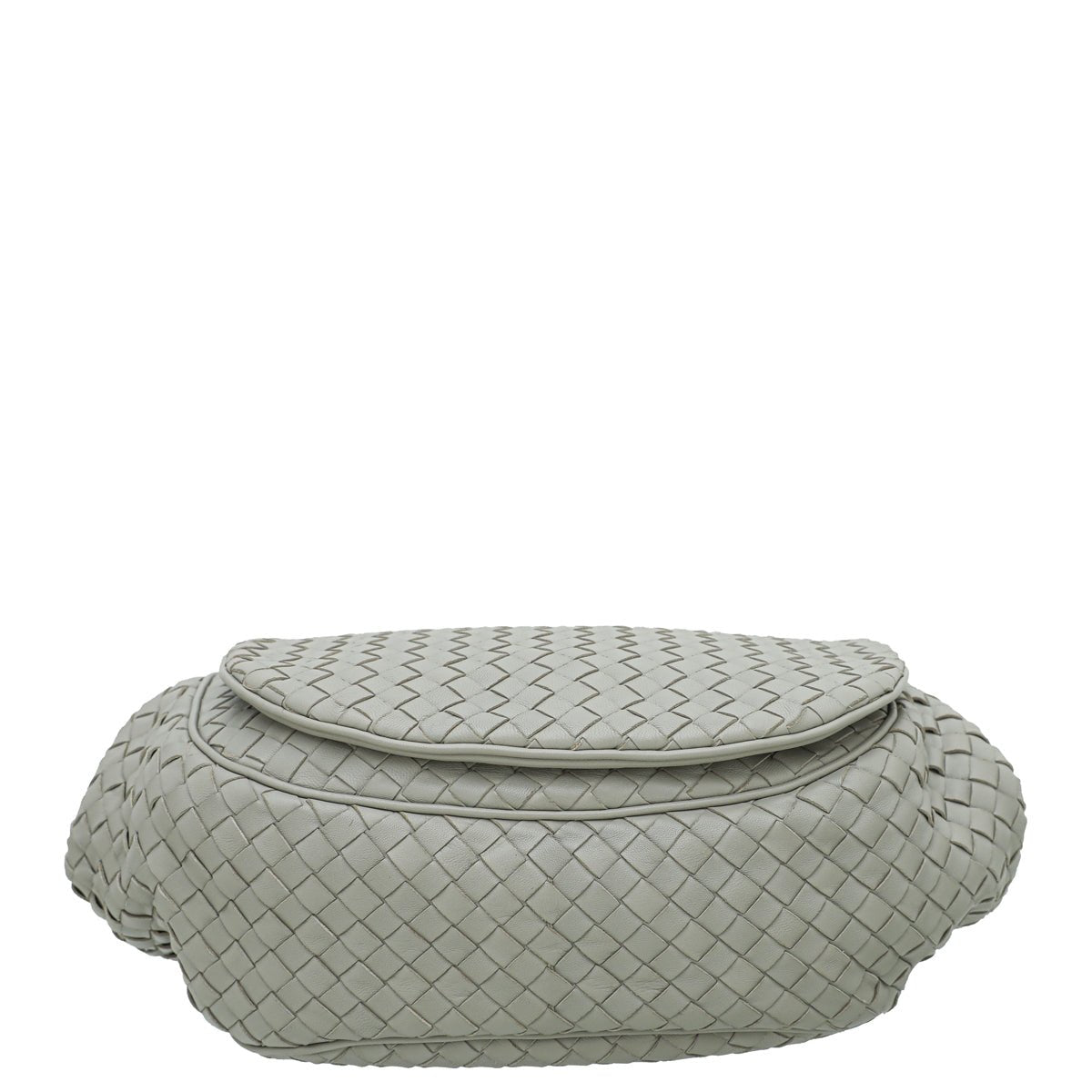 Bottega Veneta Gray Intrecciato Drawstring Flap Crossbody Bag