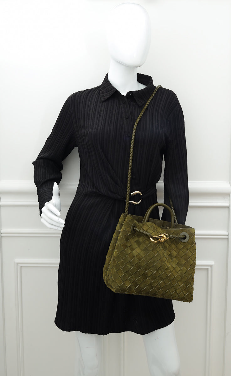 Bottega Veneta Olive Oil Suede Small Andiamo Bag