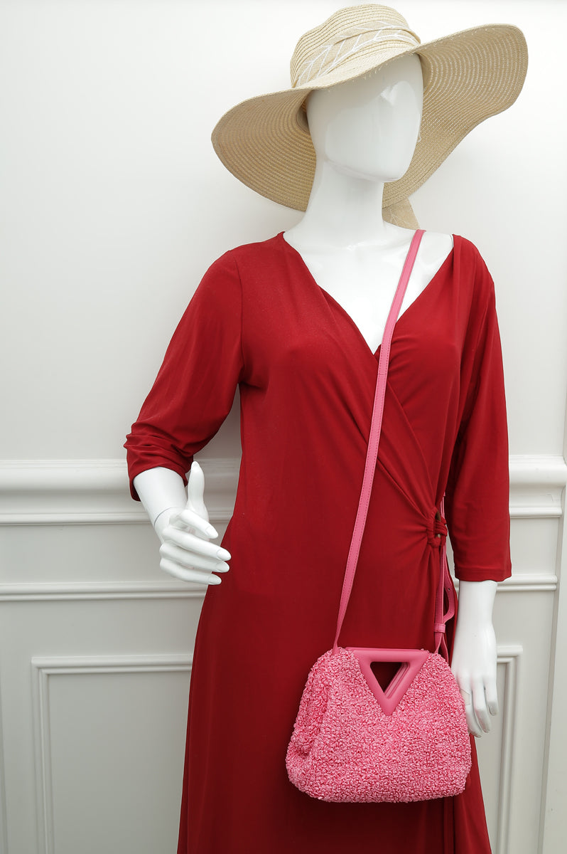 Bottega Veneta Pink Boucle Curly Raffia The Point Triangle Small Bag-Bottega Veneta-THE CLOSET