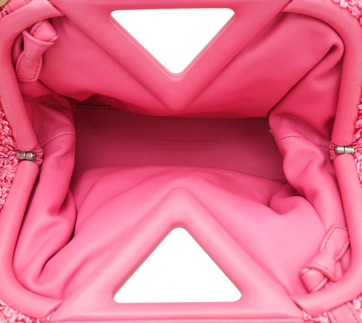 Bottega Veneta Pink Boucle Curly Raffia The Point Triangle Small Bag