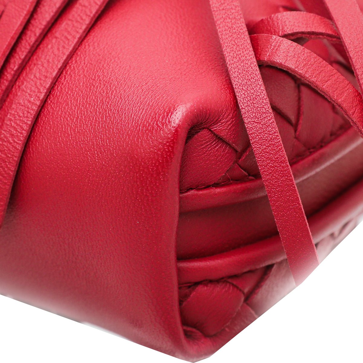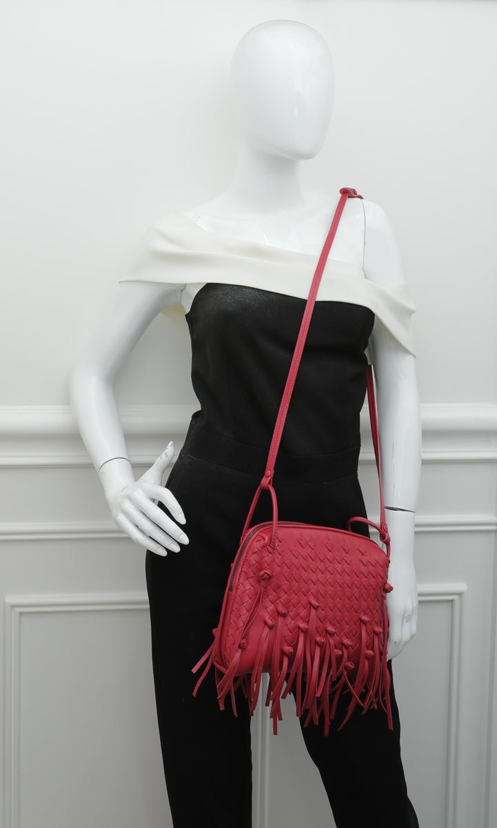 Bottega Veneta Red Intrecciato Fringe Nodini Crossbody Bag
