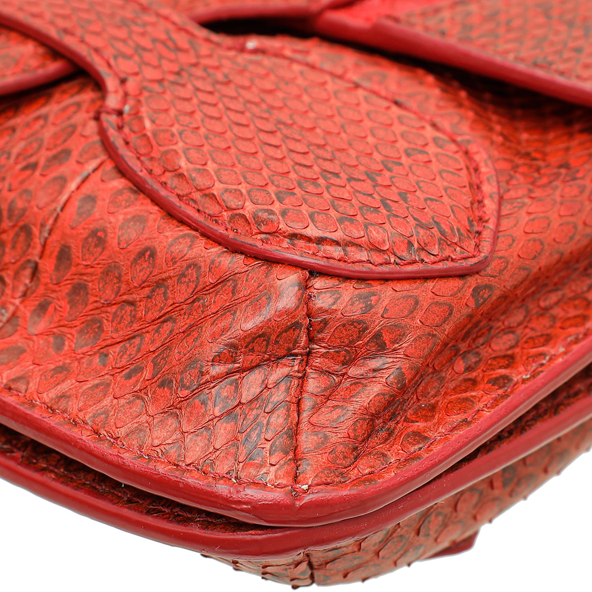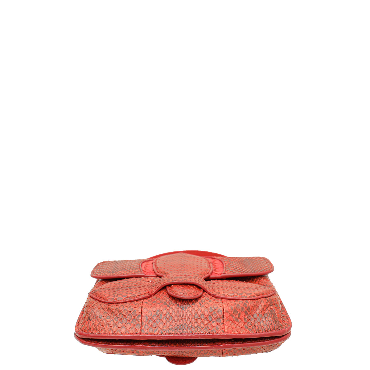 Bottega Veneta Red Water Snake Rialto Shoulder Bag