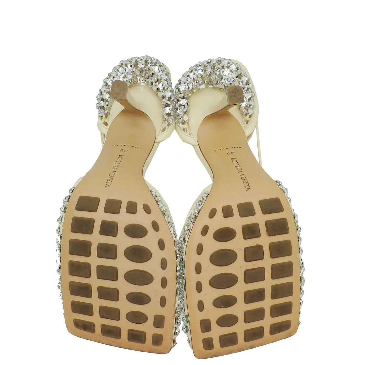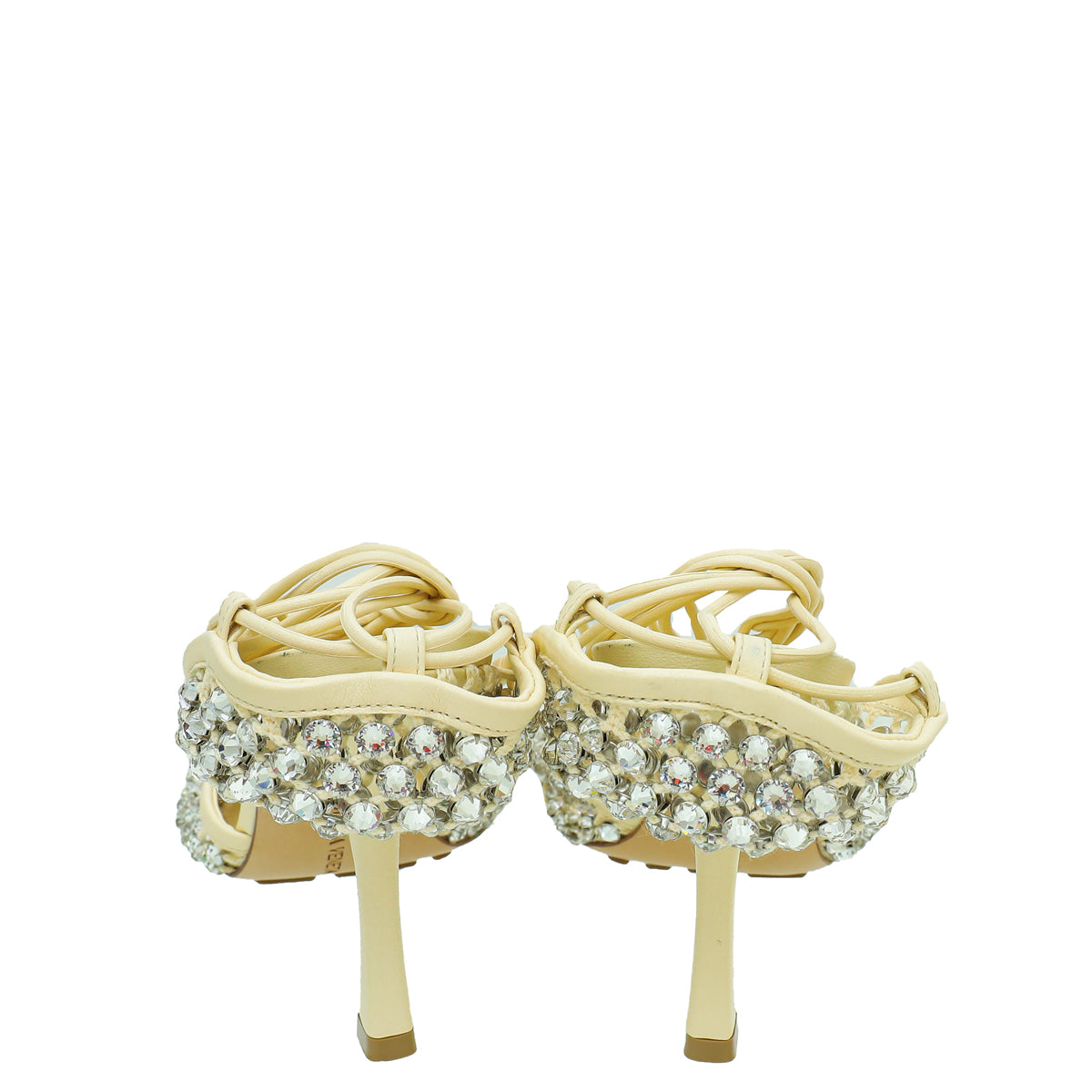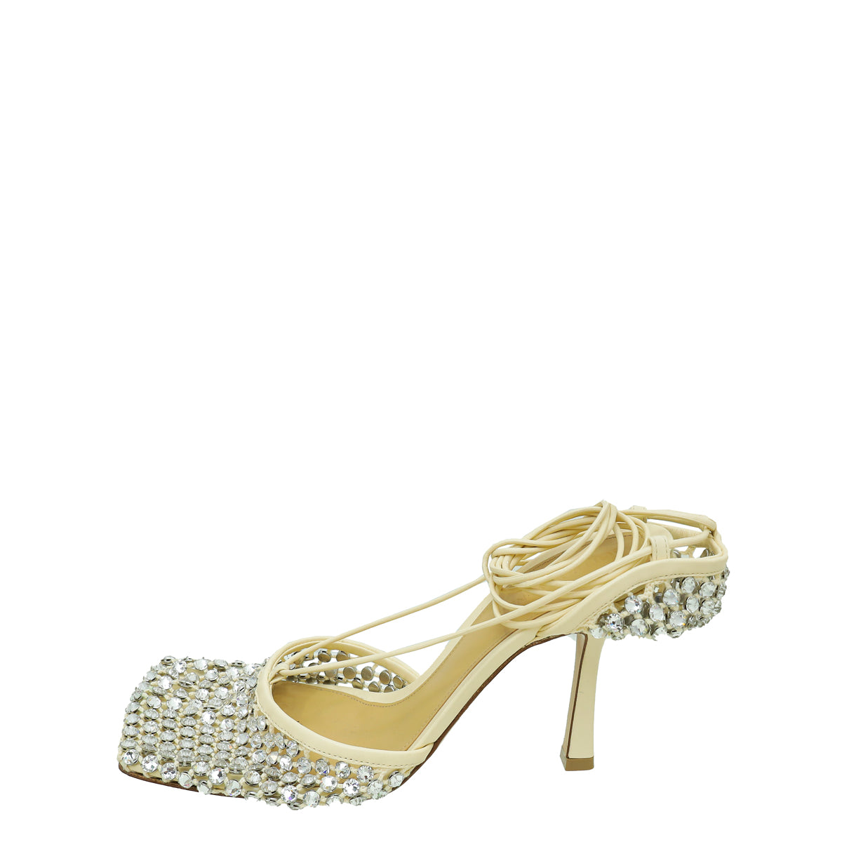Bottega Veneta Toile Cream Sparkle Stretch Lace-Up Sandal 39