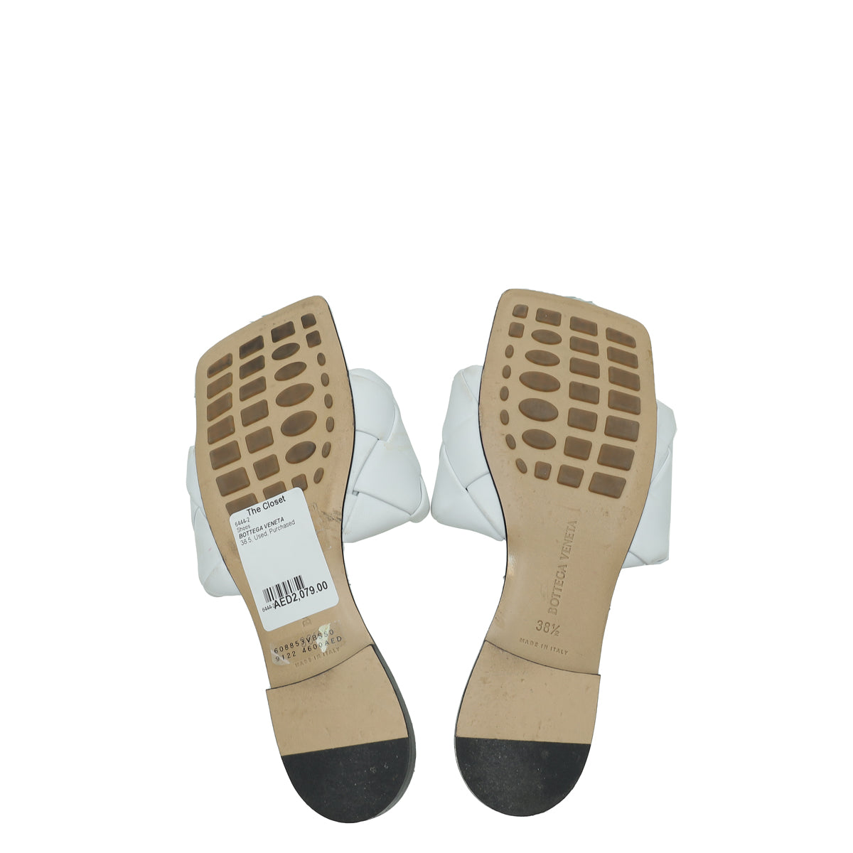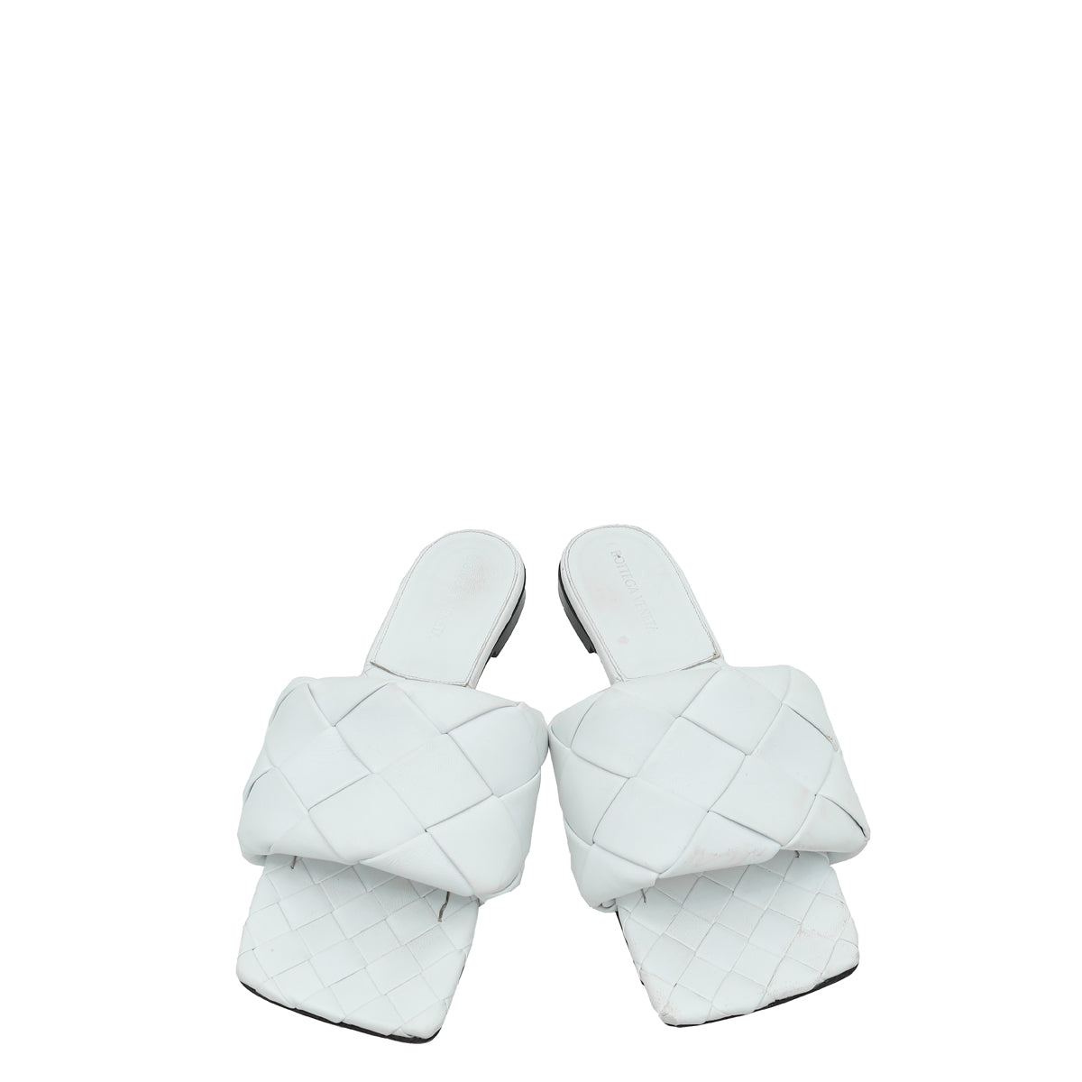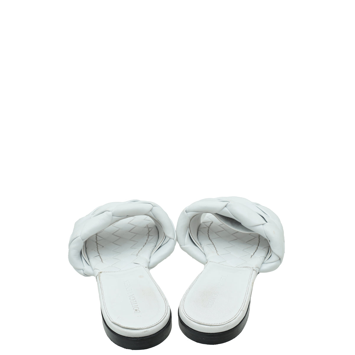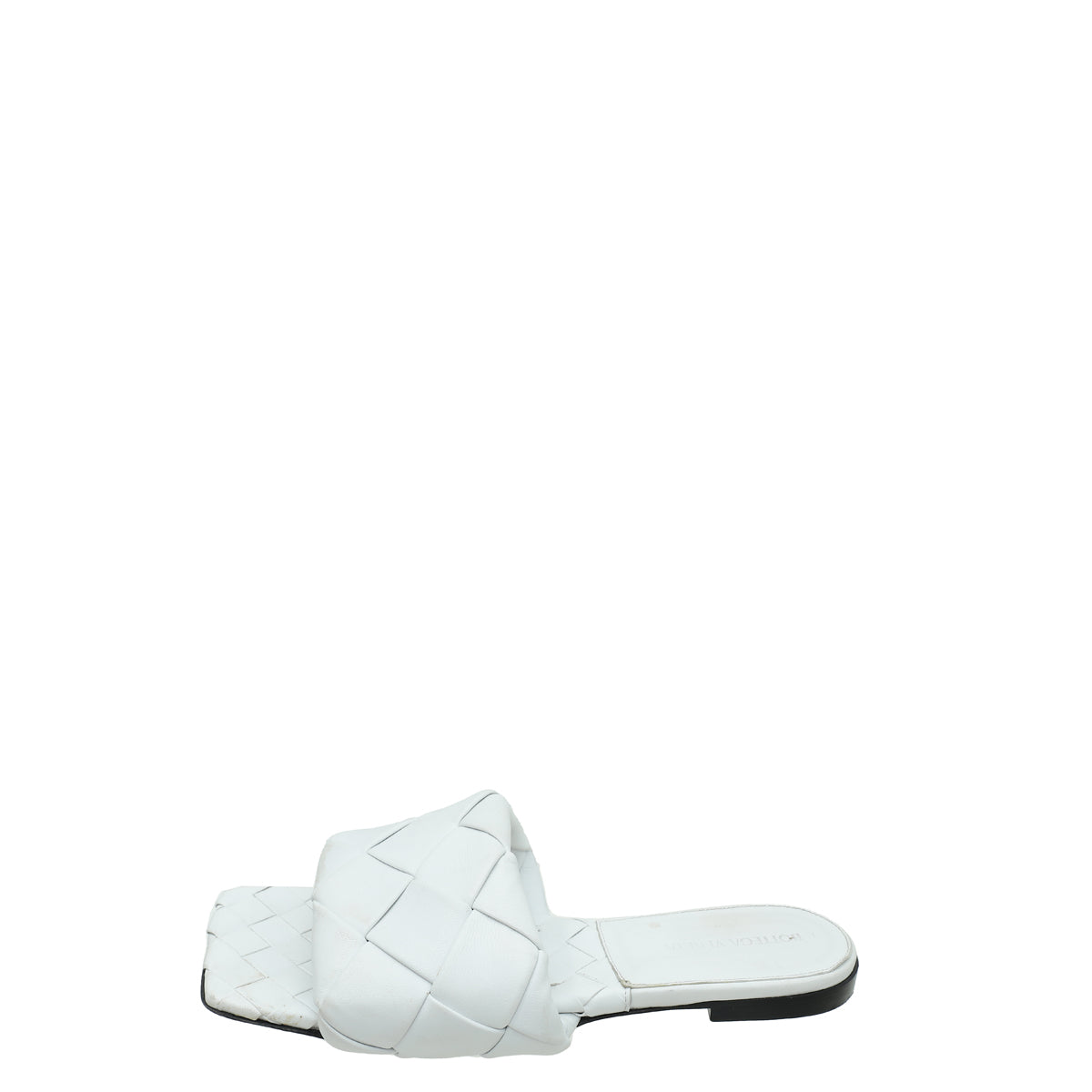 Bottega Veneta White Intrecciato Lido Flat Sandals 38.5