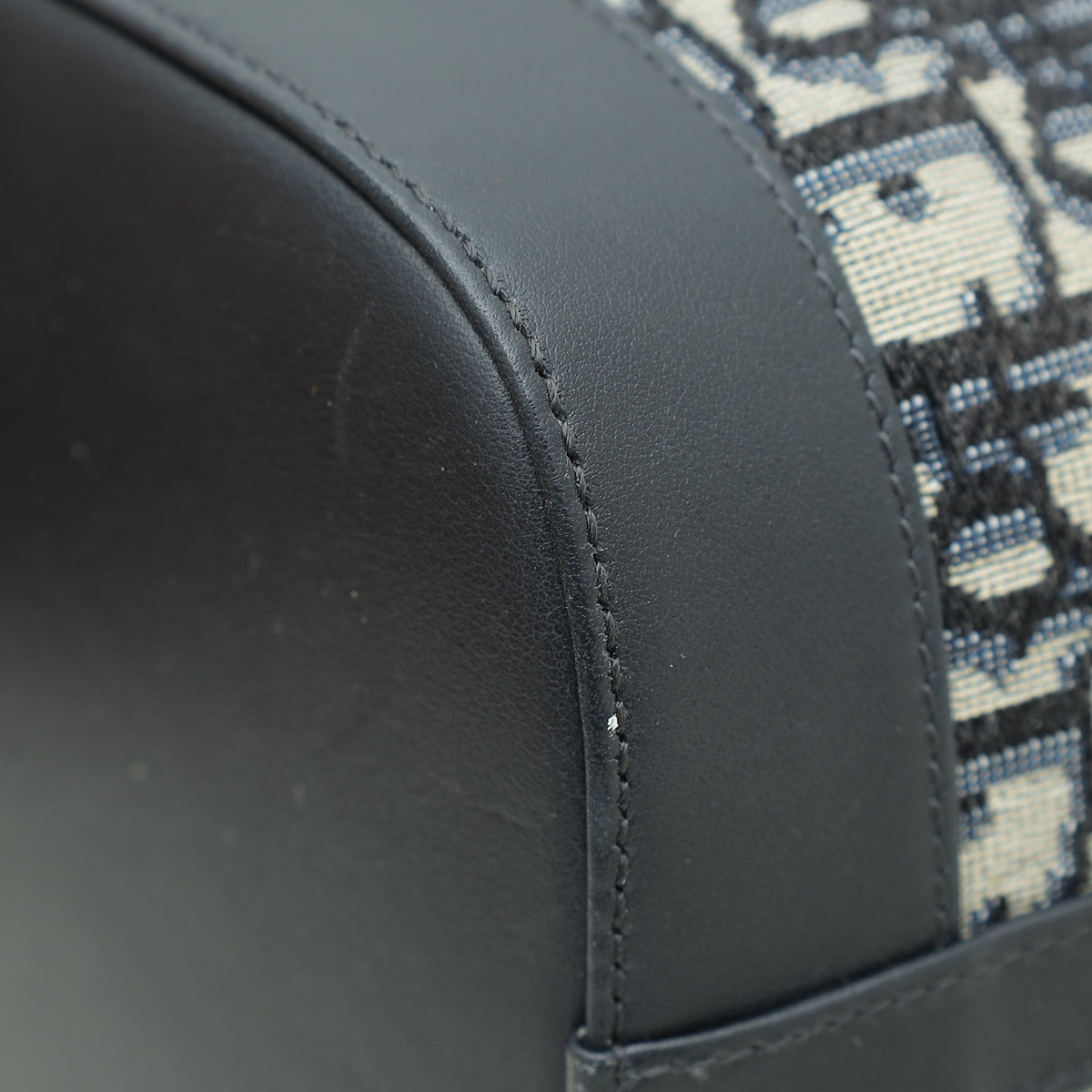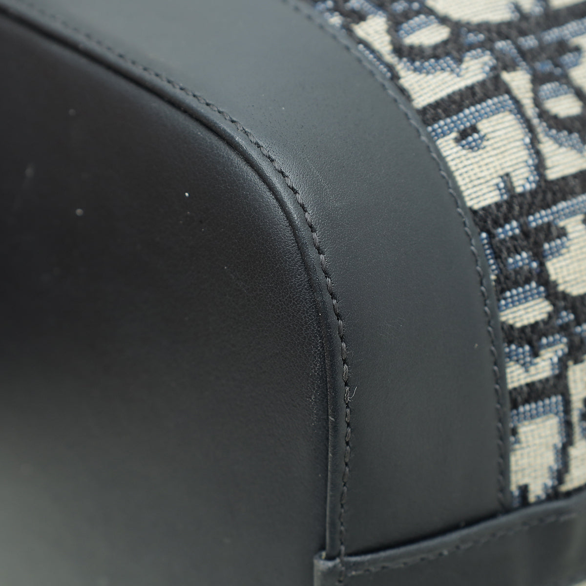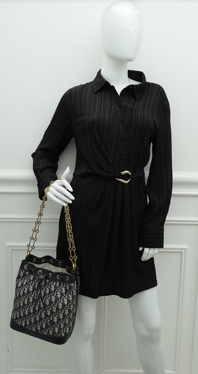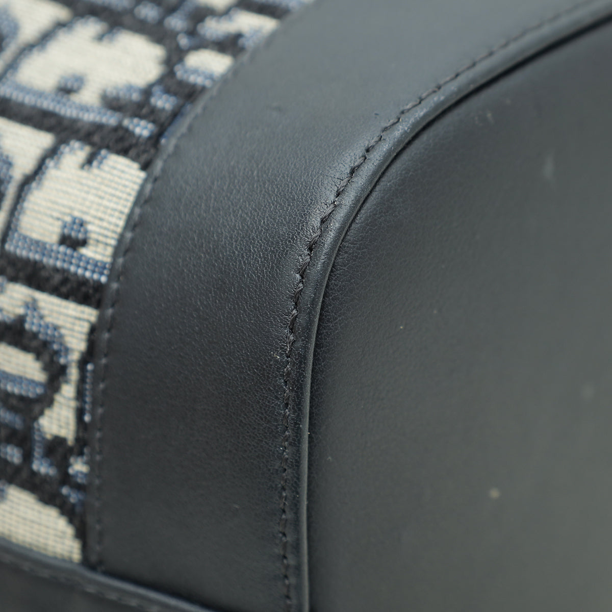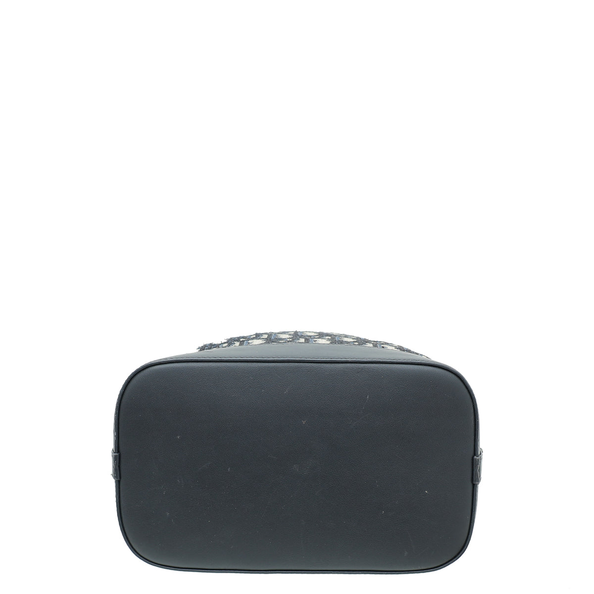 Christian Dior Blue Oblique Drawstring Chain Bucket Large Bag