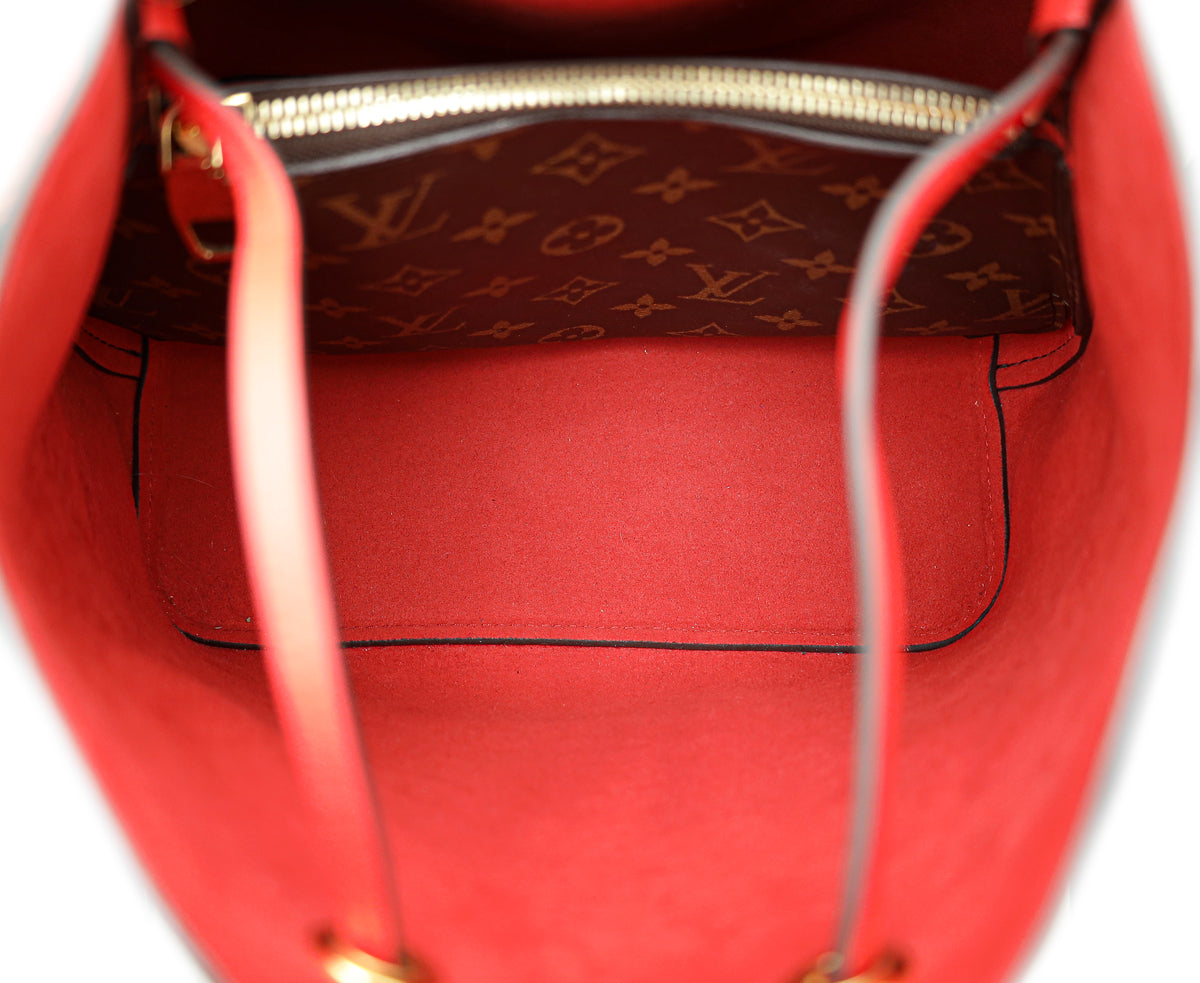 - Material: Brown Monogram Coated Canvas with Coquelicot Leather Trim