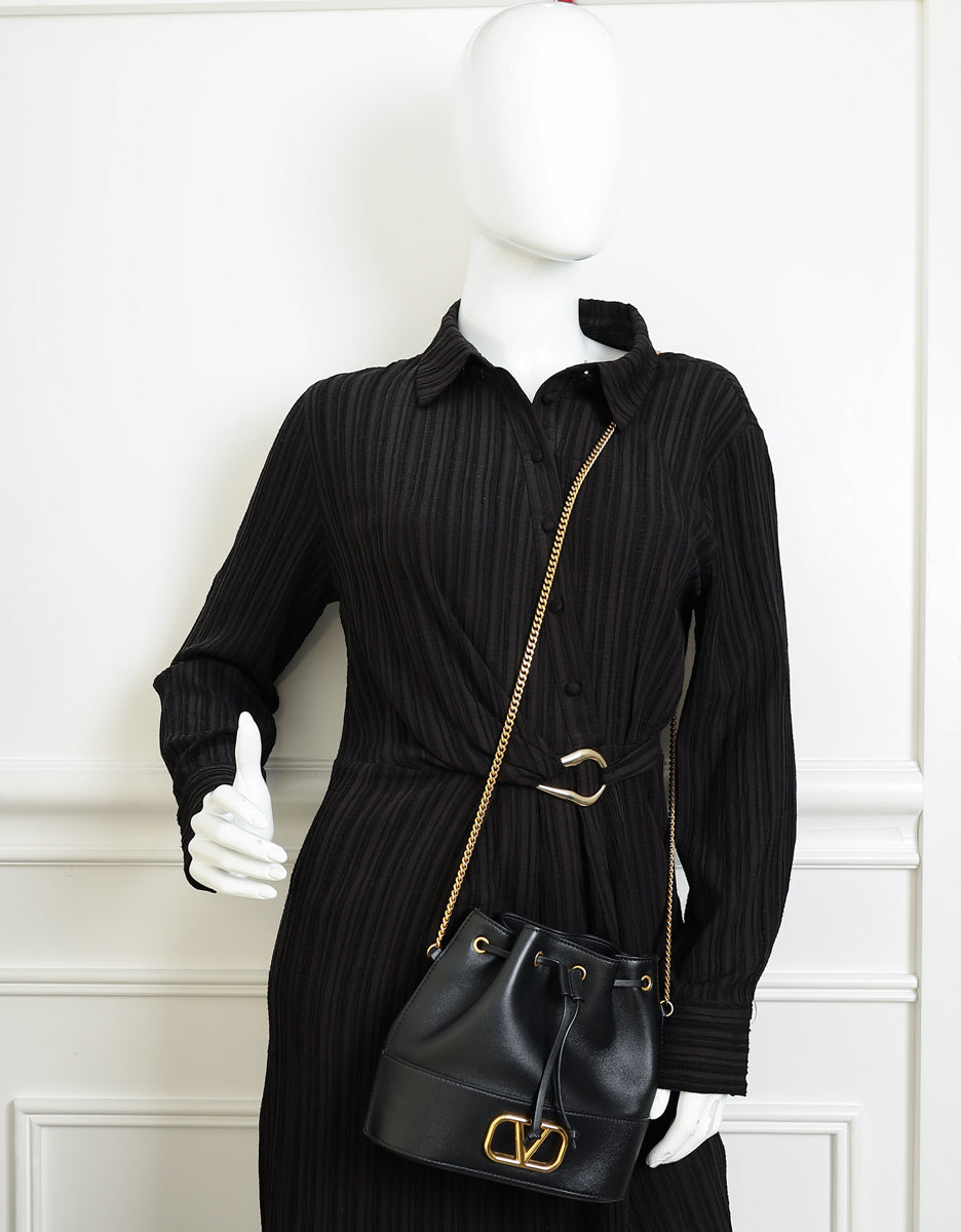 Valentino Black Vlogo Signature Mini Bucket Bag