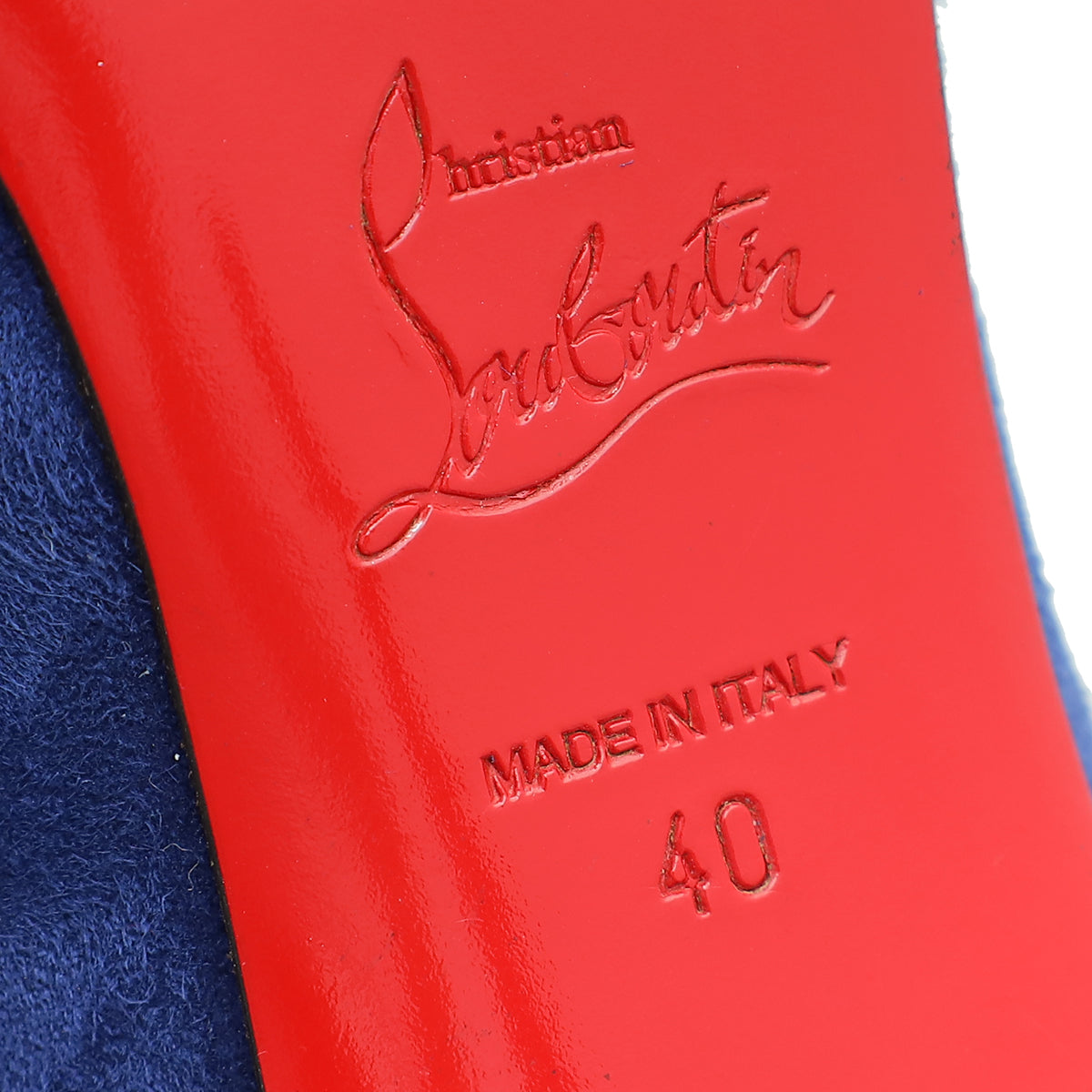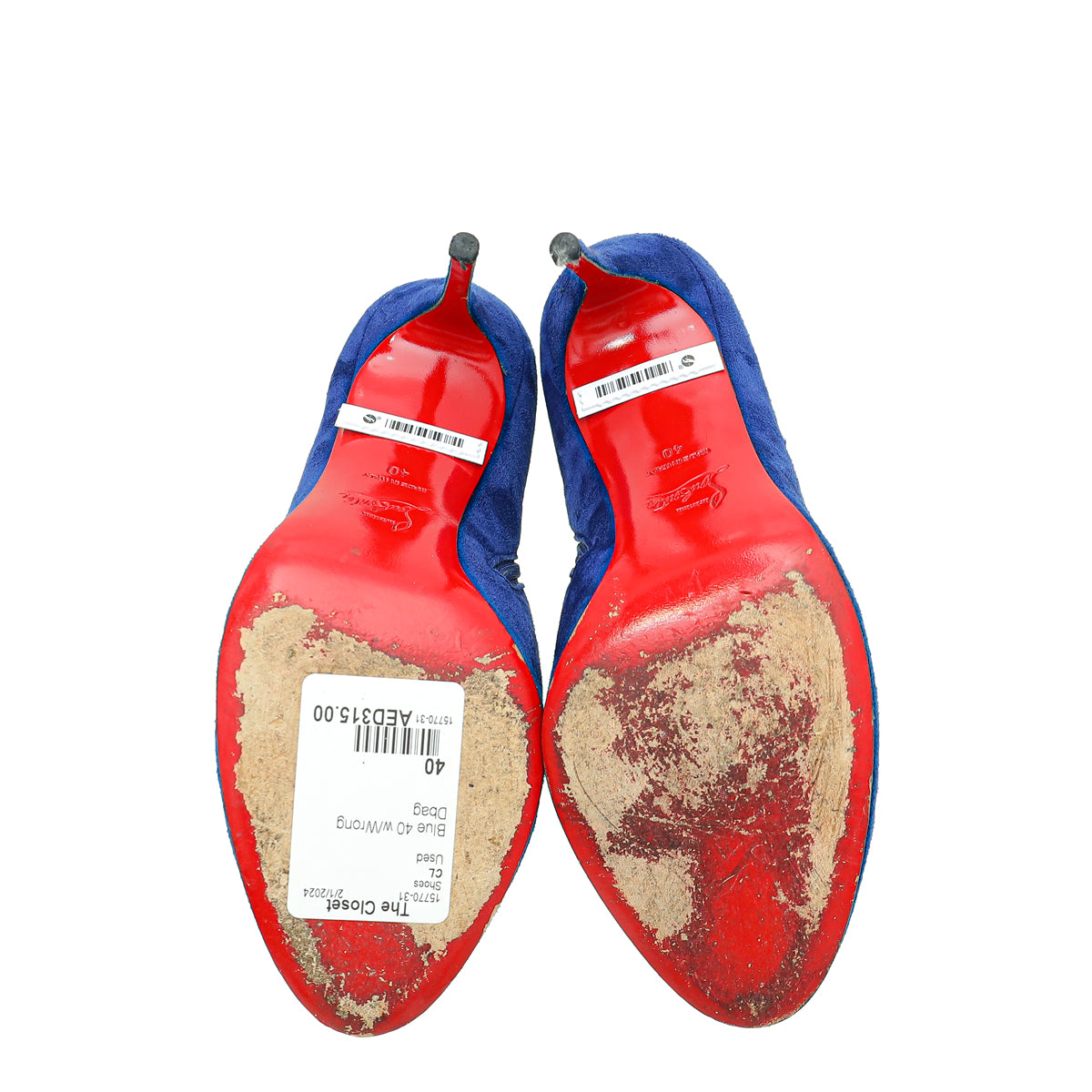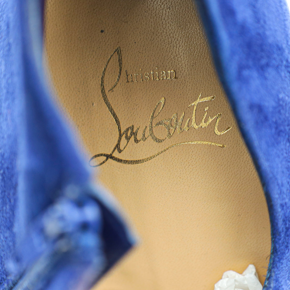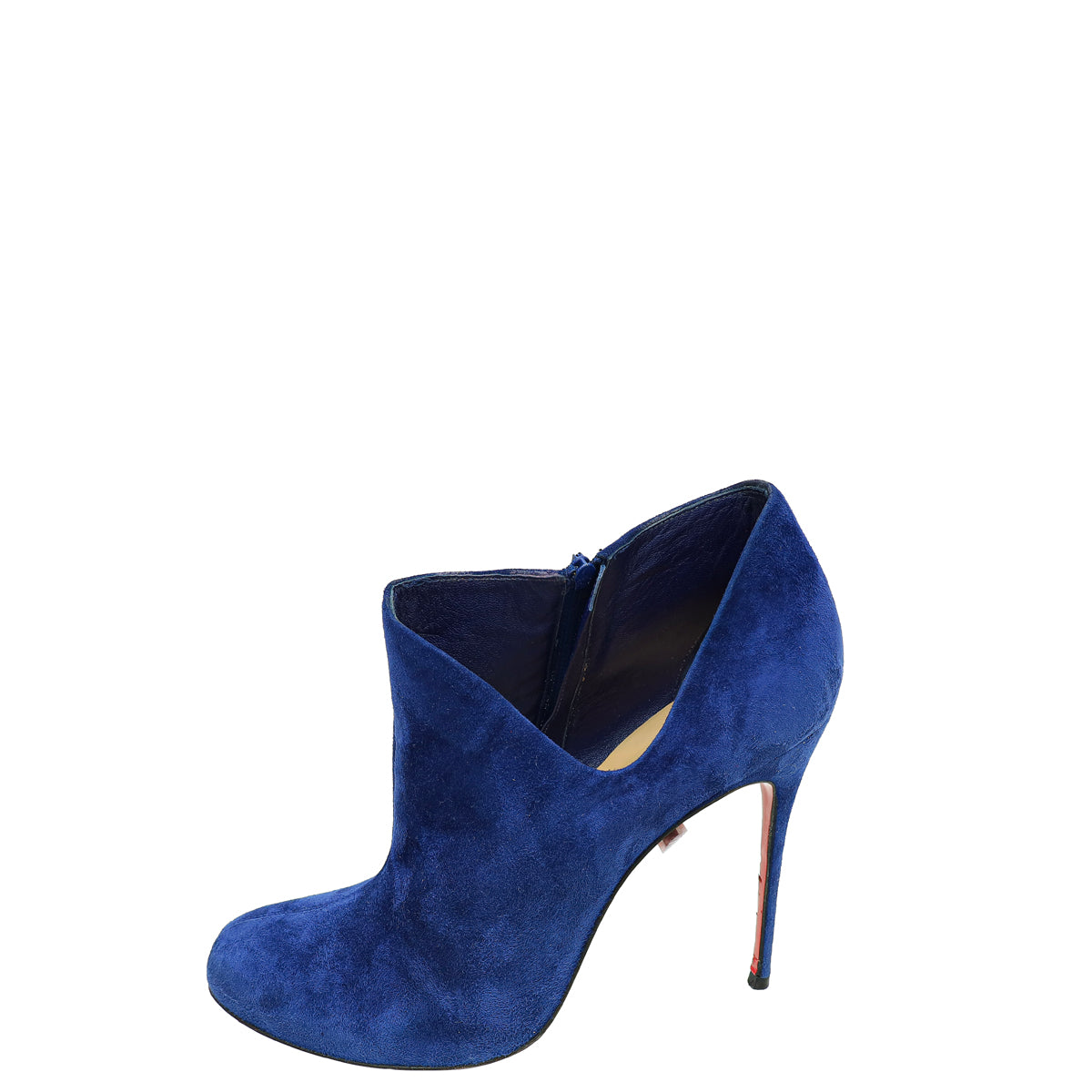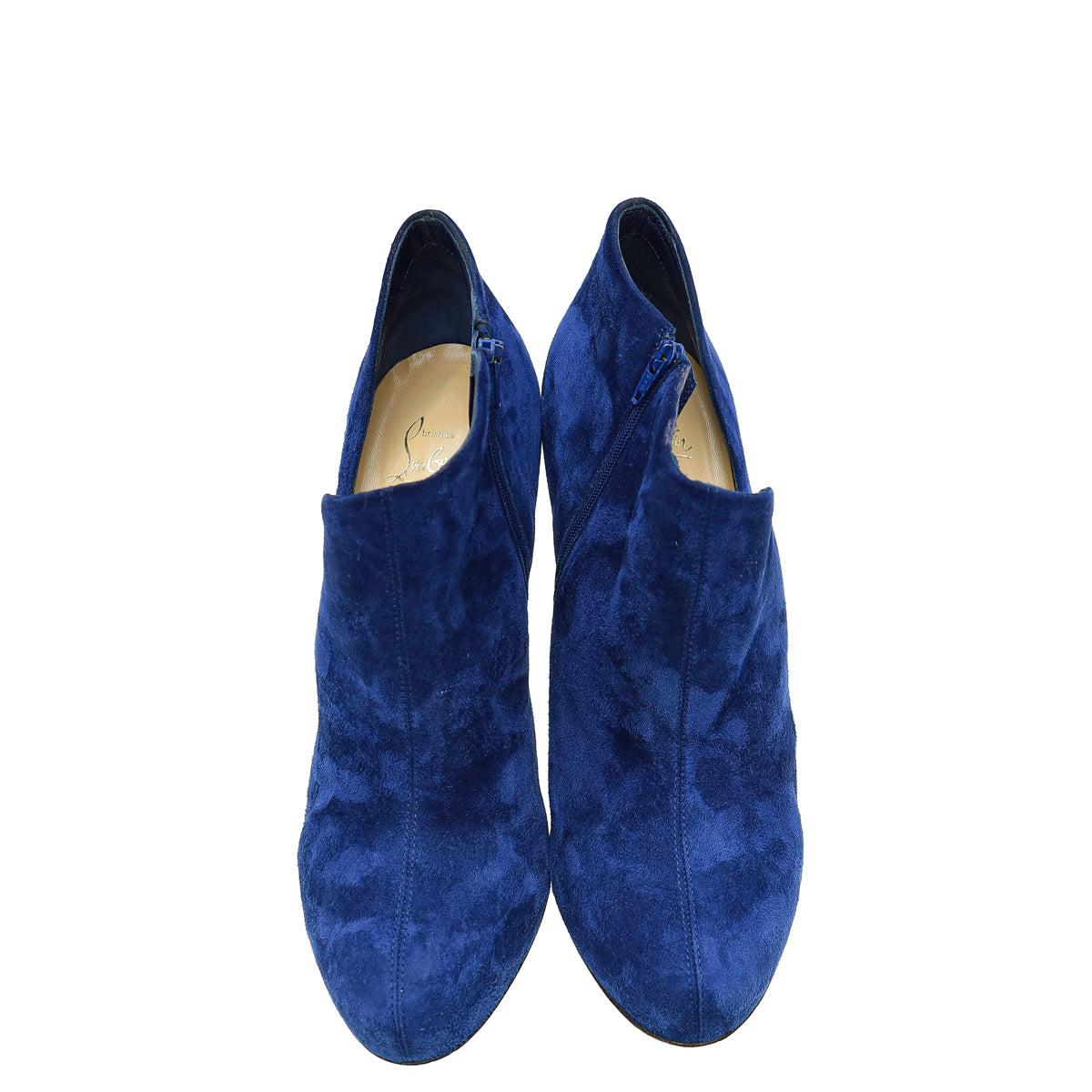 Christian Louboutin Blue Suede Side Zip Ankle High Boot 40