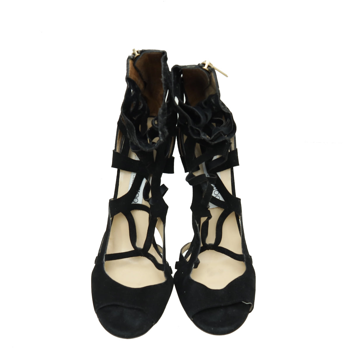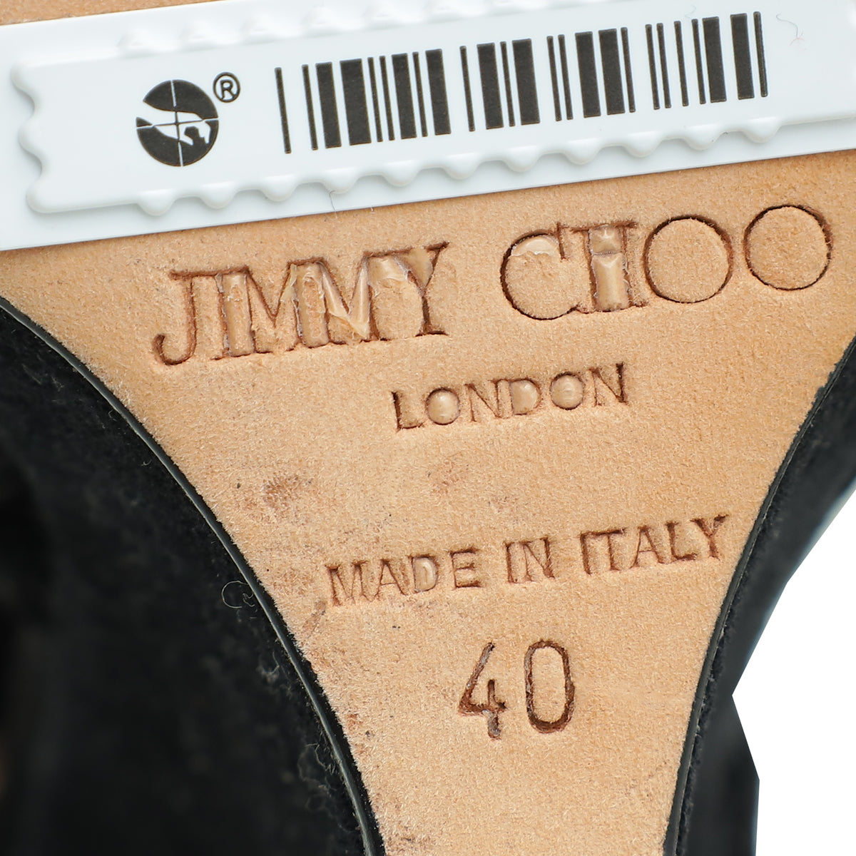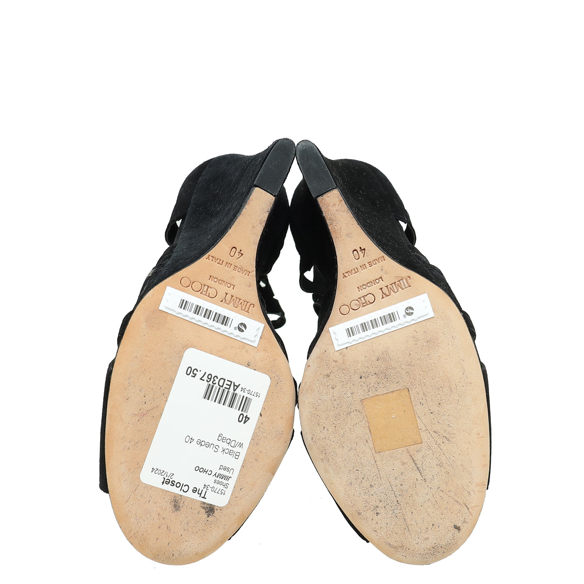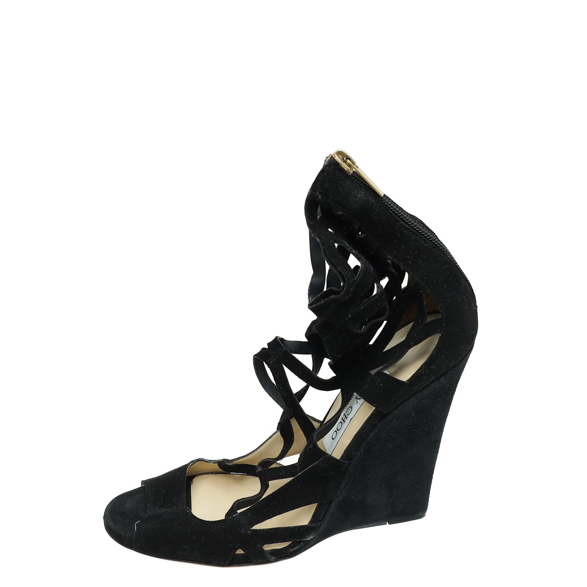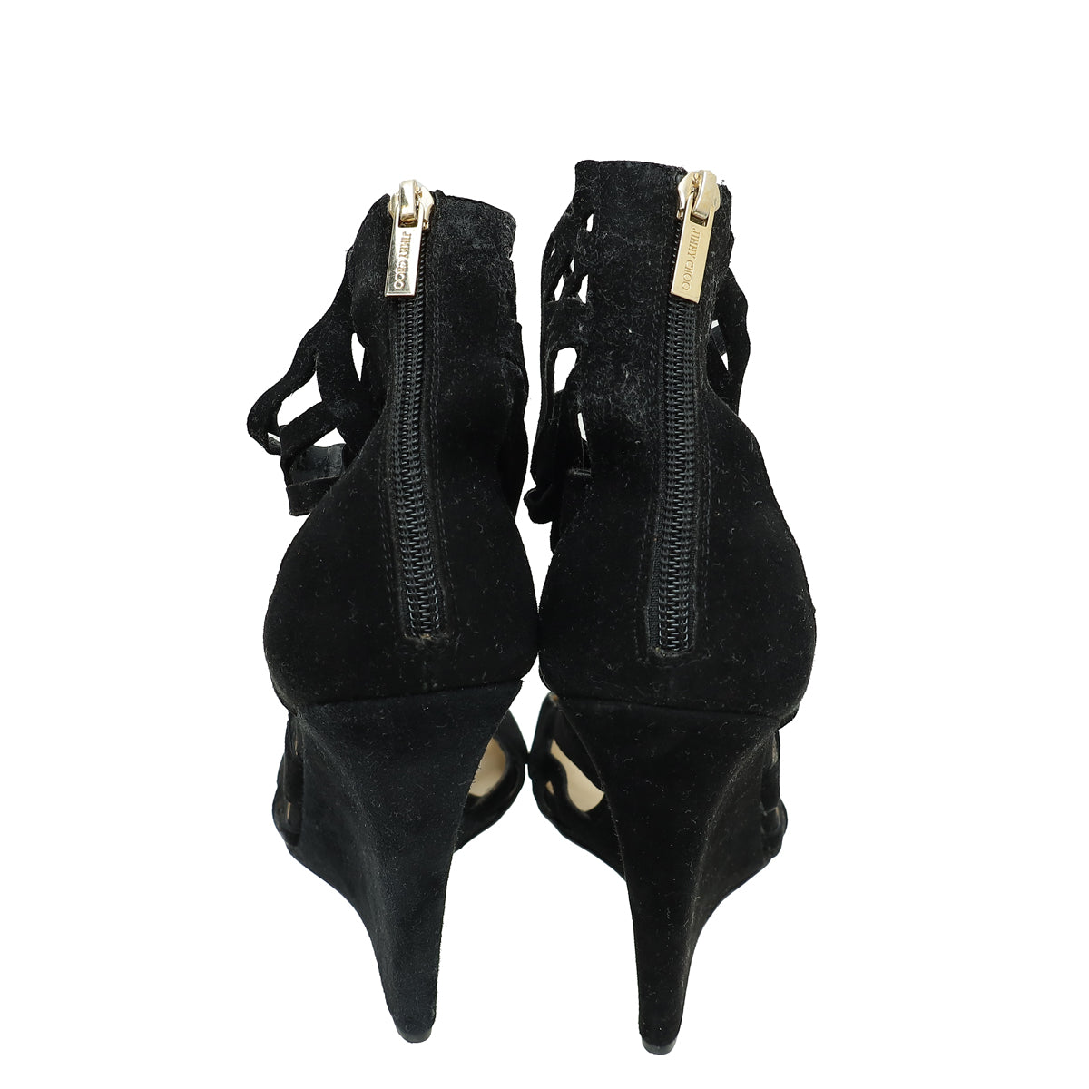 Jimmy Choo Black Suede Strappy Ankle Zip Wedge 40