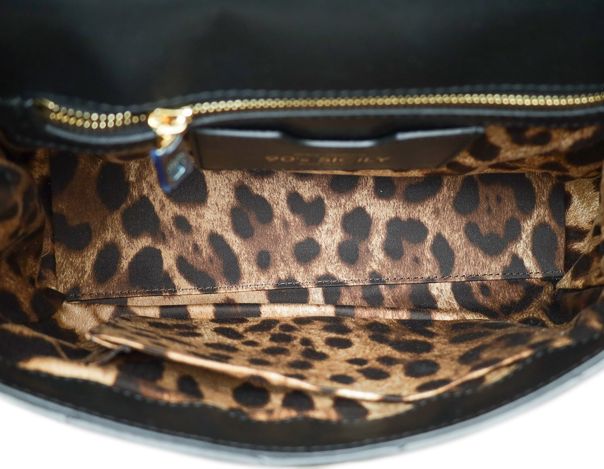 Material: Black Aria Calfskin Leather and Interior Leopard Print