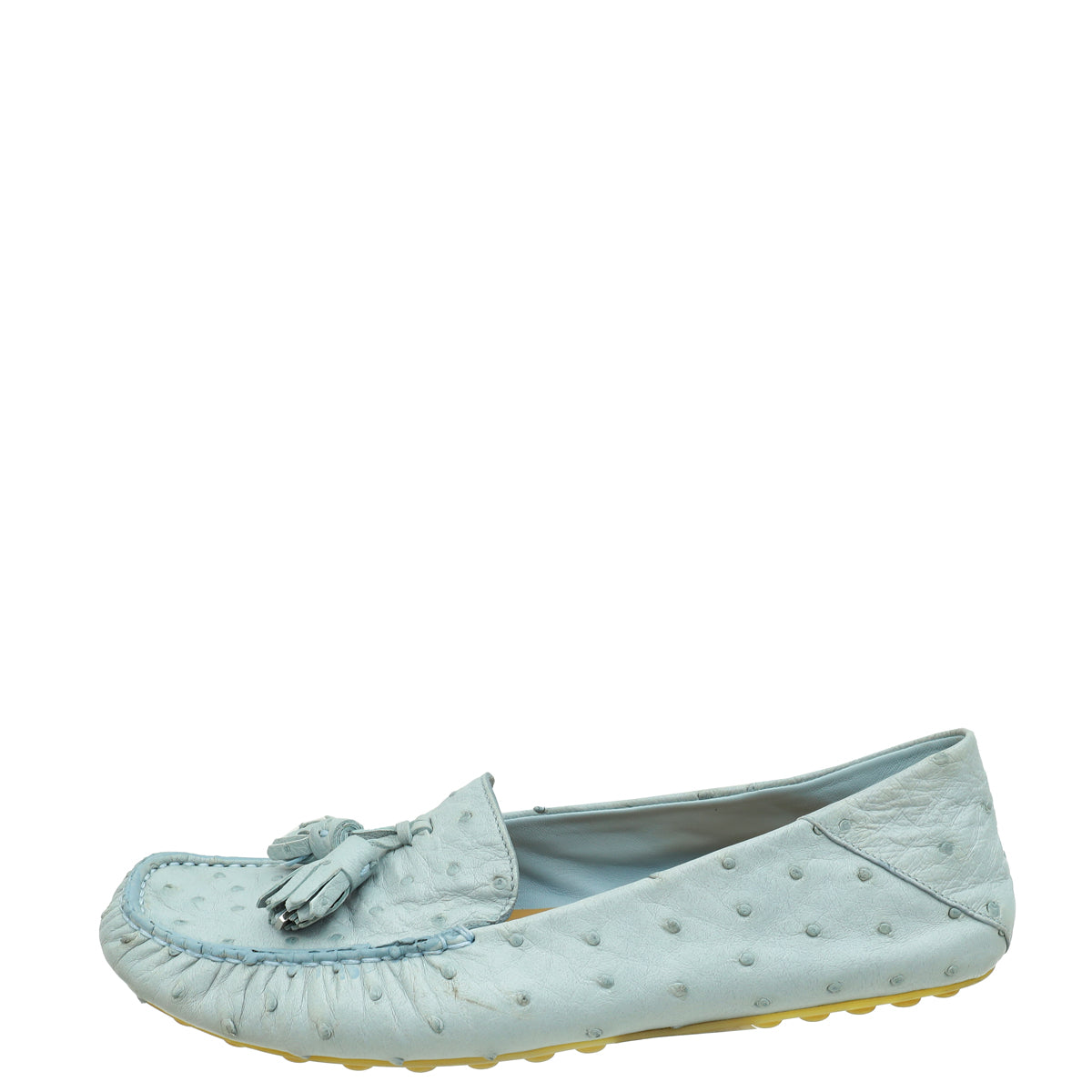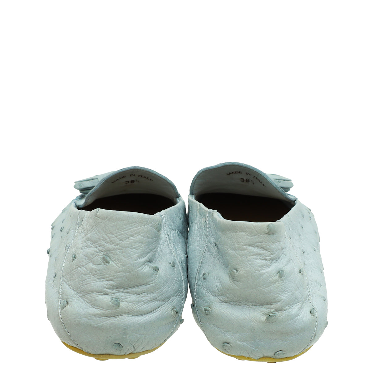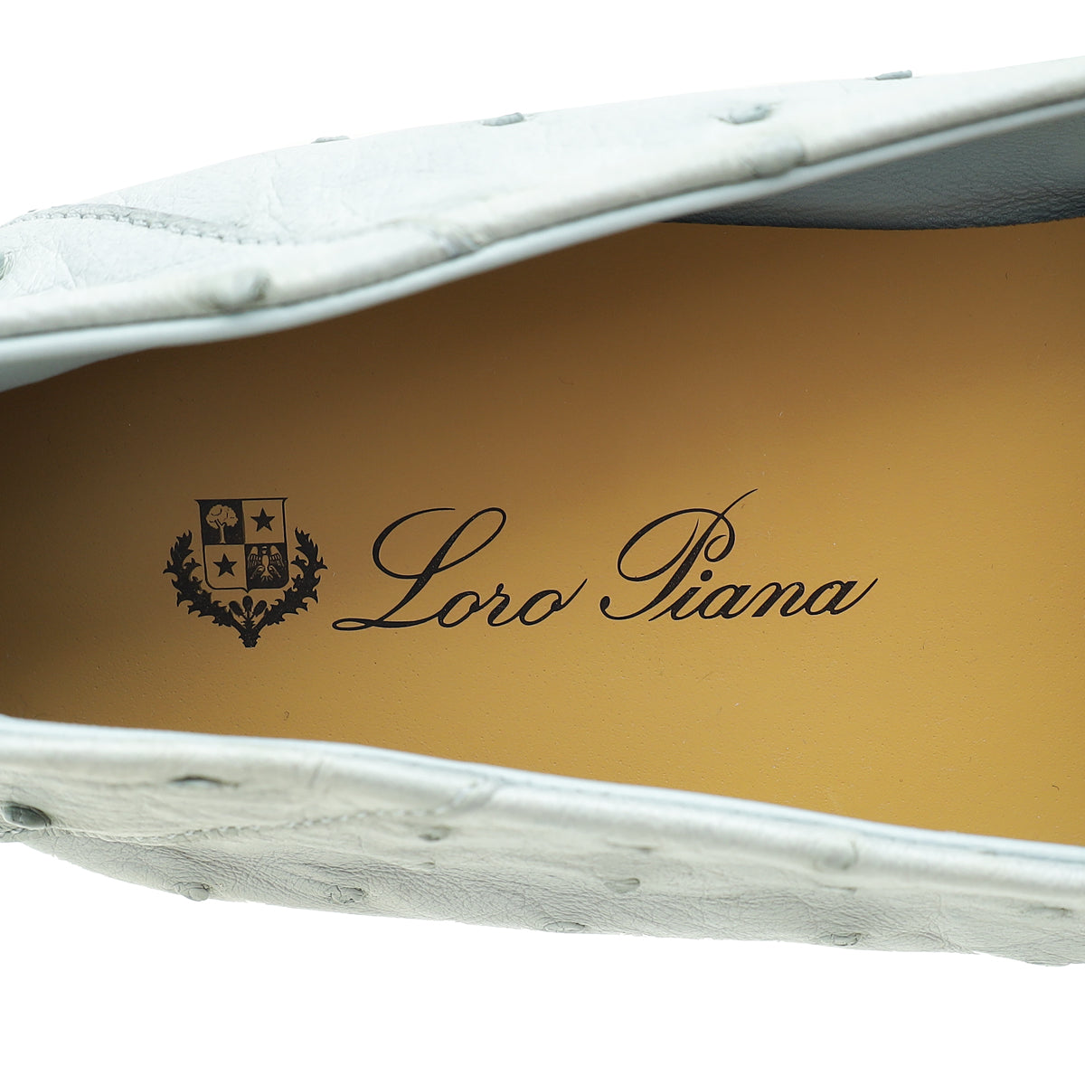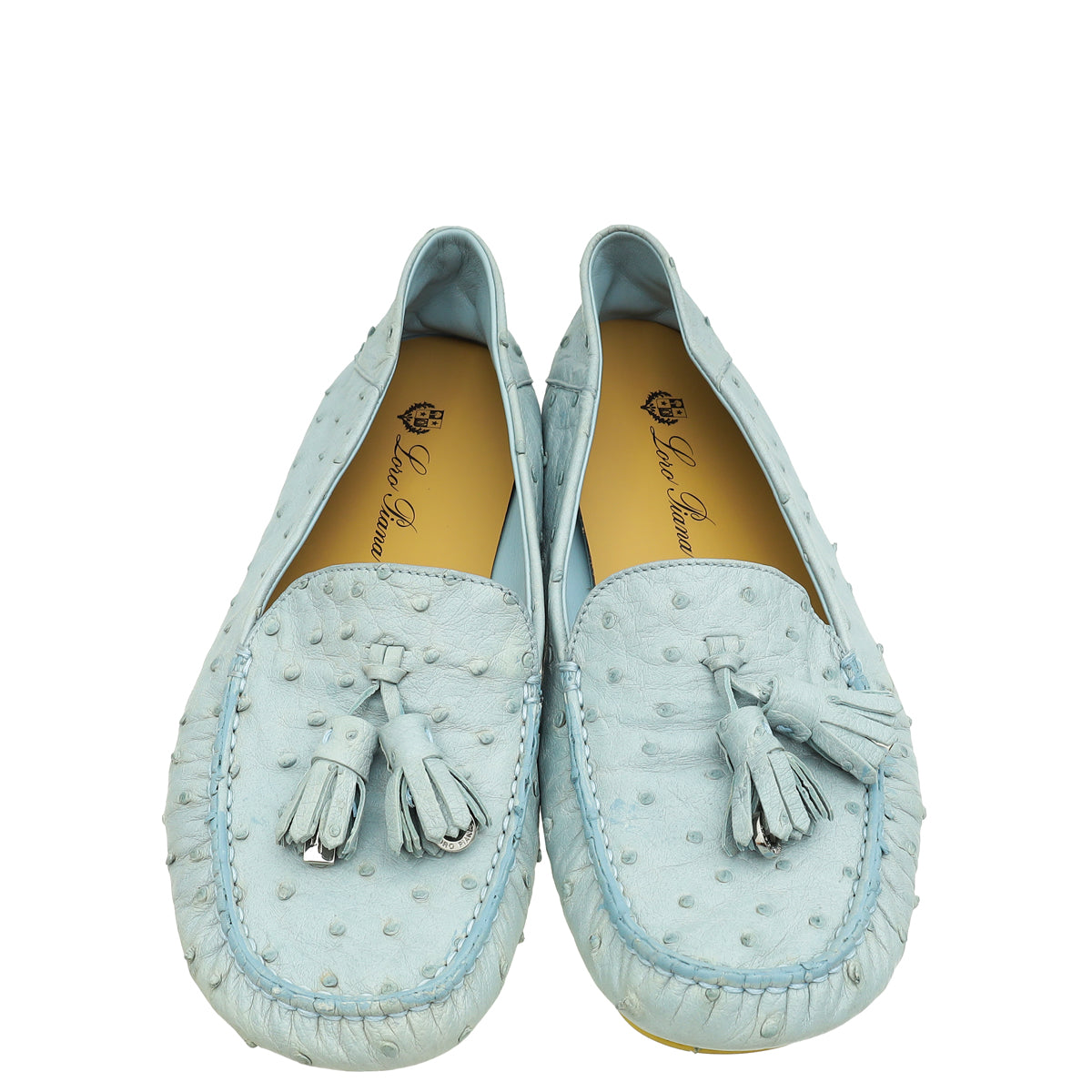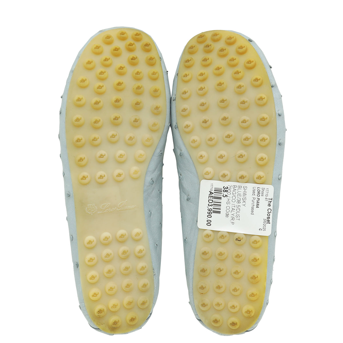Loro Piana Sky Blue Ostrich Dot Sole Walk Loafer 38.5