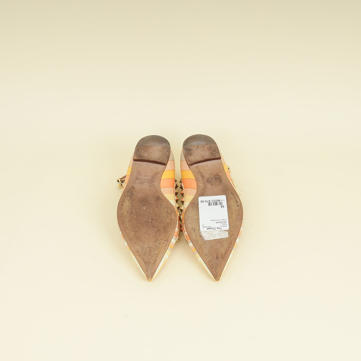 Valentino Multicolor Rockstud Caged Ankle Strap Flat Ballerina 38