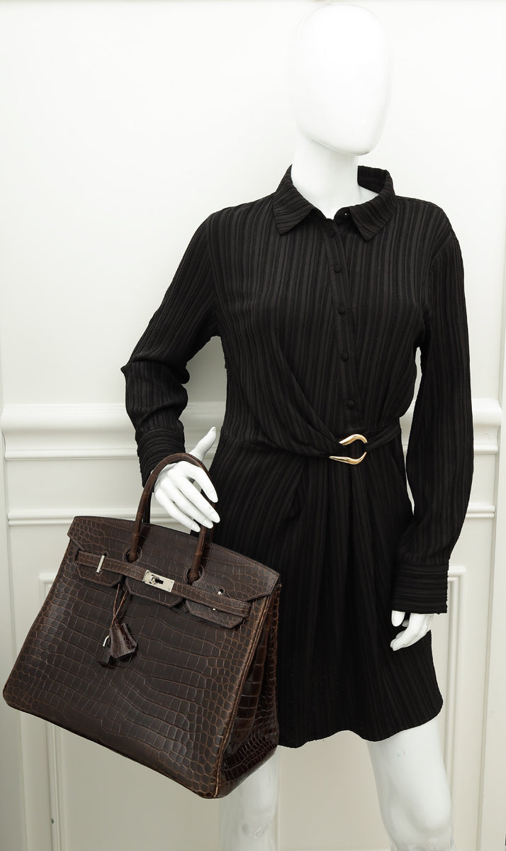 Hermes Cocoan Shiny Porosus Crocodile Birkin 35 Bag