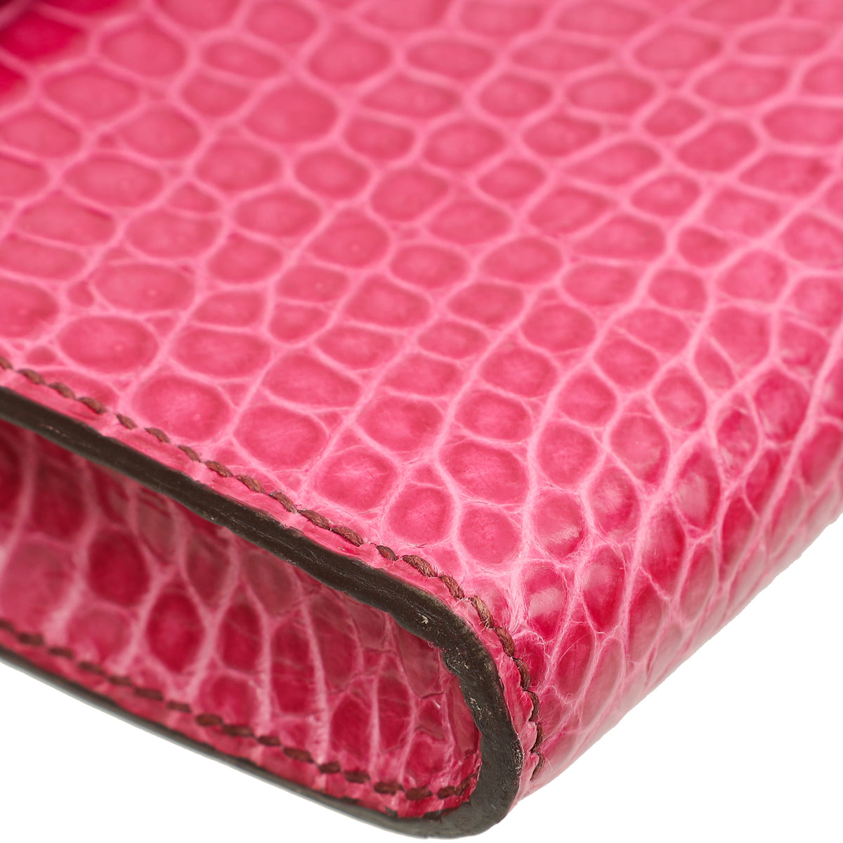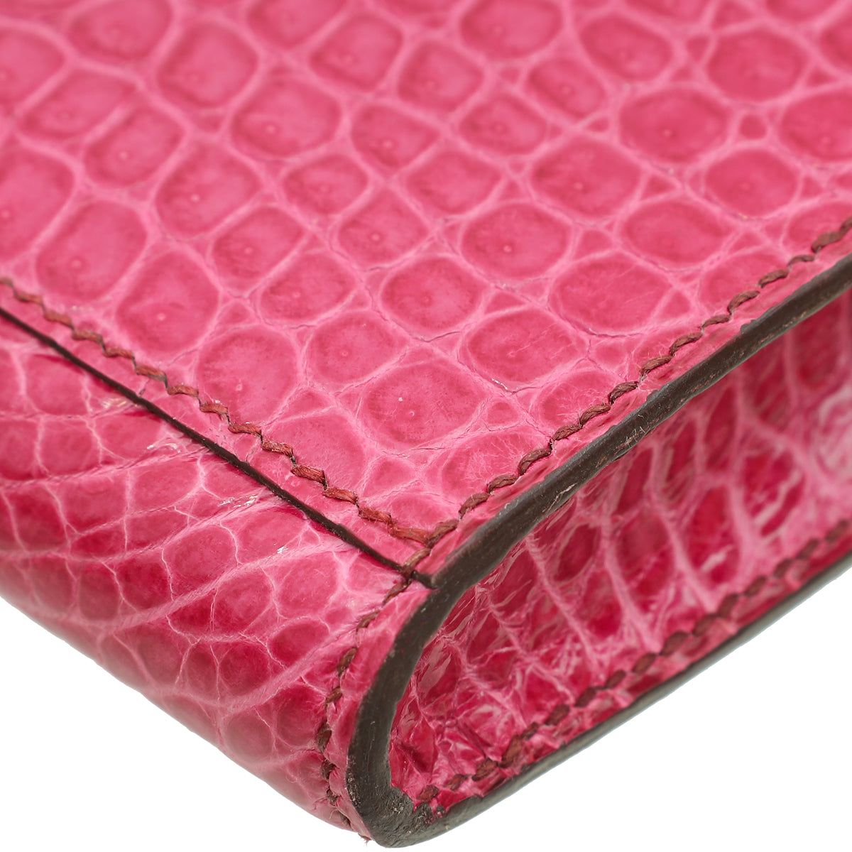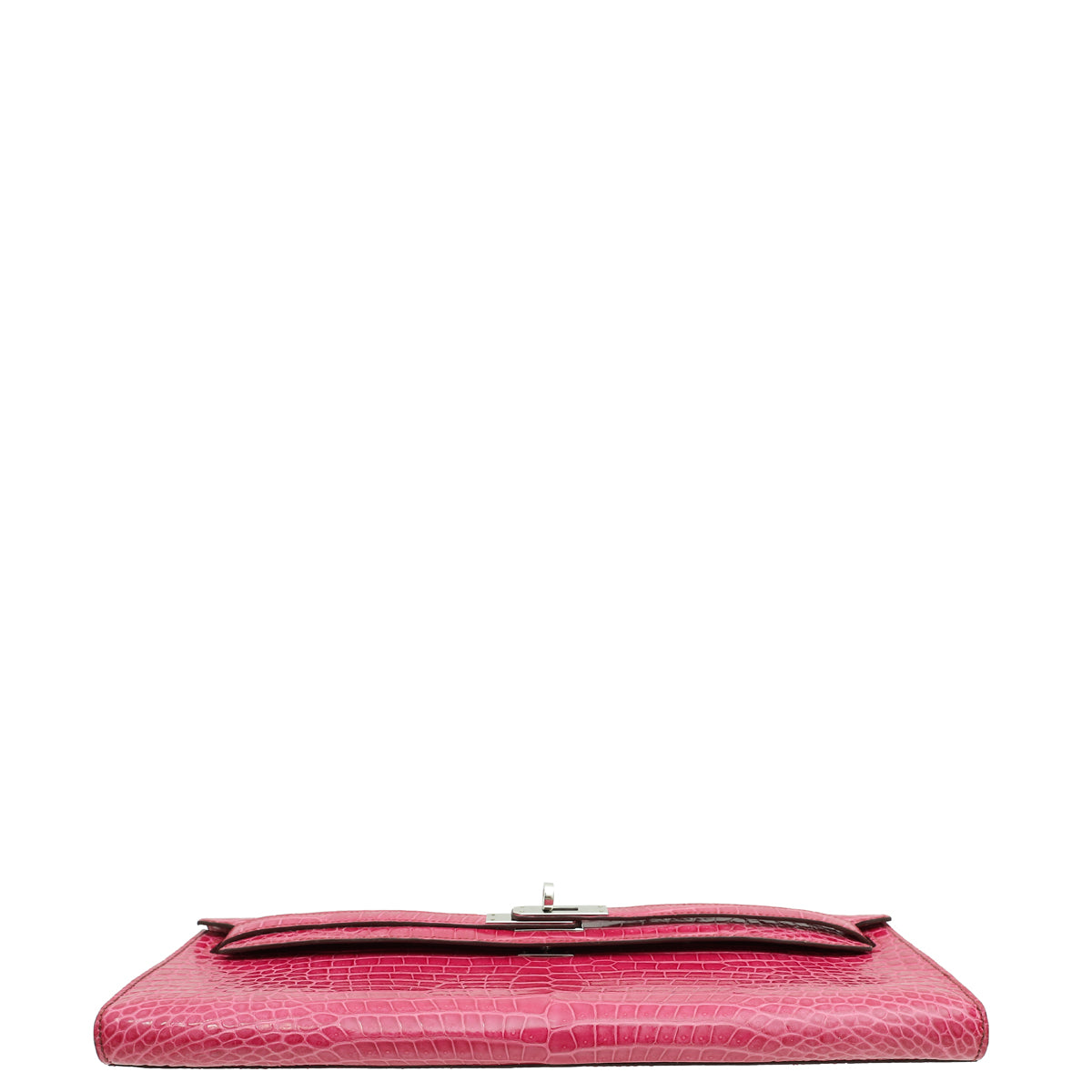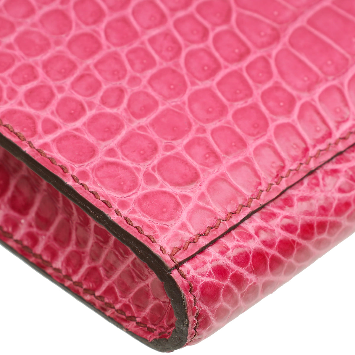 Hermes Fuchsia Shiny Porosus Crocodile Kelly Cut Clutch