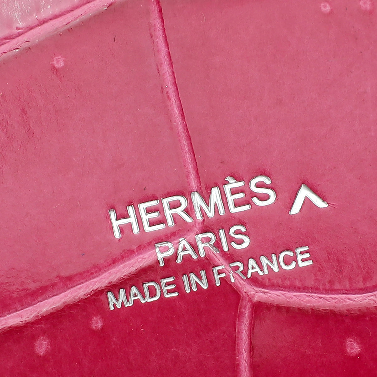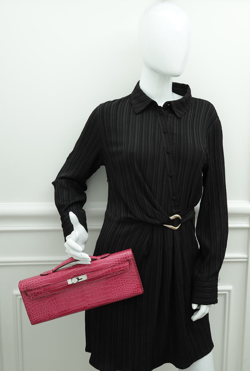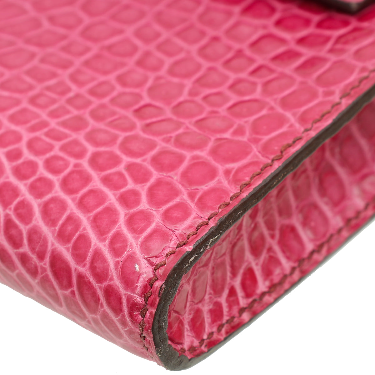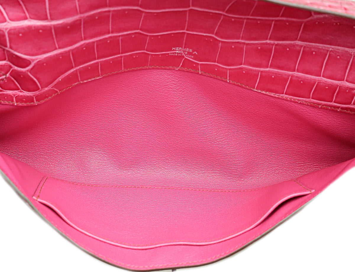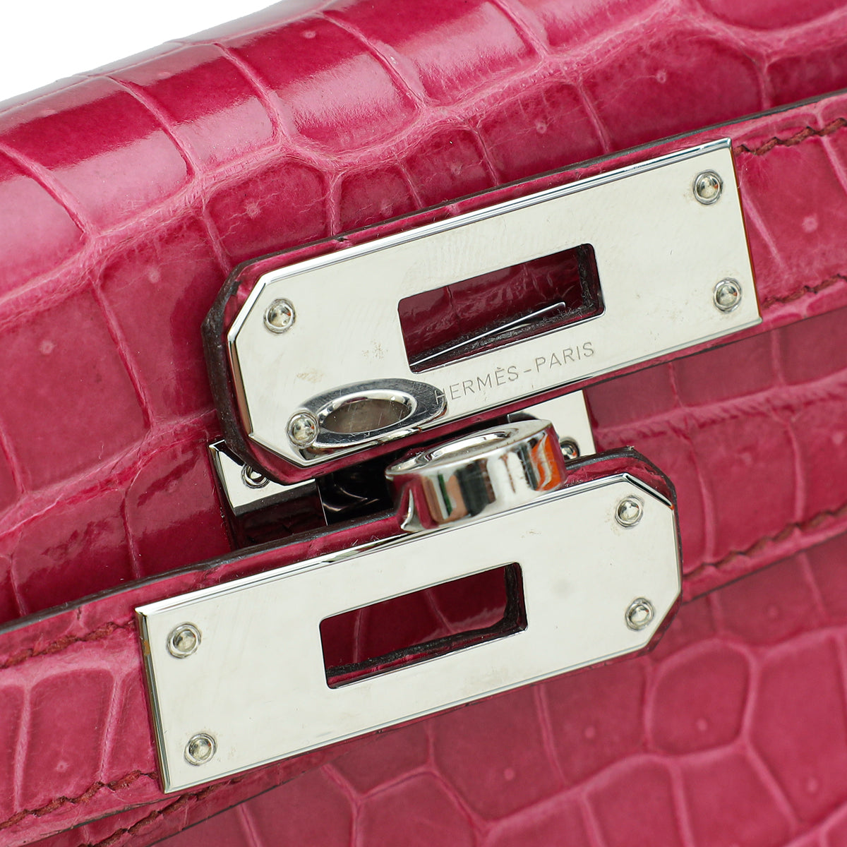 Hermes Fuchsia Shiny Porosus Crocodile Kelly Cut Clutch