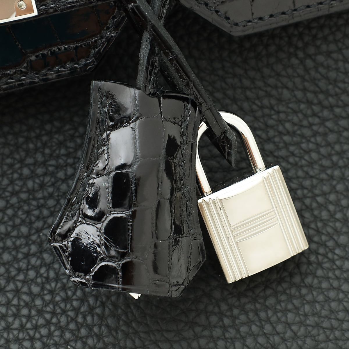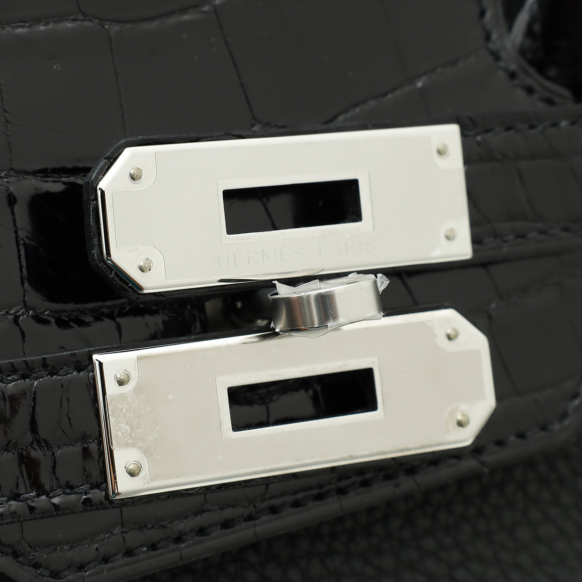 Hermes Noir Shiny Niloticus Crocodile Birkin 30 Touch Tog Bag