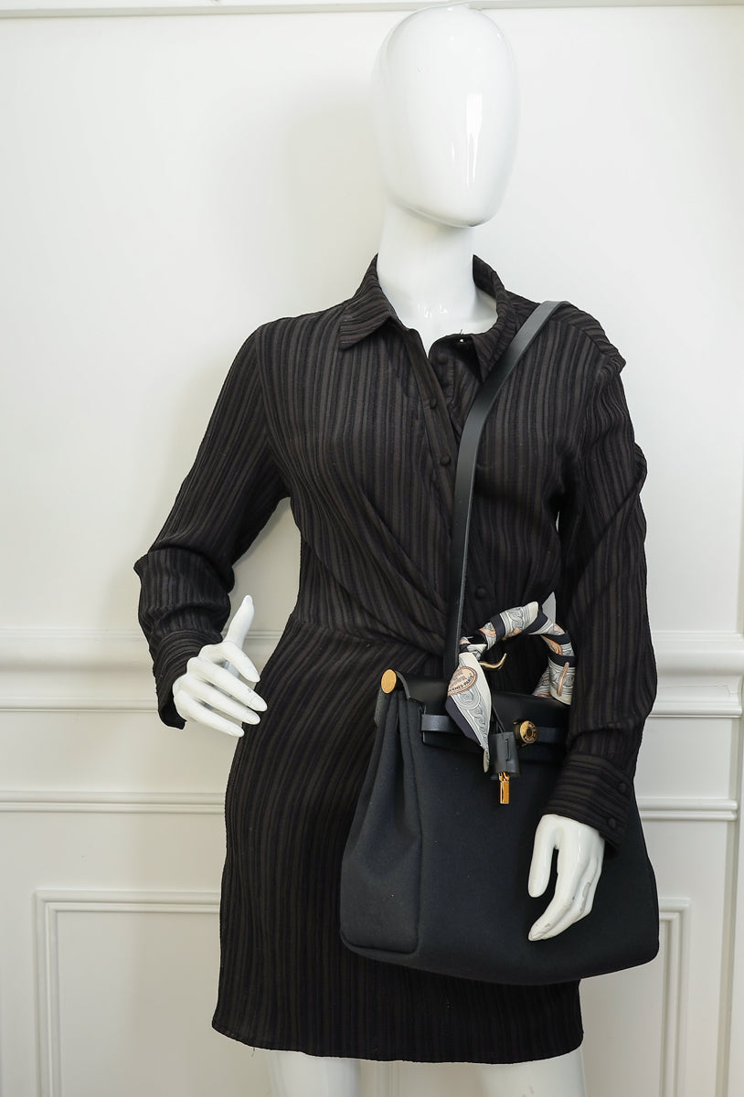Hermes Noir Herbag Zip 31 PM Retourne Bag W/Twilly