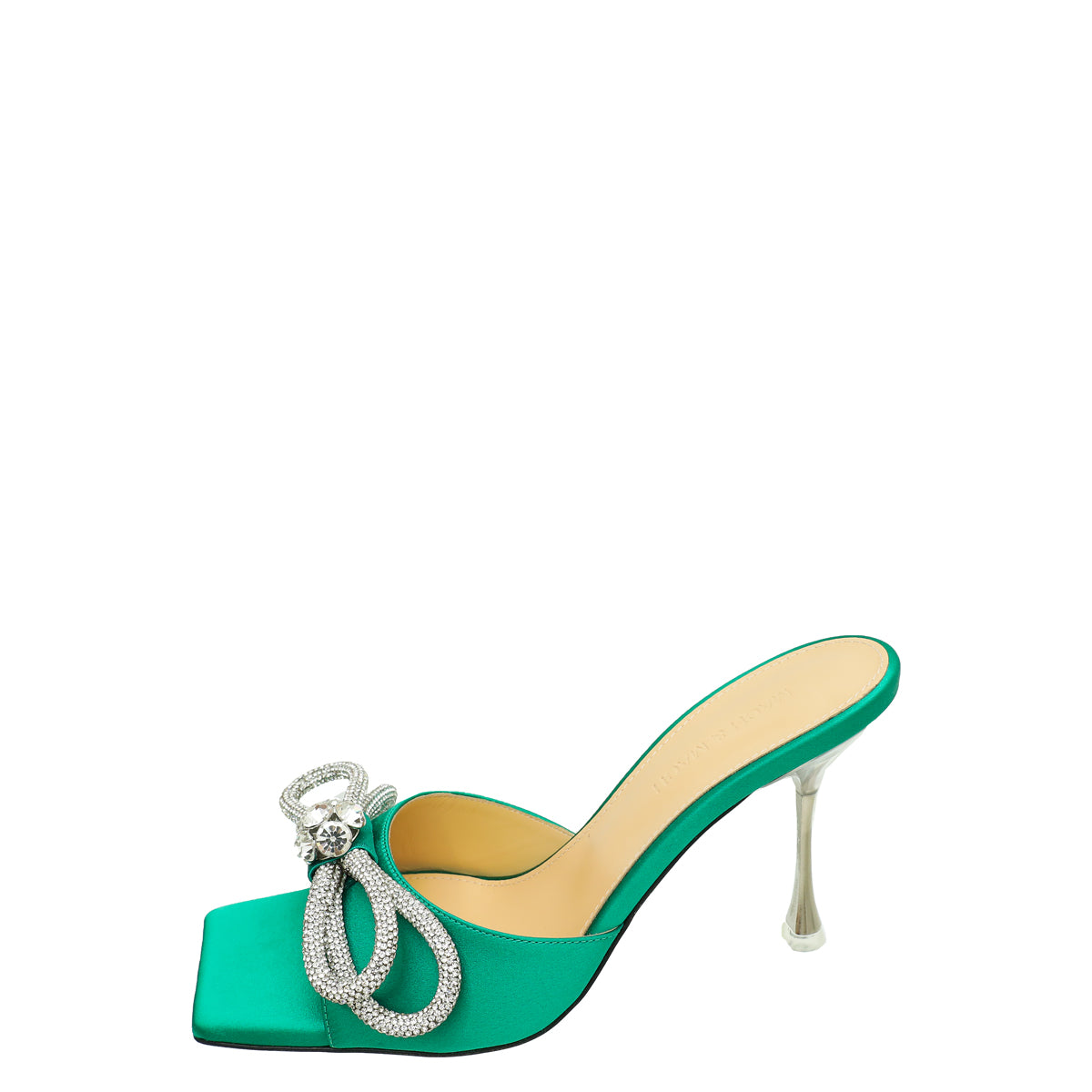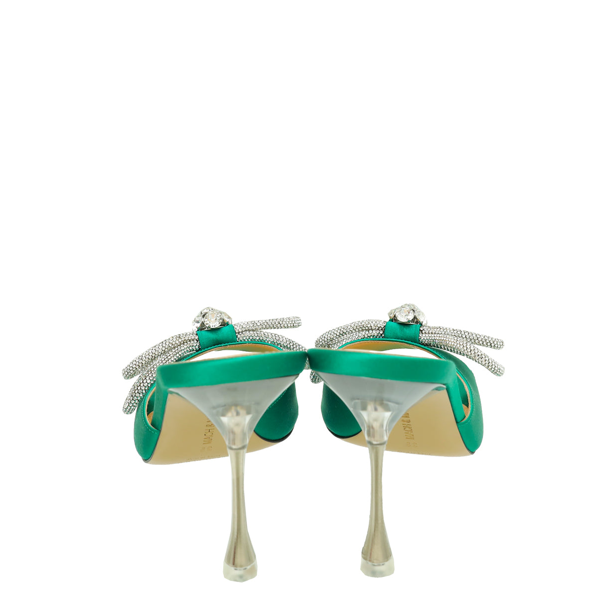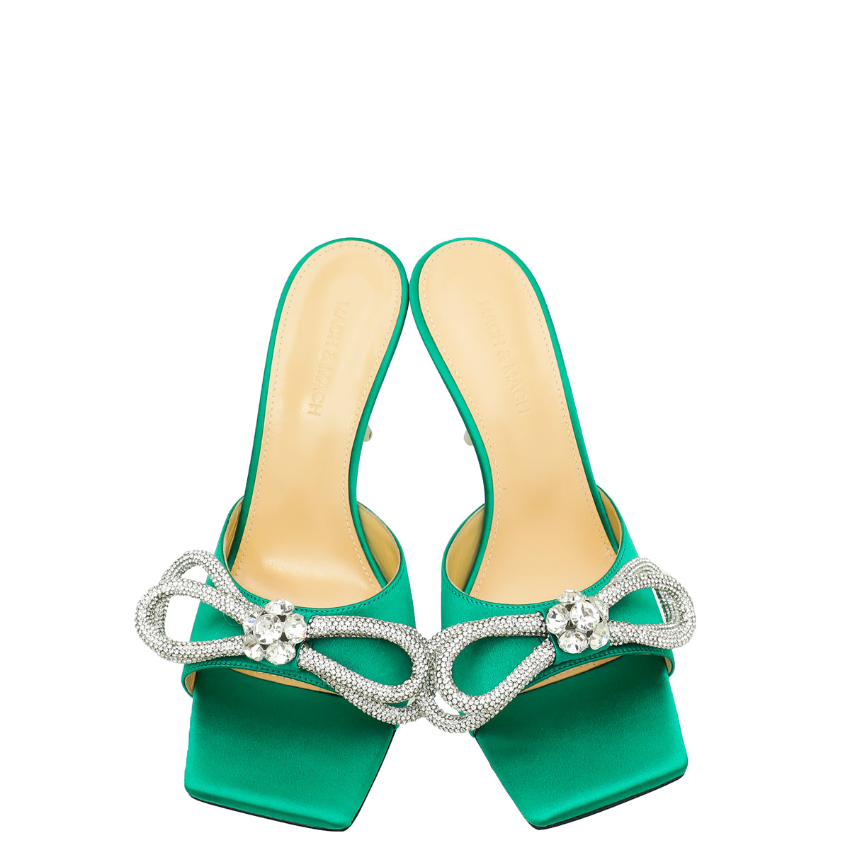 Mach & Mach Emerald Green Double Bow Square Toe 95mm Mules 39