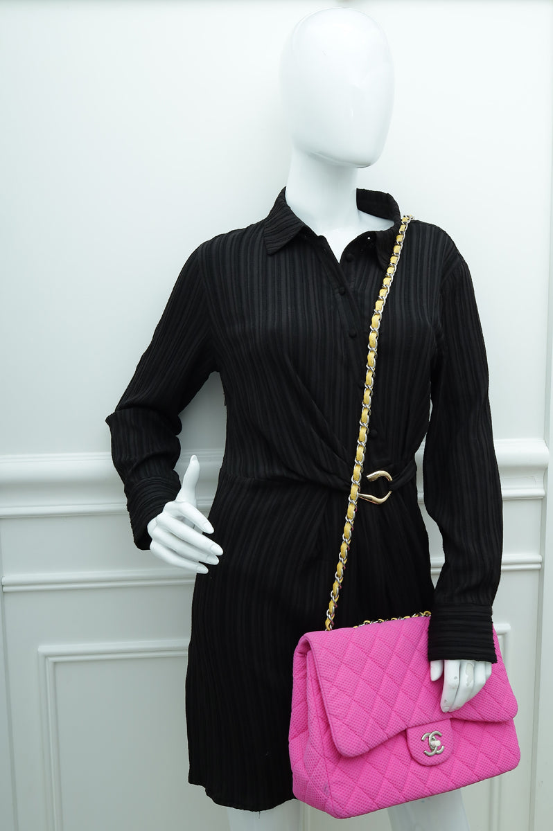 Chanel Bicolor CC Classic Perforated Jersey Single Jumbo Flap Bag