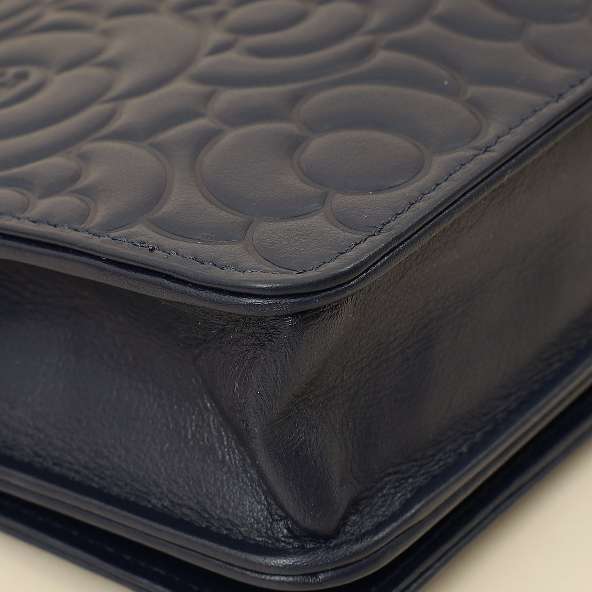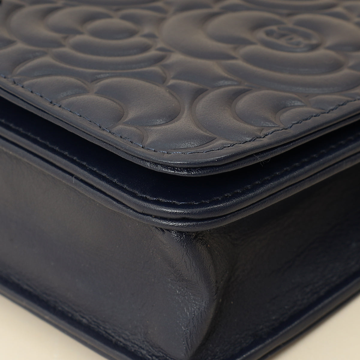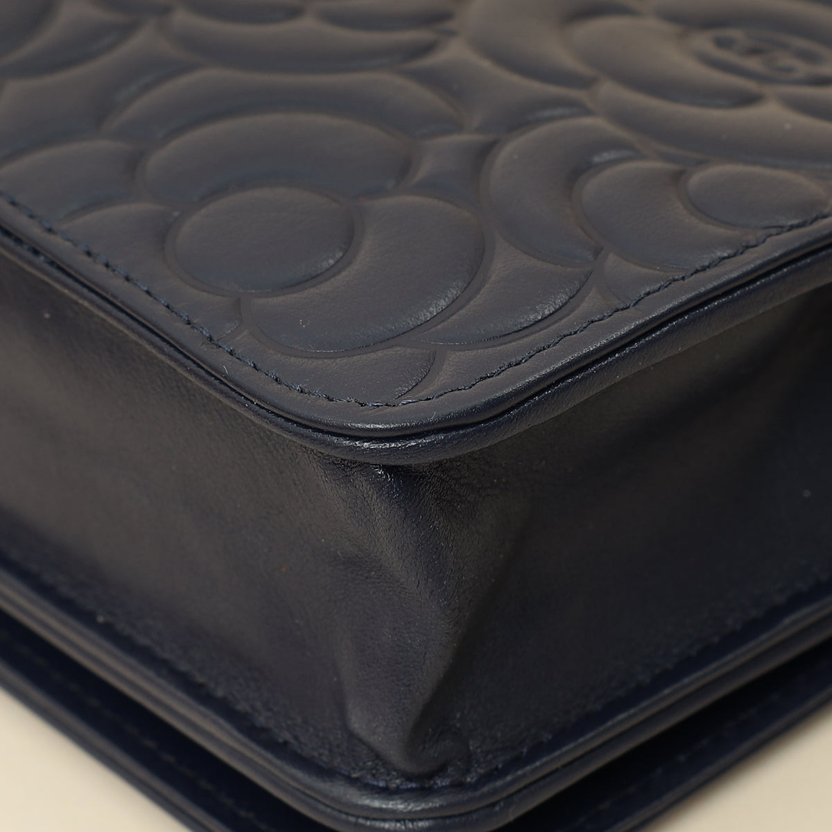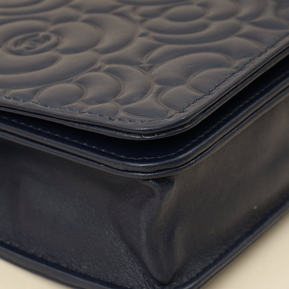 Chanel Navy Blue CC Camellia Flower Embossed Wallet On Chain