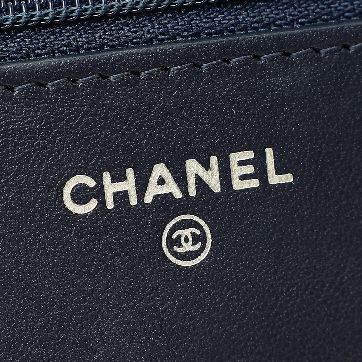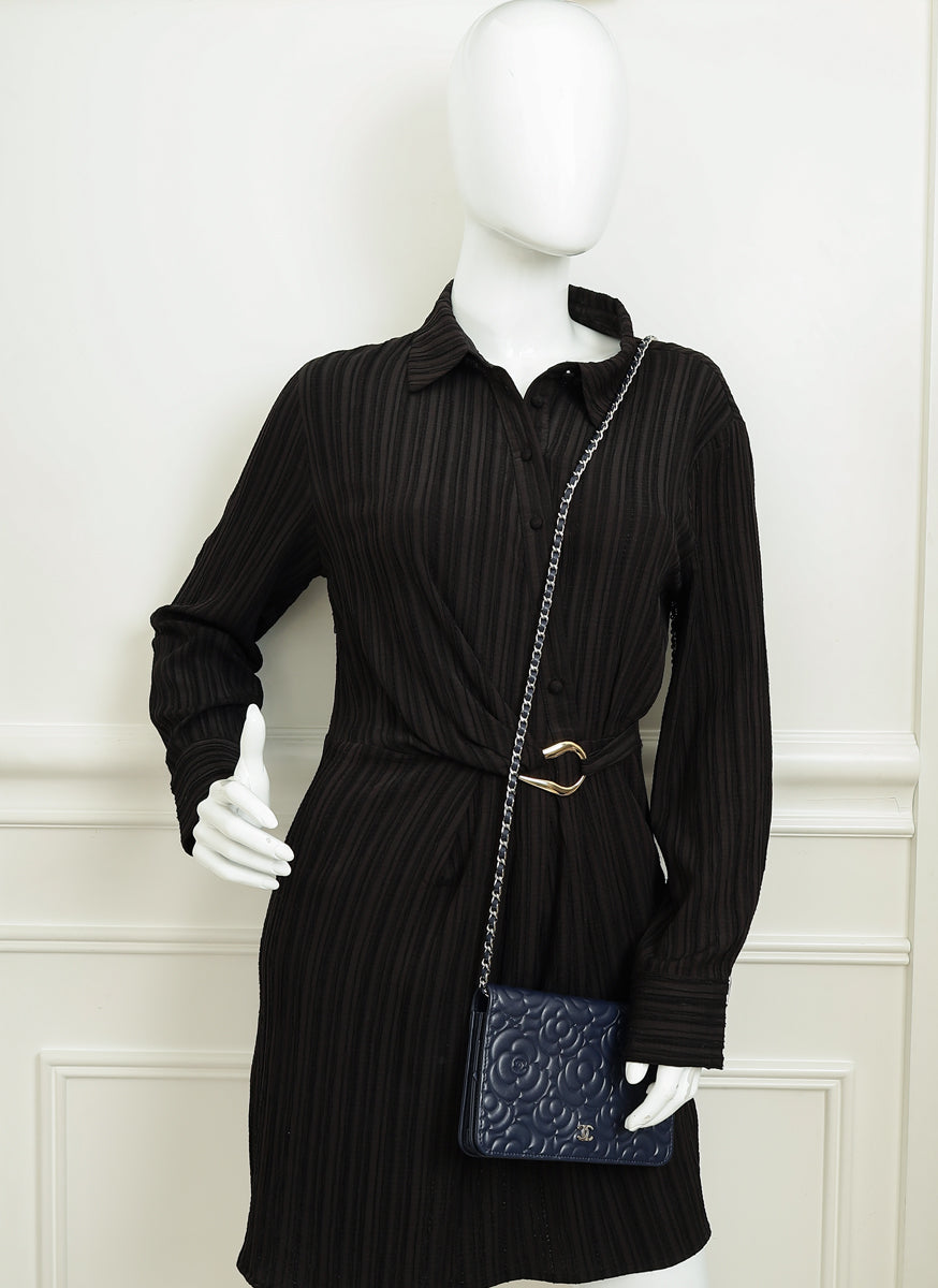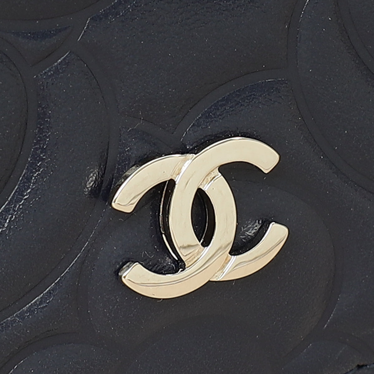 Chanel Navy Blue CC Camellia Flower Embossed Wallet On Chain