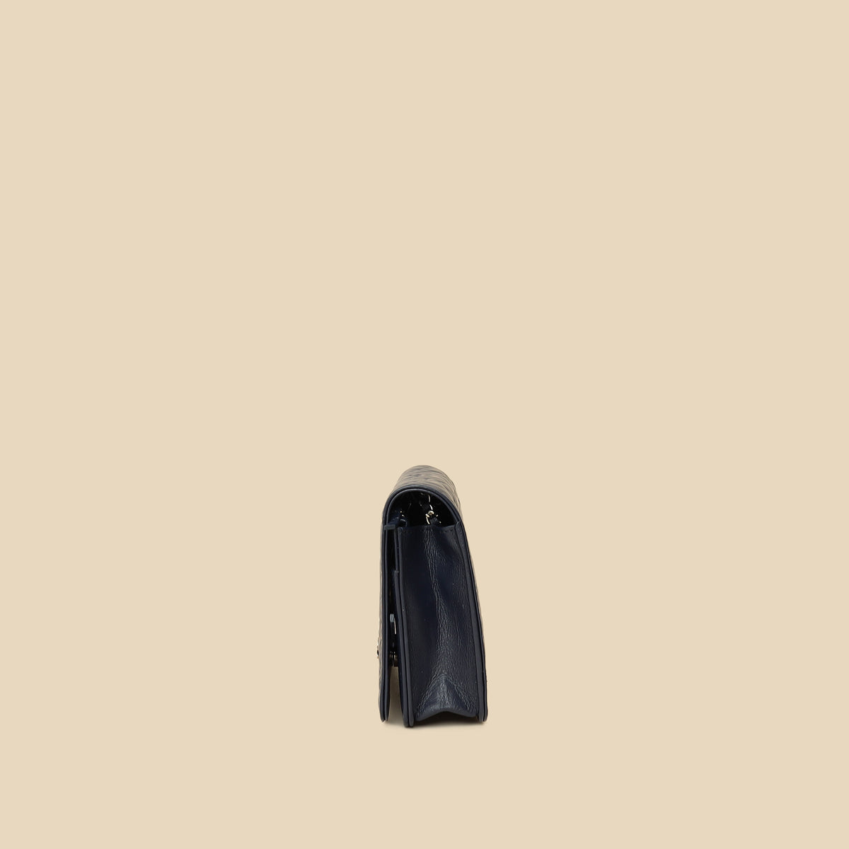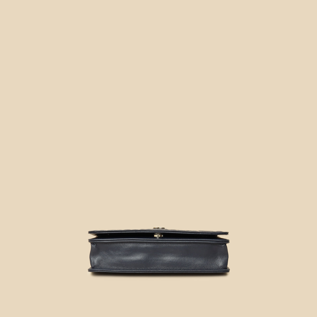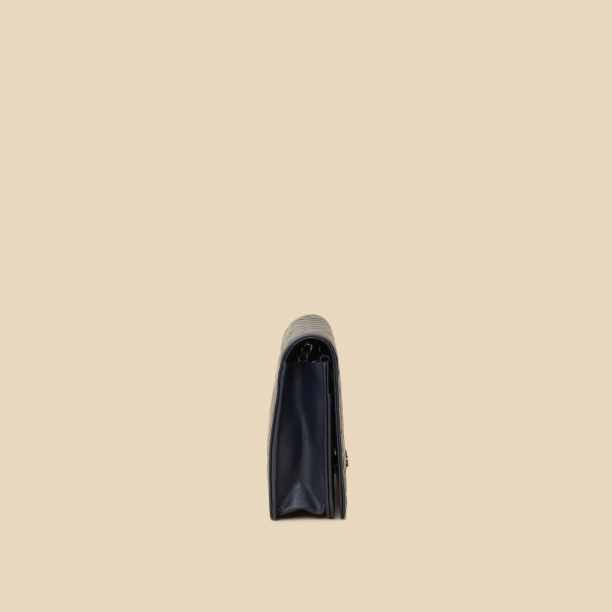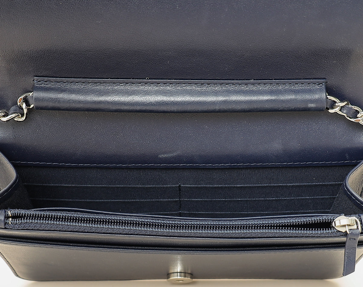 Chanel Navy Blue CC Camellia Flower Embossed Wallet On Chain