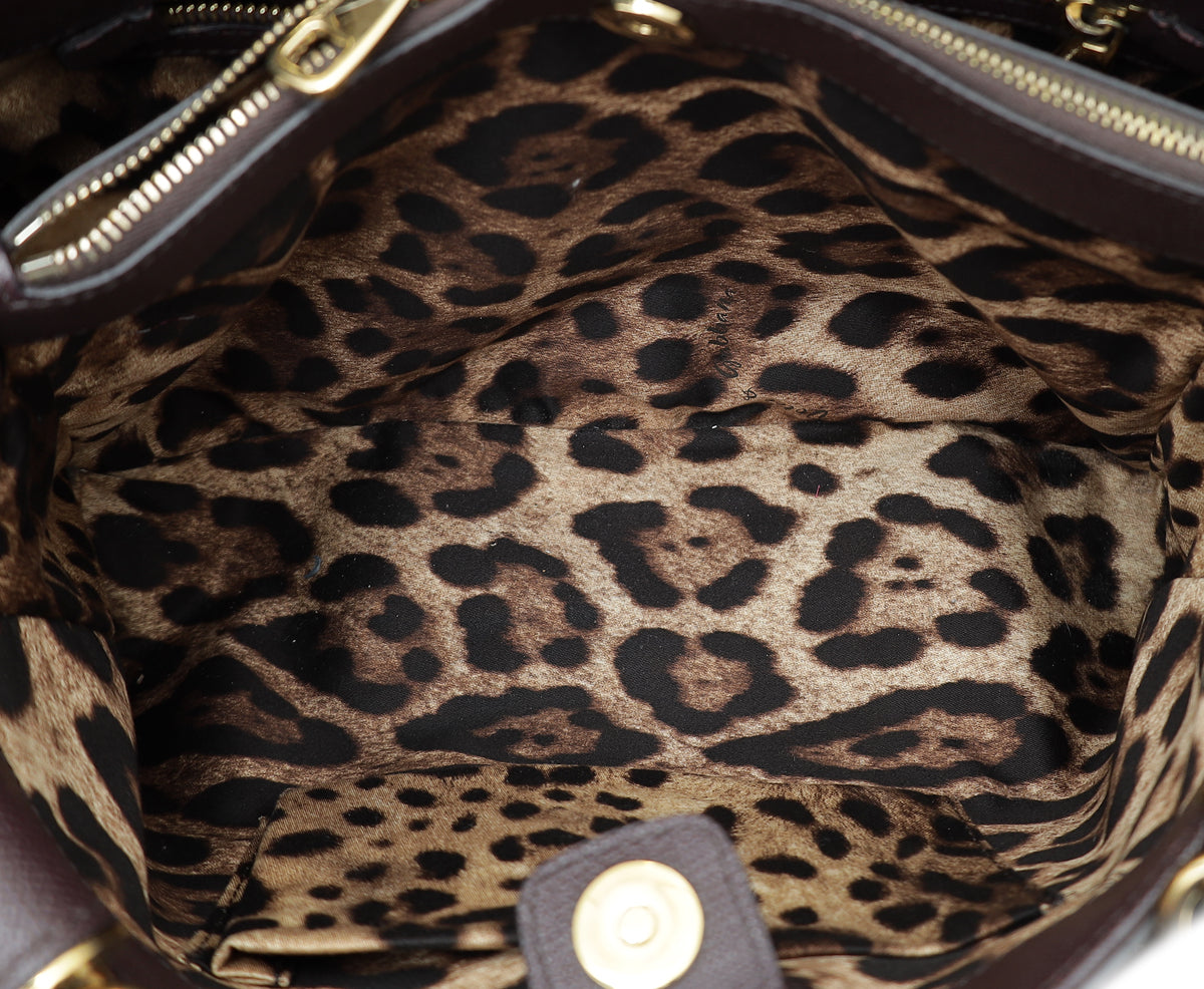Material: Dark Violet Dauphine Leather and Interior Leopard Print