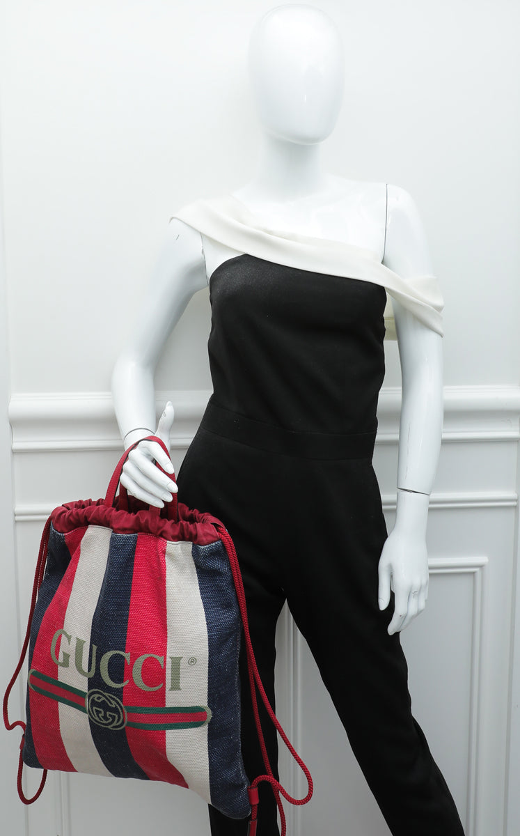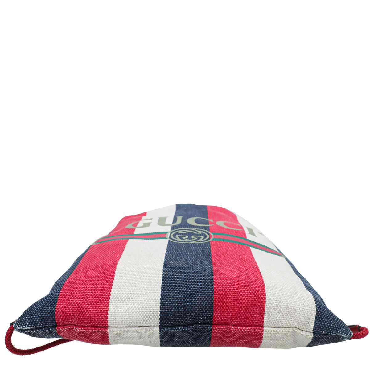 Gucci Tricolor Logo Sylvie Stripe Drawstring Backpack Bag