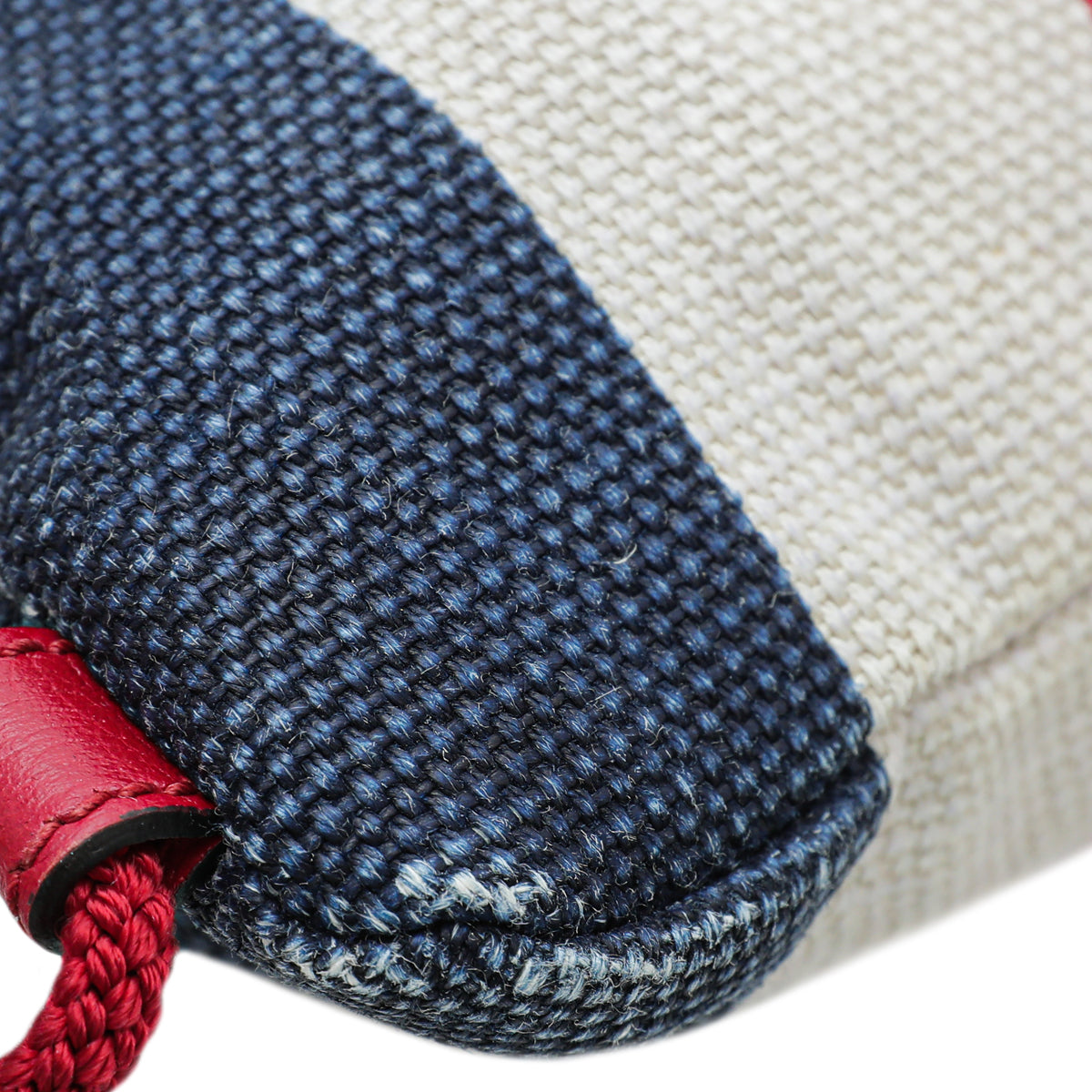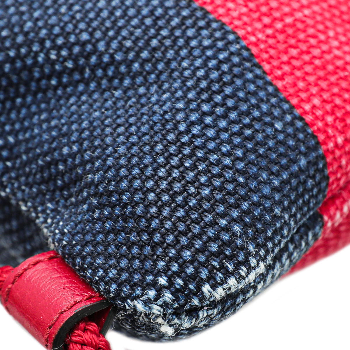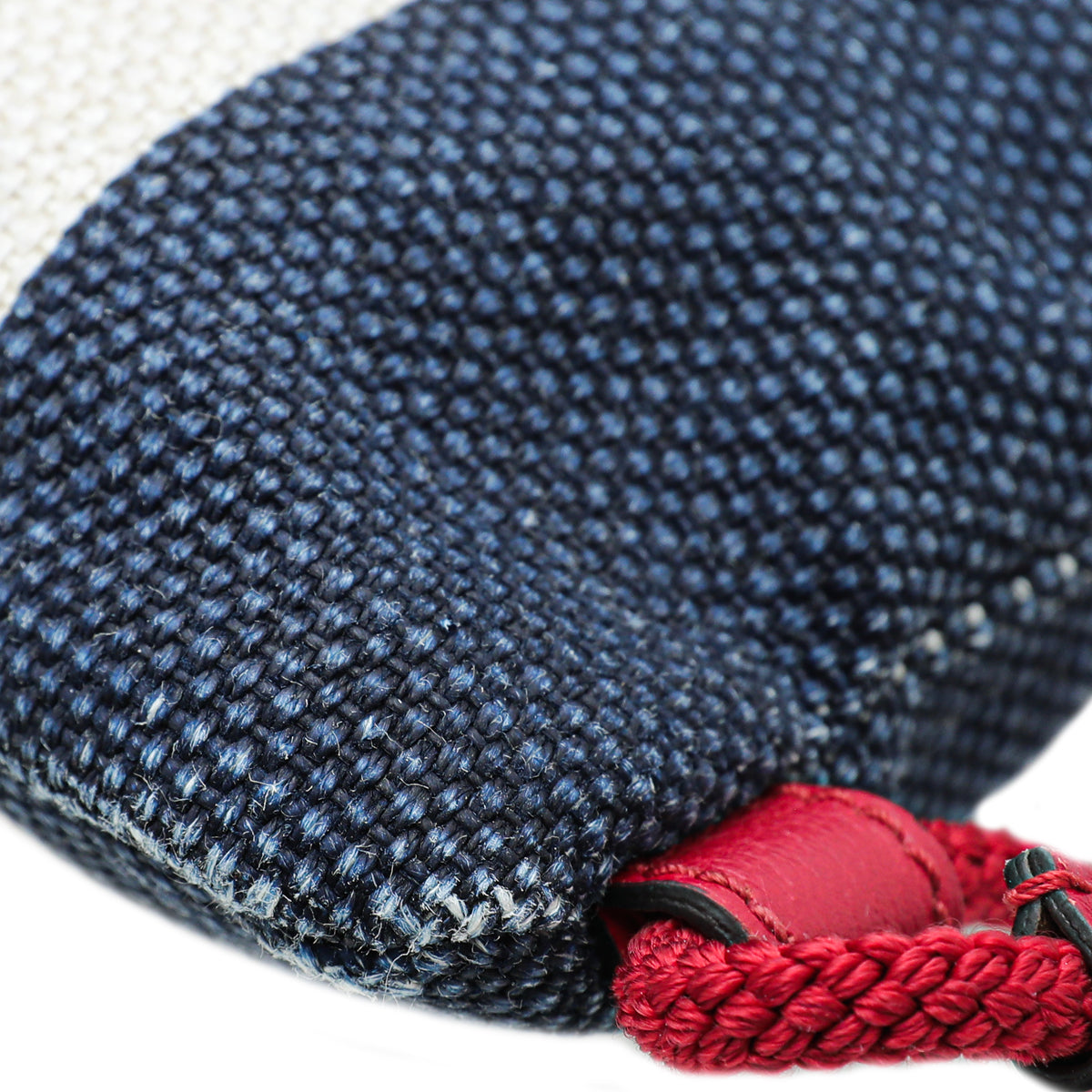 Material: Blue/Red/White Canvas with Red Leather Trim