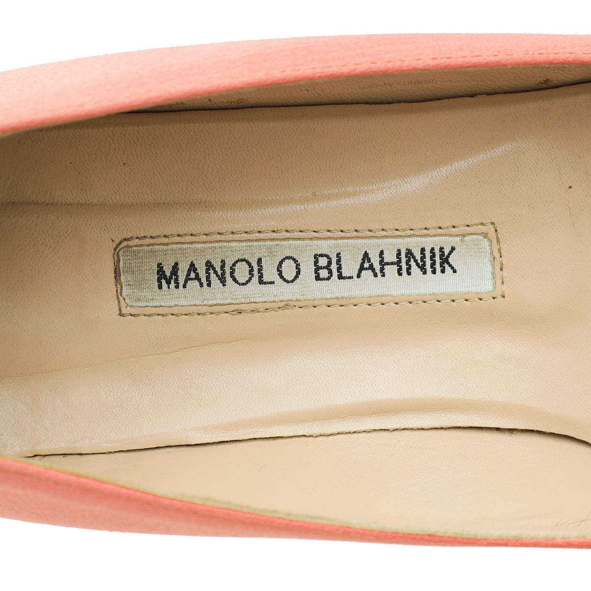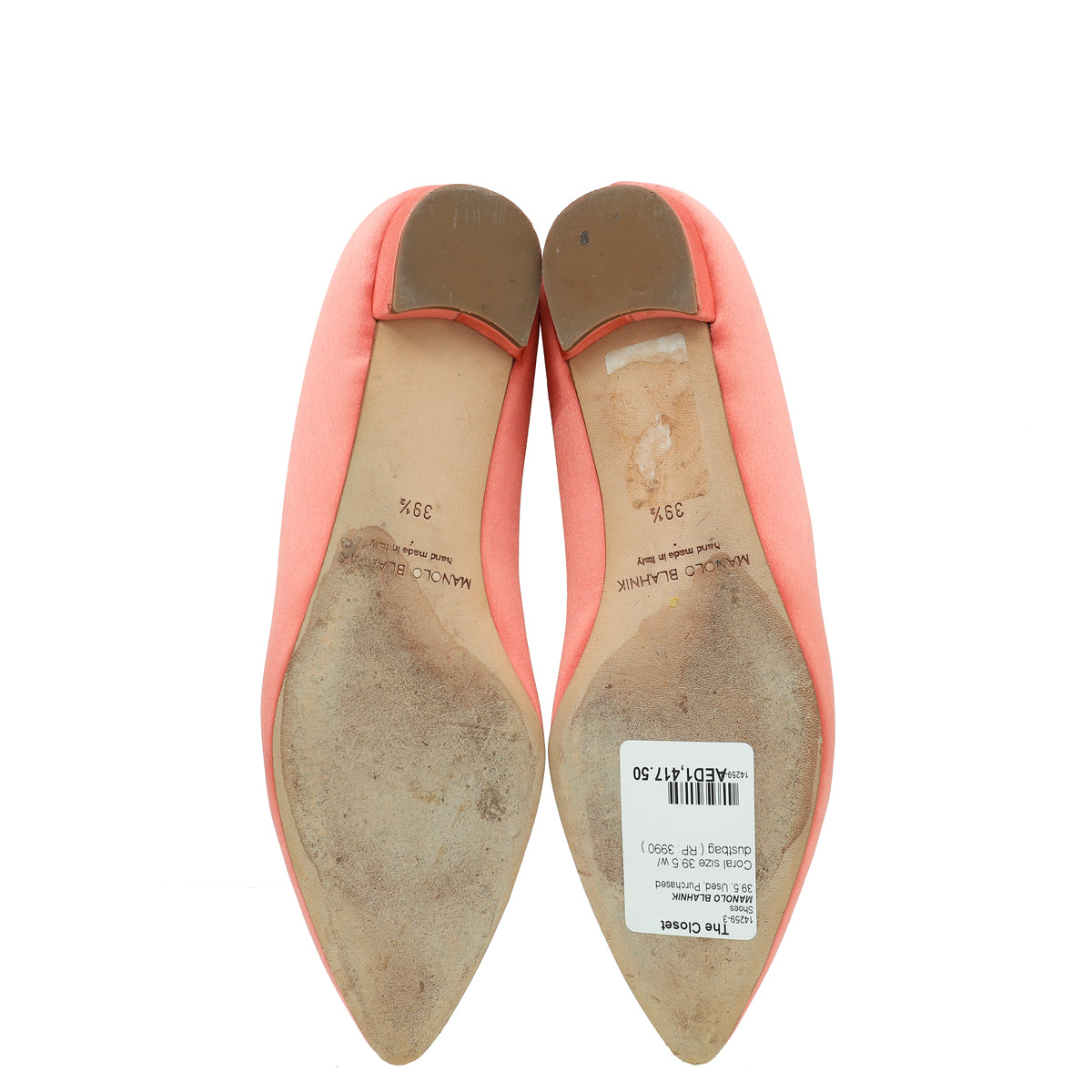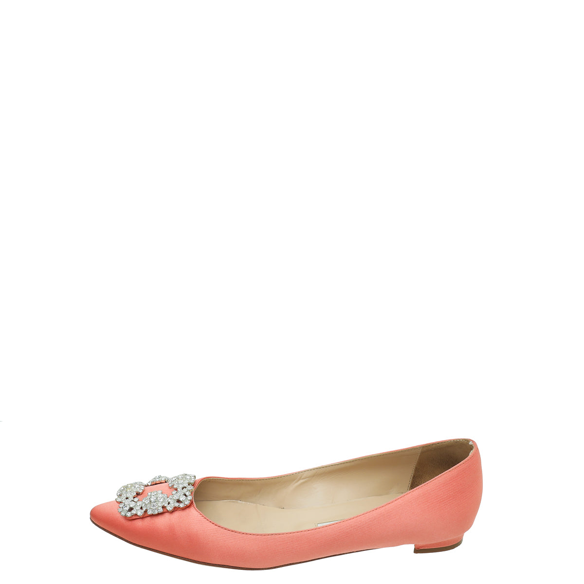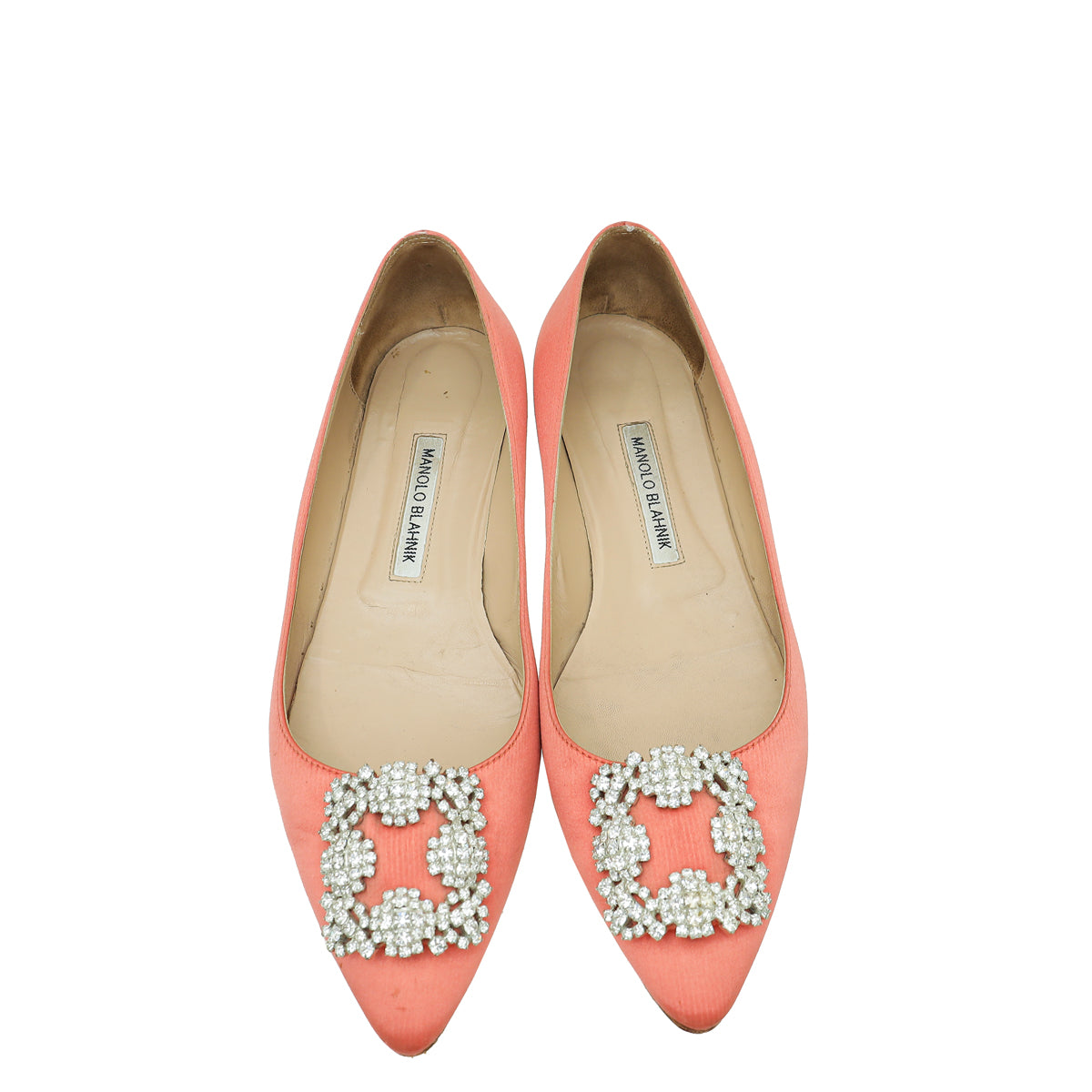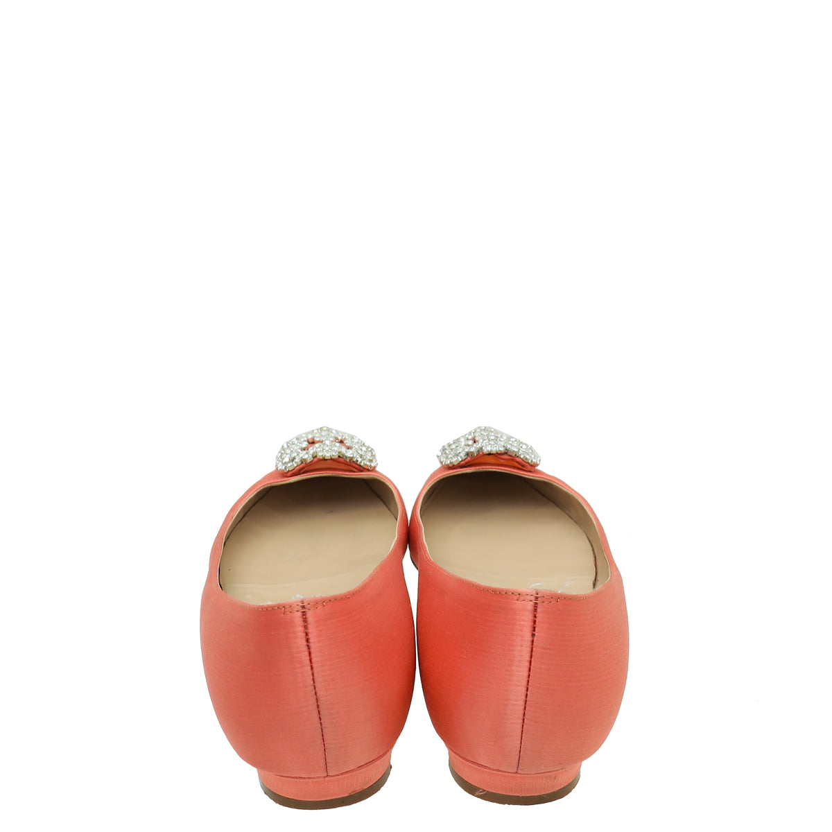 Manolo Blahnik Coral Satin Hangisi Crystal Ballerina Flat 39.5