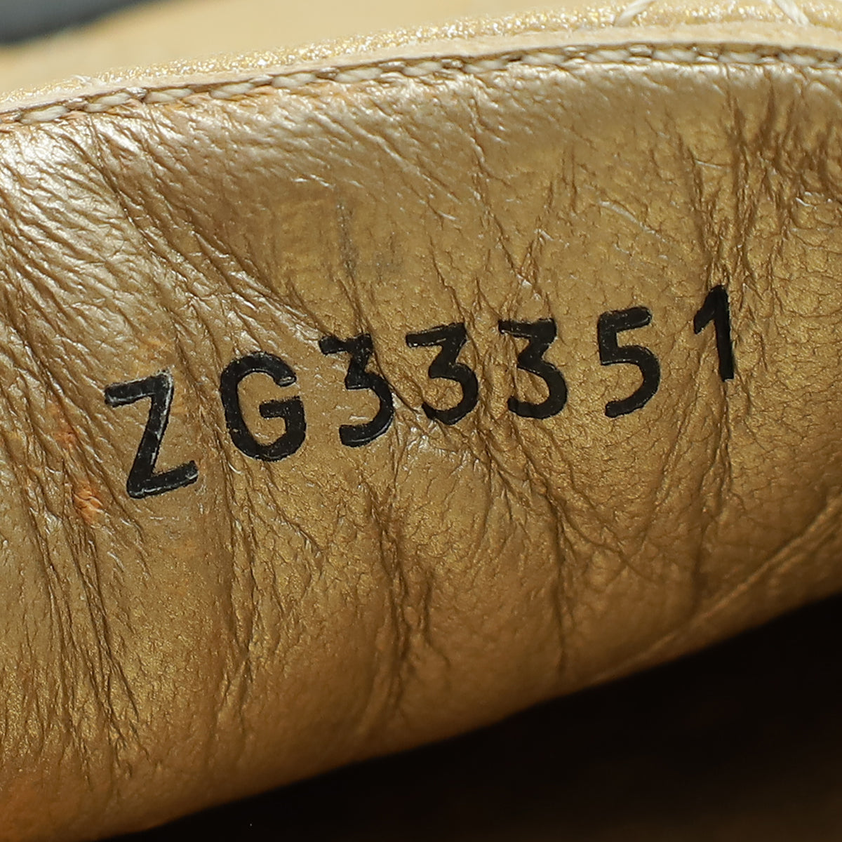 - Material: Metallic Gold Quilted Leather with Black Leather Trim