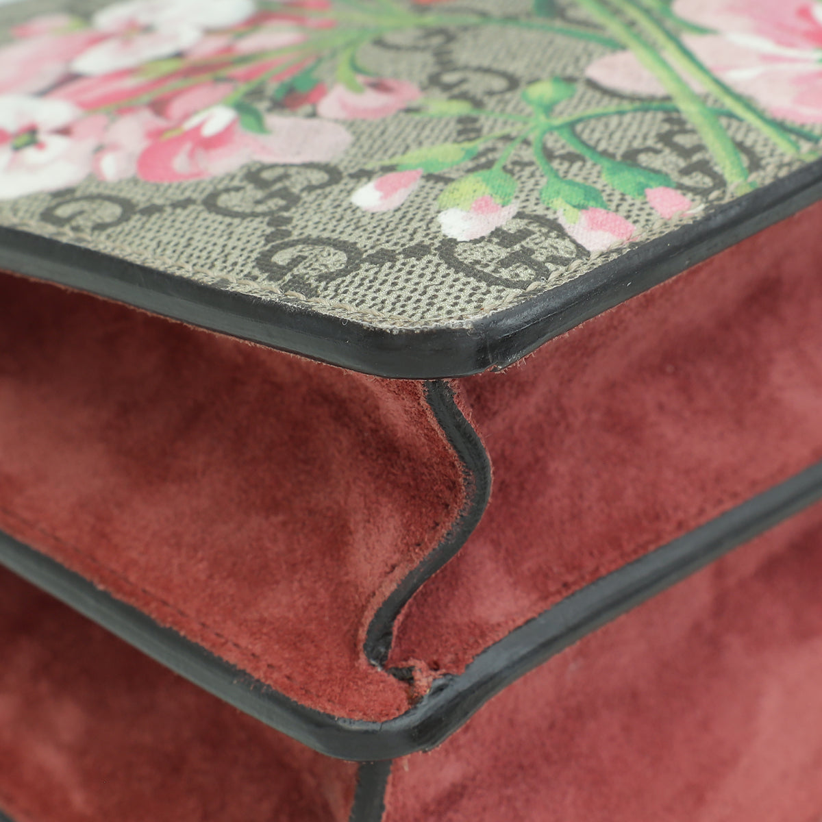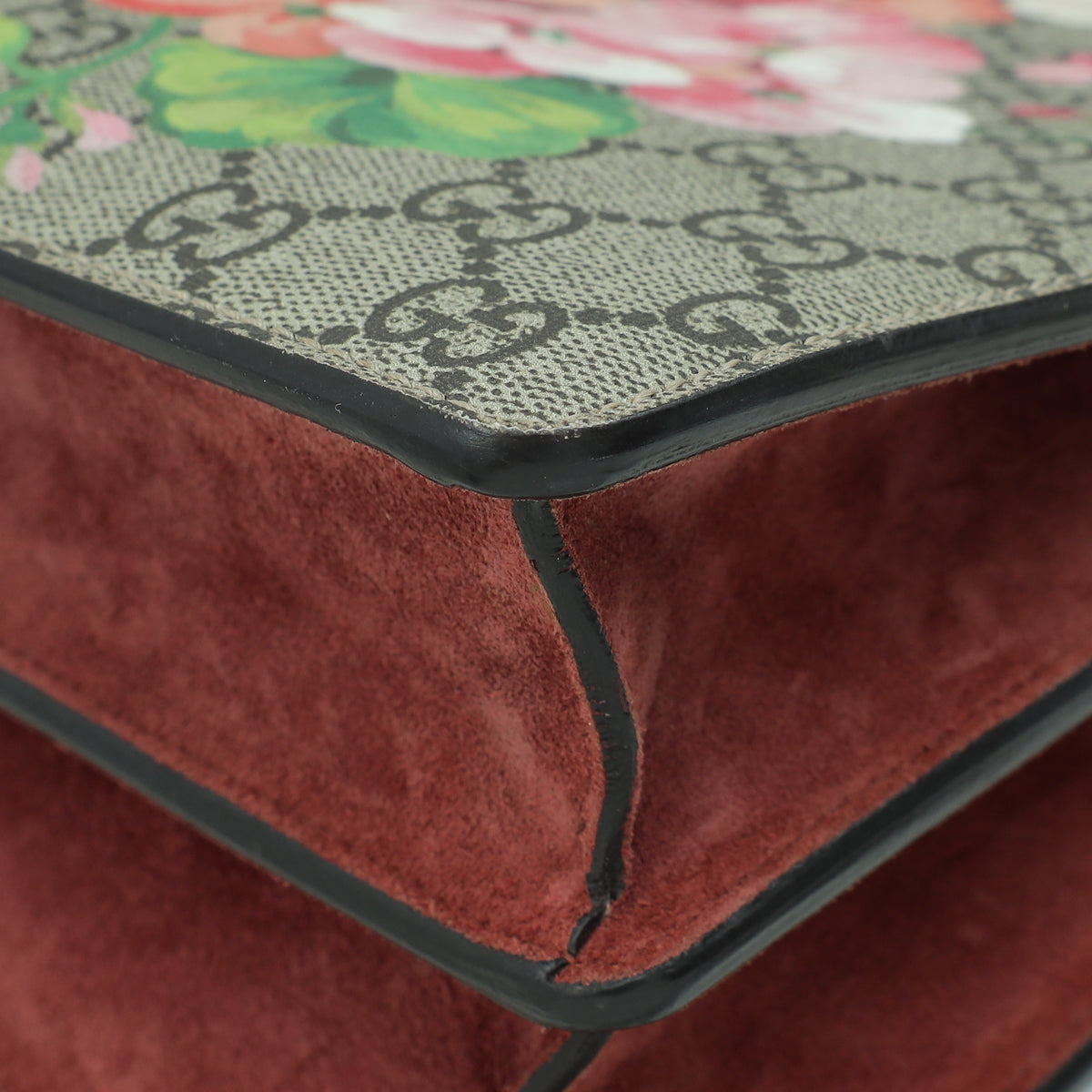 - Material: Ebony GG Coated Canvas with Multicolor Blooms Print and Rose Suede Trim