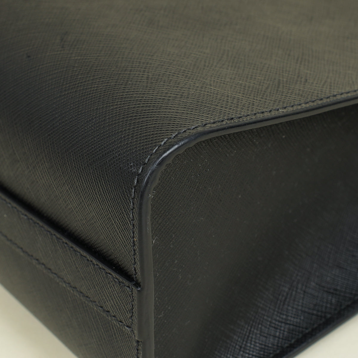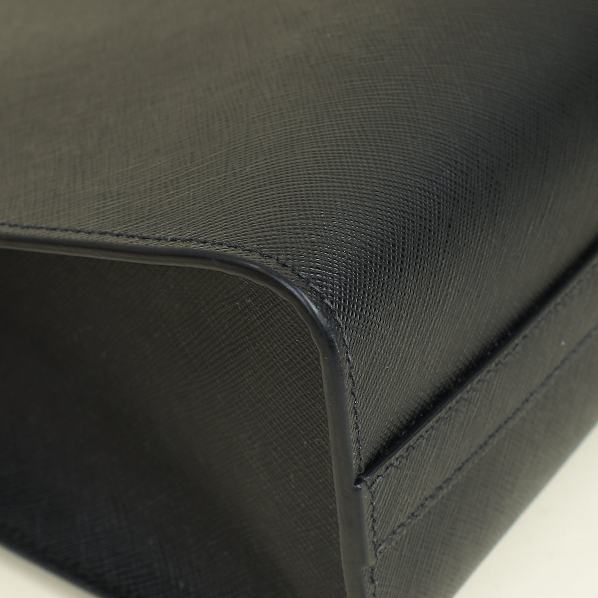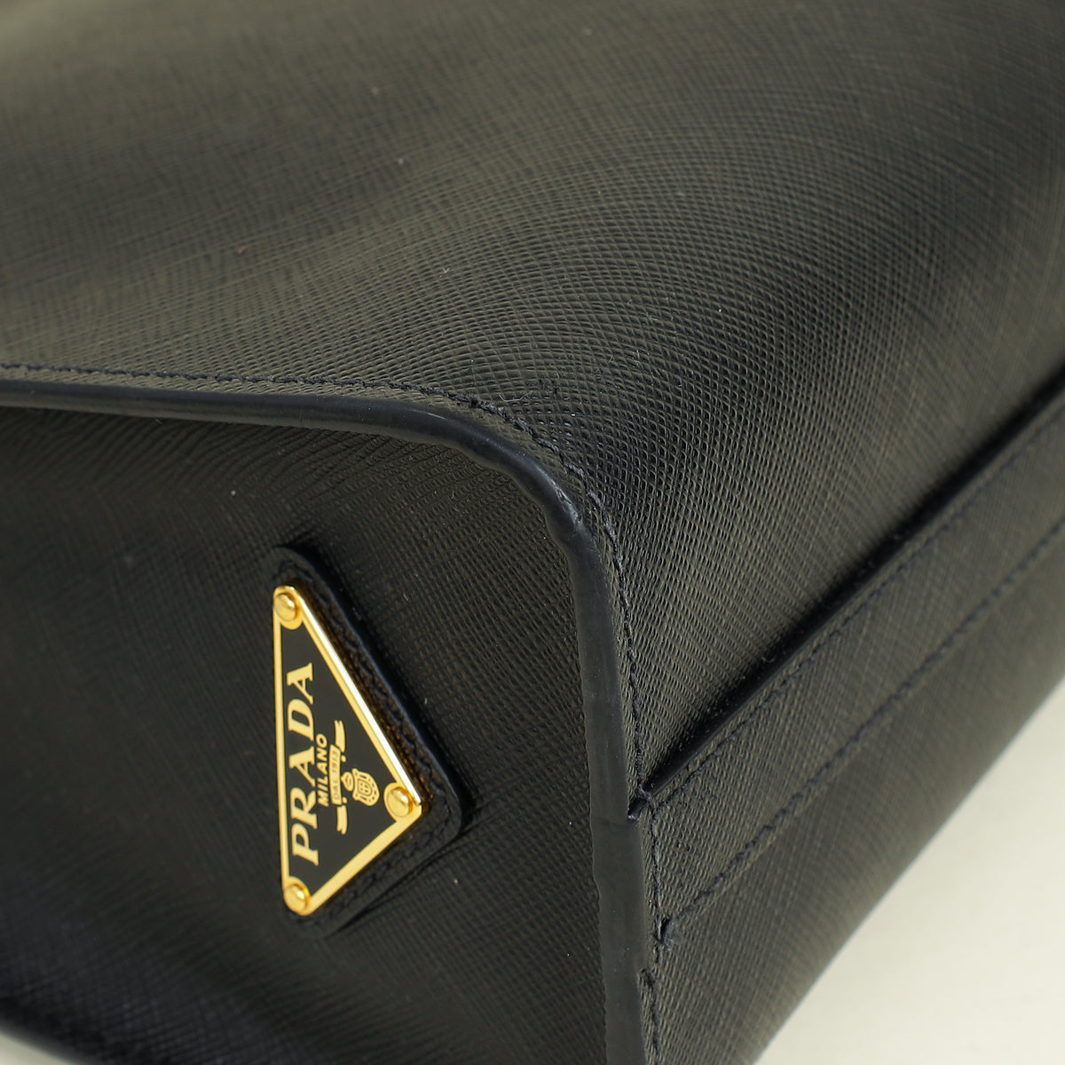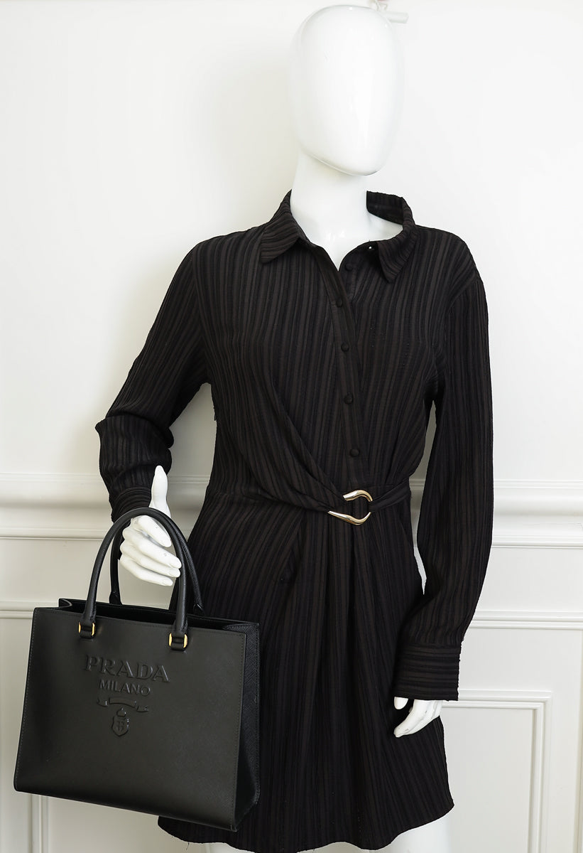 Prada Black Lux Logo Embossed Medium Shoulder Tote Handbag