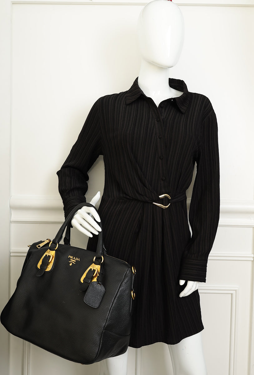 Prada Black Vitello Diano Soft Tote Bag