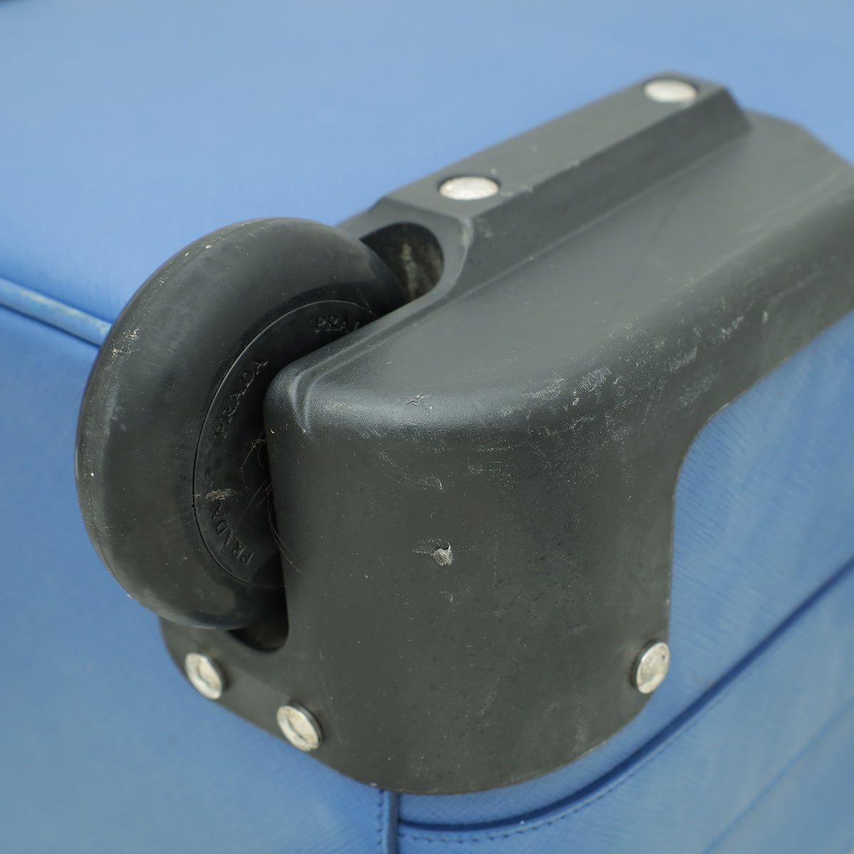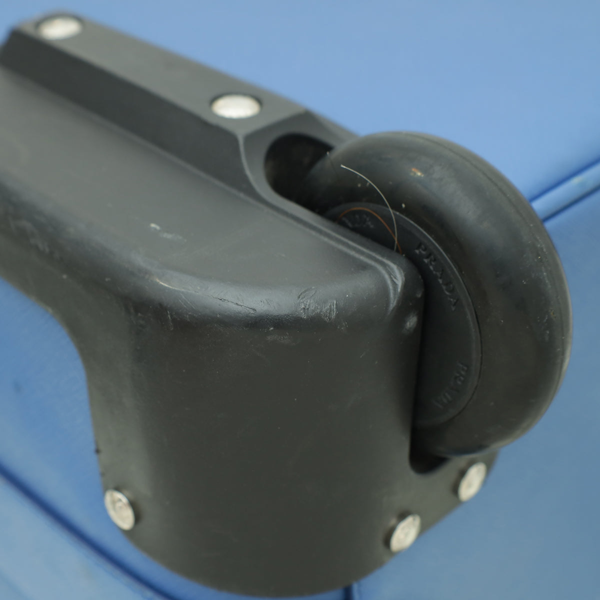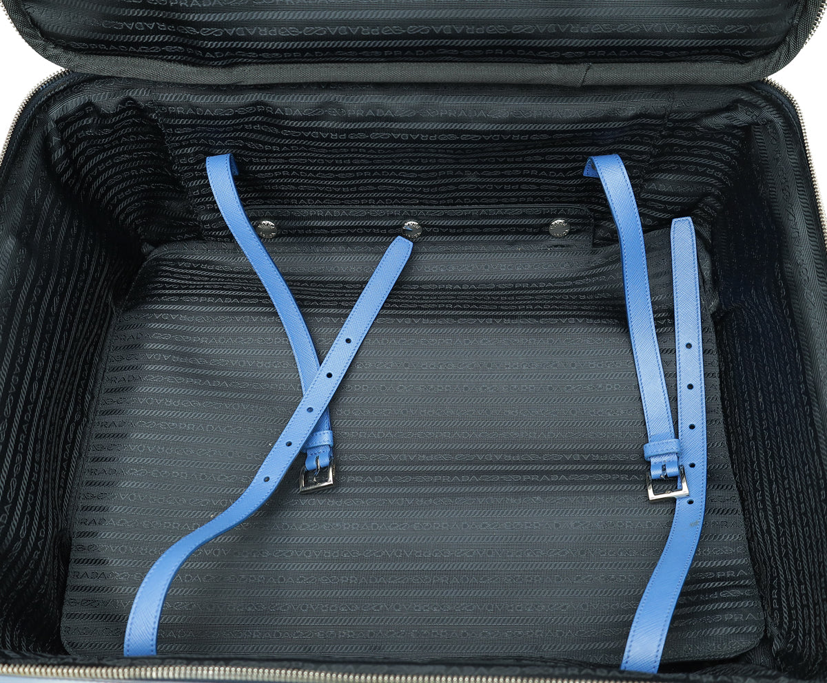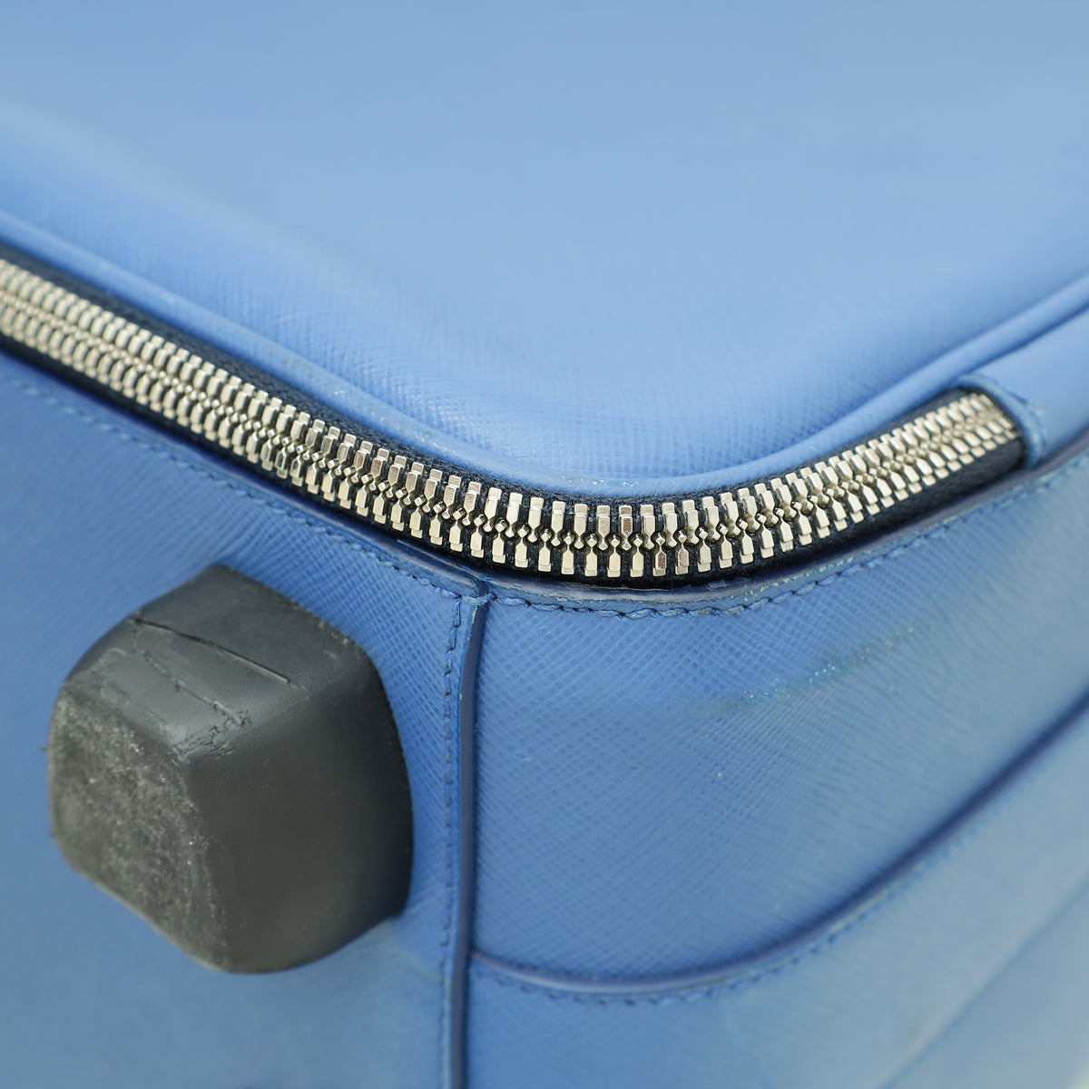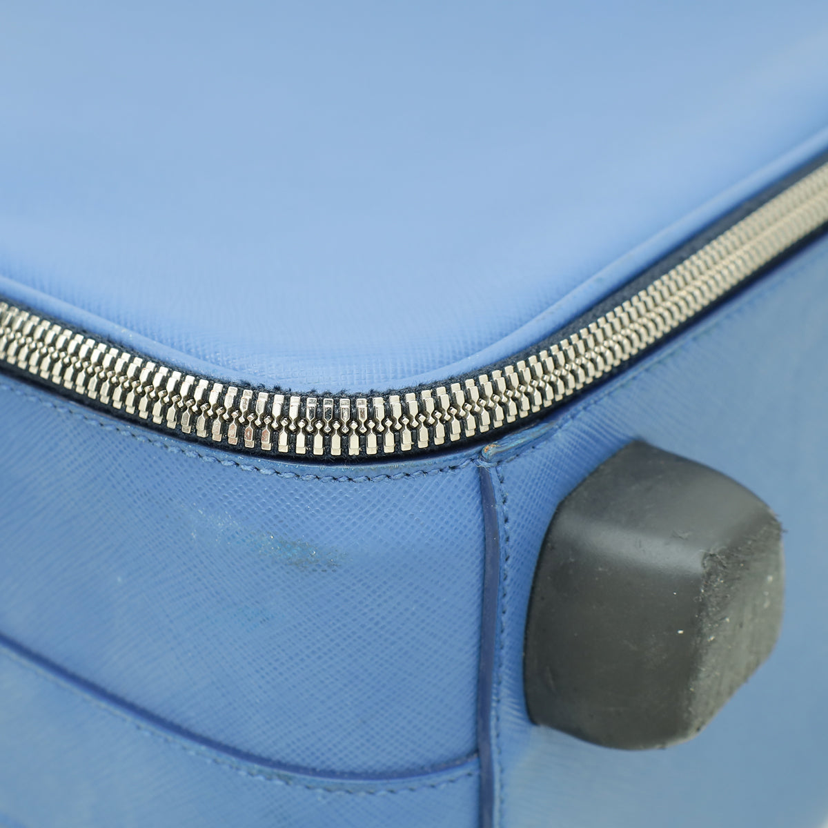 Exterior: good condition, with scratches on the hardware, corners, stain on leather and showing normal signs of use.