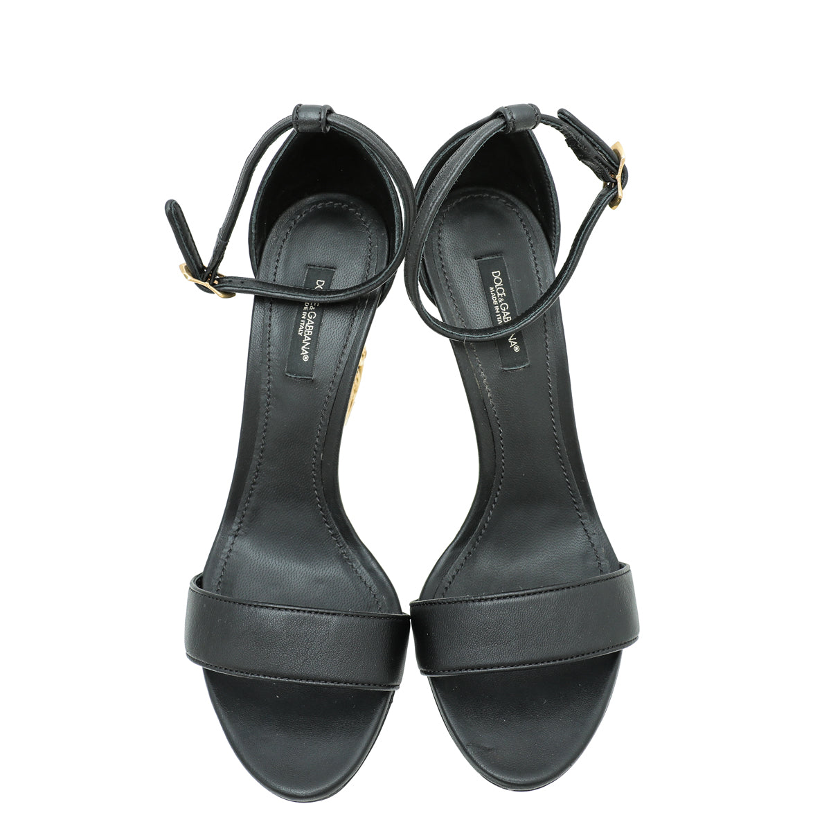 Dolce & Gabbana Black DG Baroque Heel Nappa Sandal 37.5