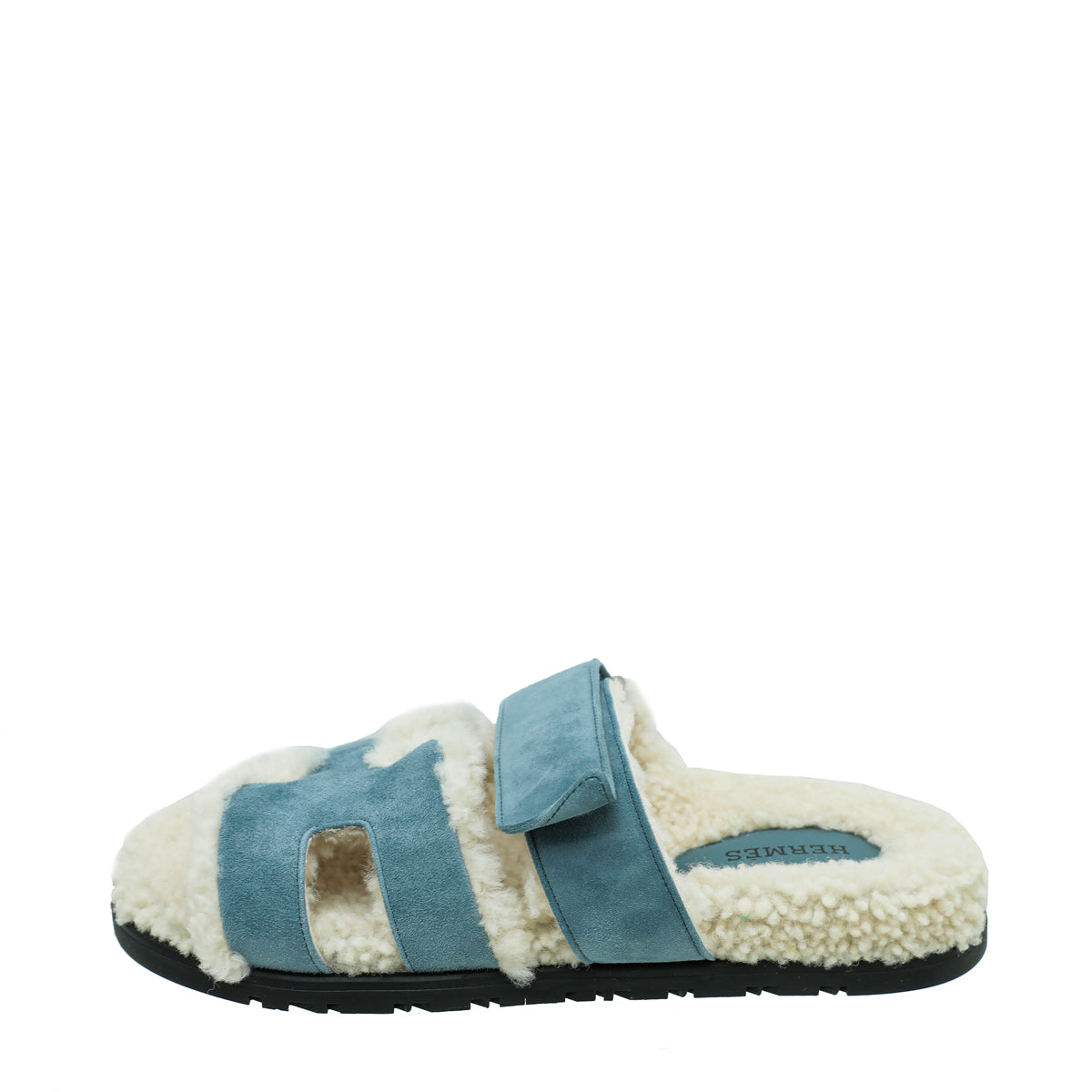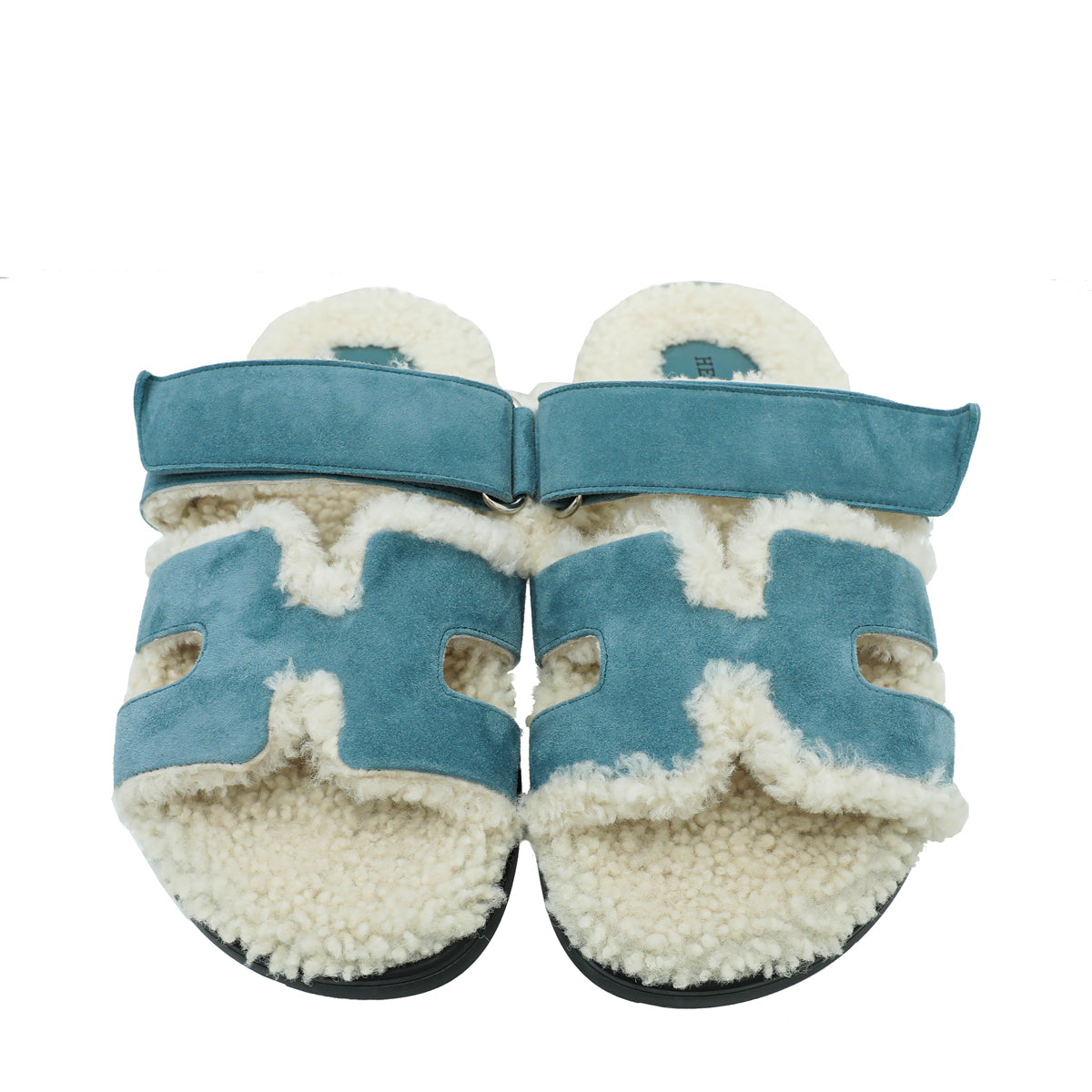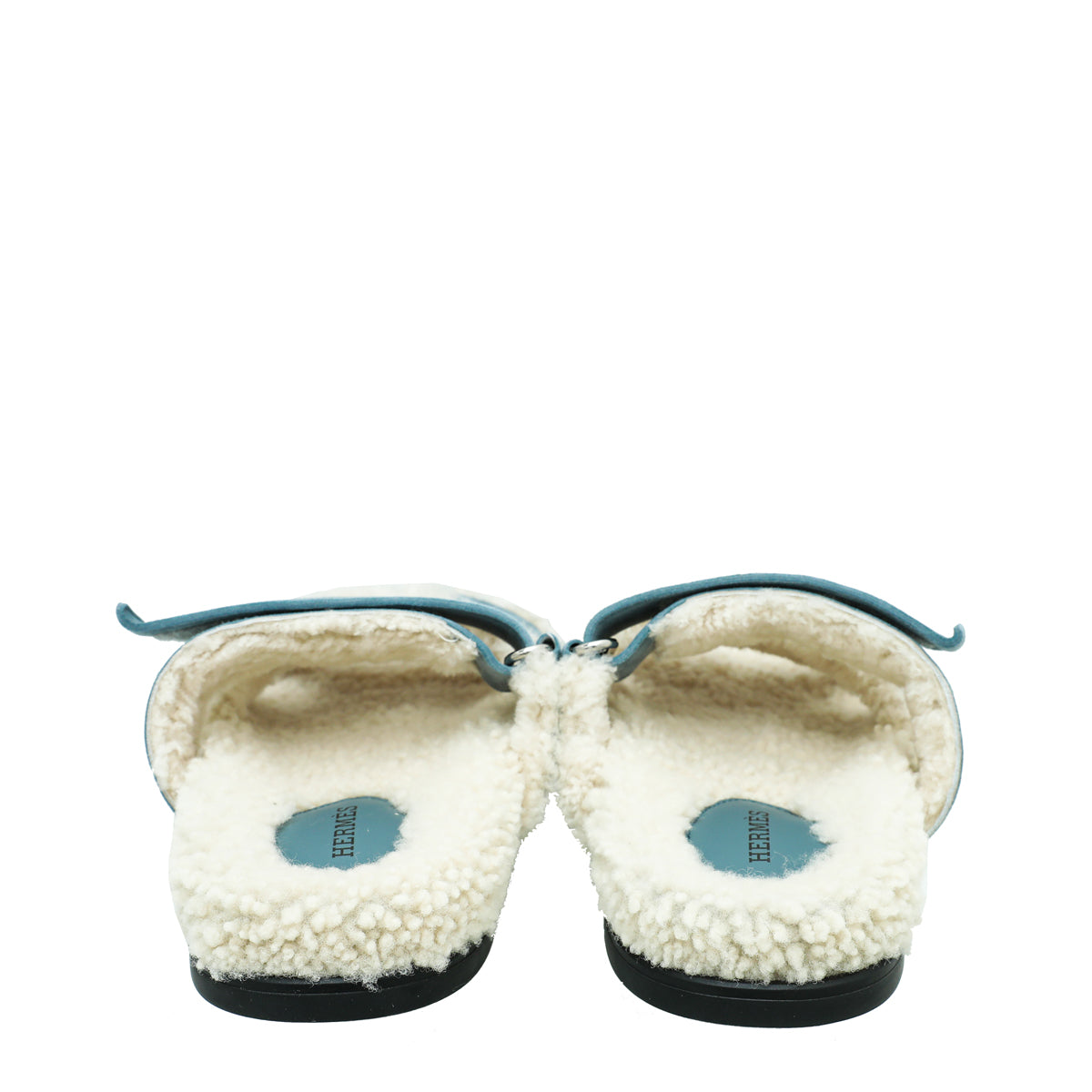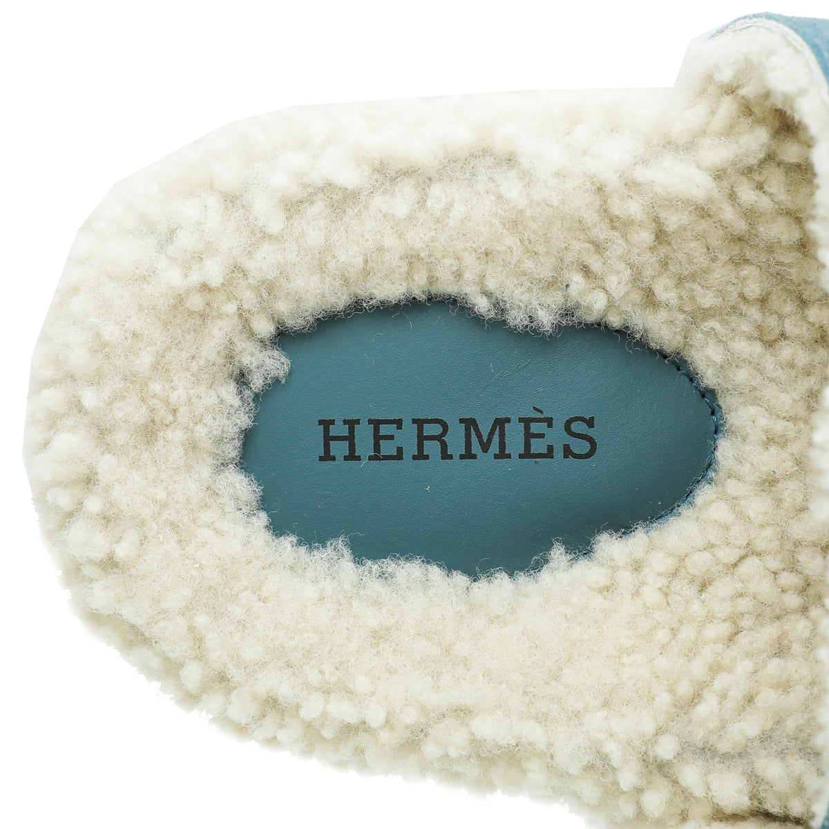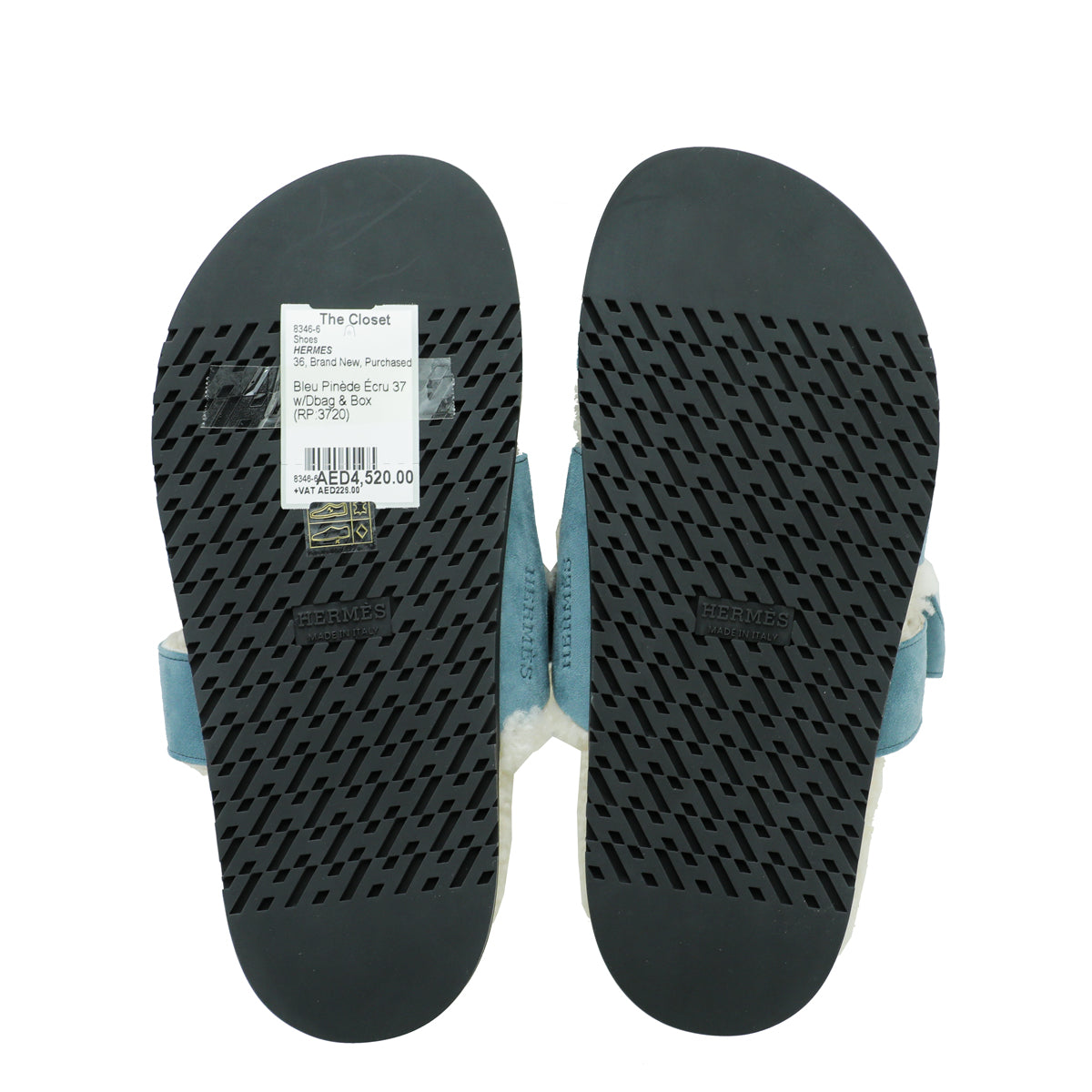 Hermes Bleu Pinède Écru Suede Wool Chypre Sandals 37