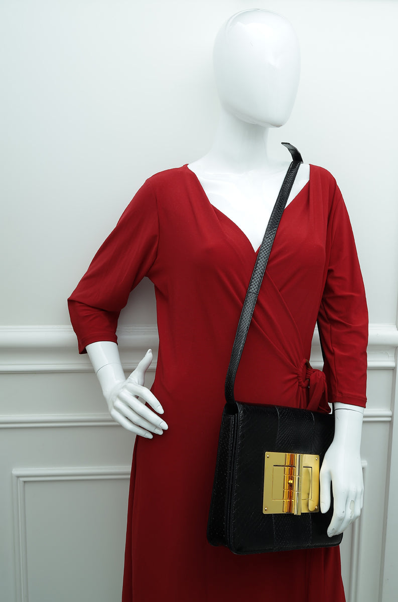 Tom Ford Black Python Natalia Large Satchel Bag